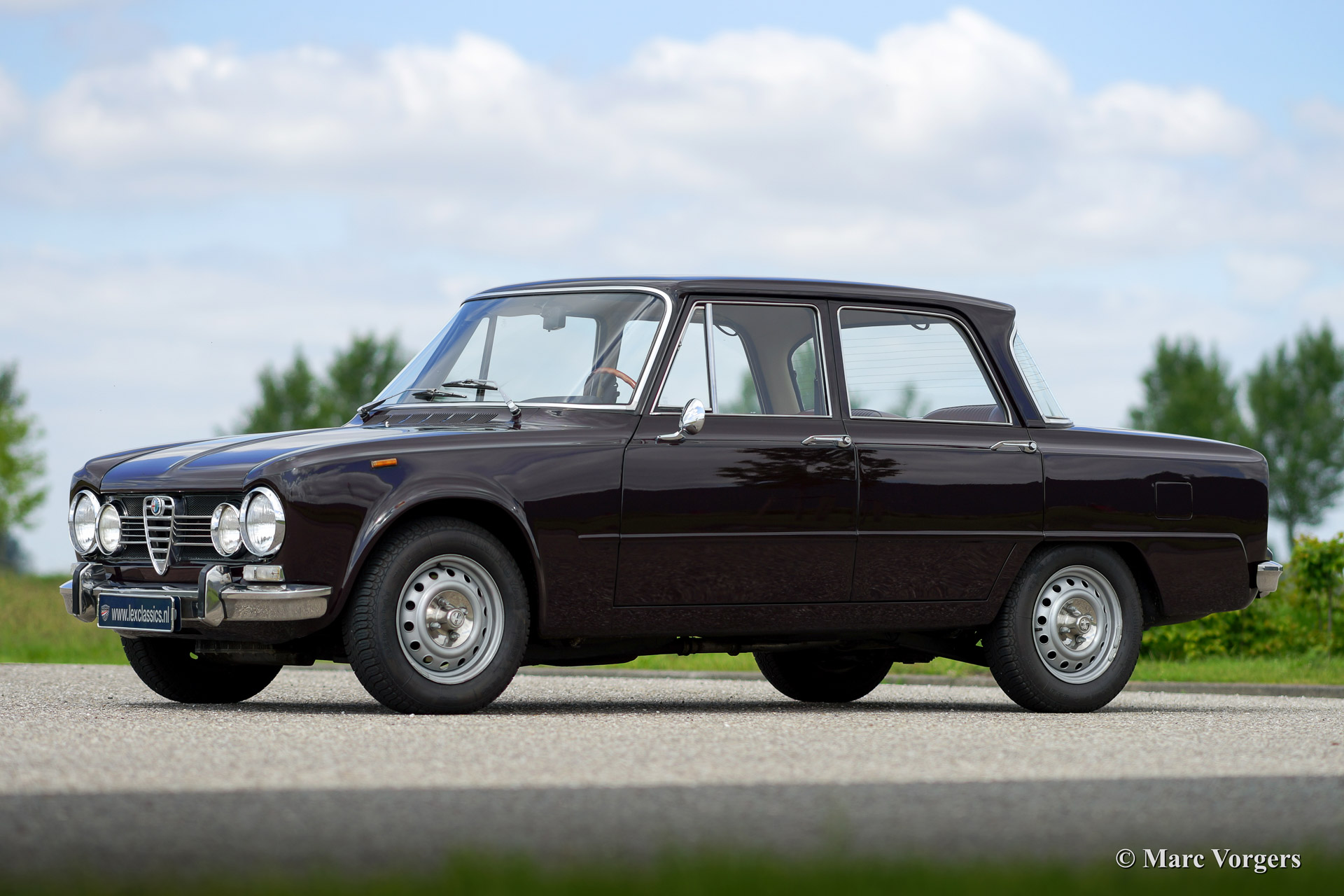 This magnificent Alfa Romeo Giulia was imported from Italy in the year 2011. The car is super original and was only given perfect new paint in the past. This fine Alfa Romeo is in superb (excellent++) condition, concours. From new the automobile has driven 77840 kilometres and it has been serviced perfectly. Everything looks and feels like new! The car comes with service history and a original toolset. This Giulia was given a thorough Waxoyl anti corrosion treatment. The car is fitted with a classic Blaupunkt radio with Ipod/Iphone connection and 123 electronic ignition (original unit is still present). A very fine example!