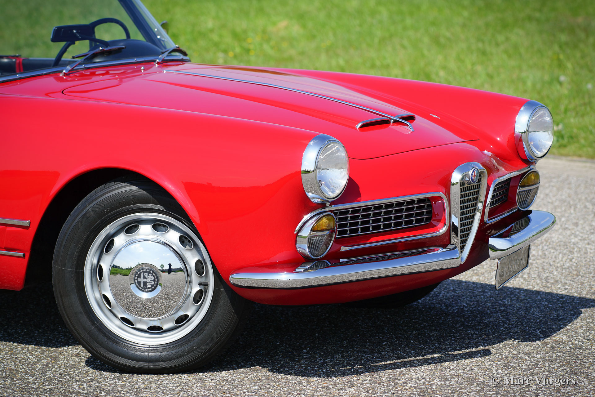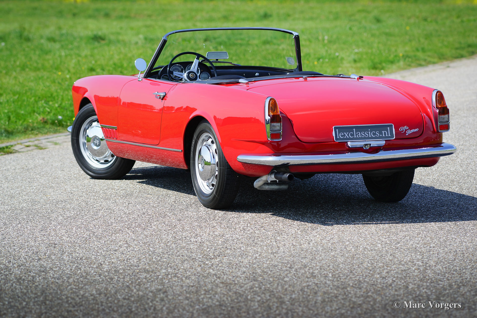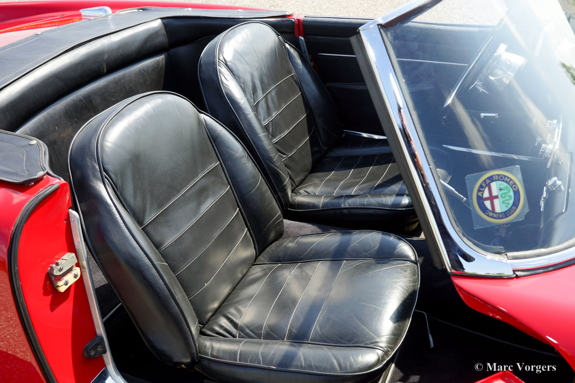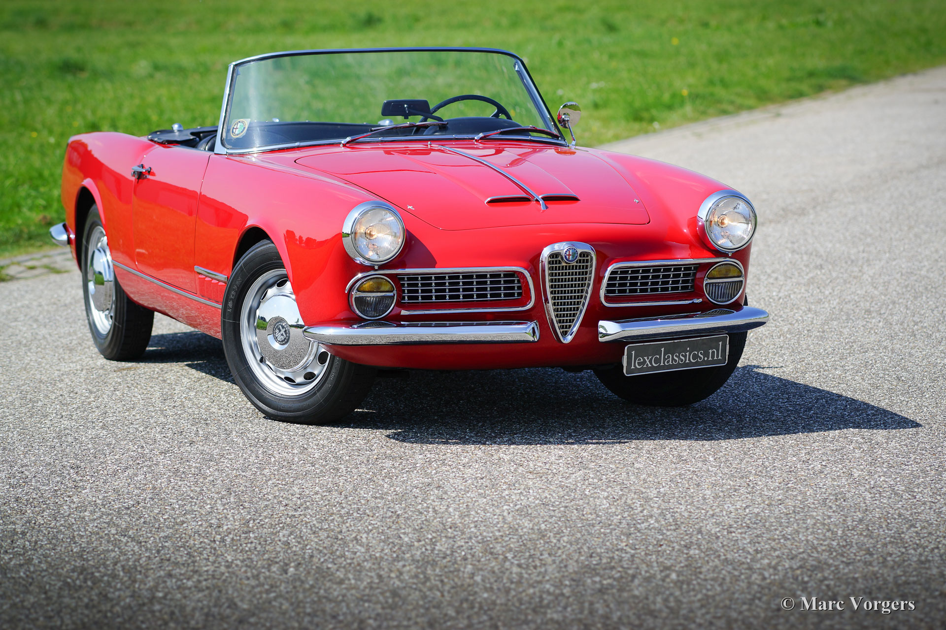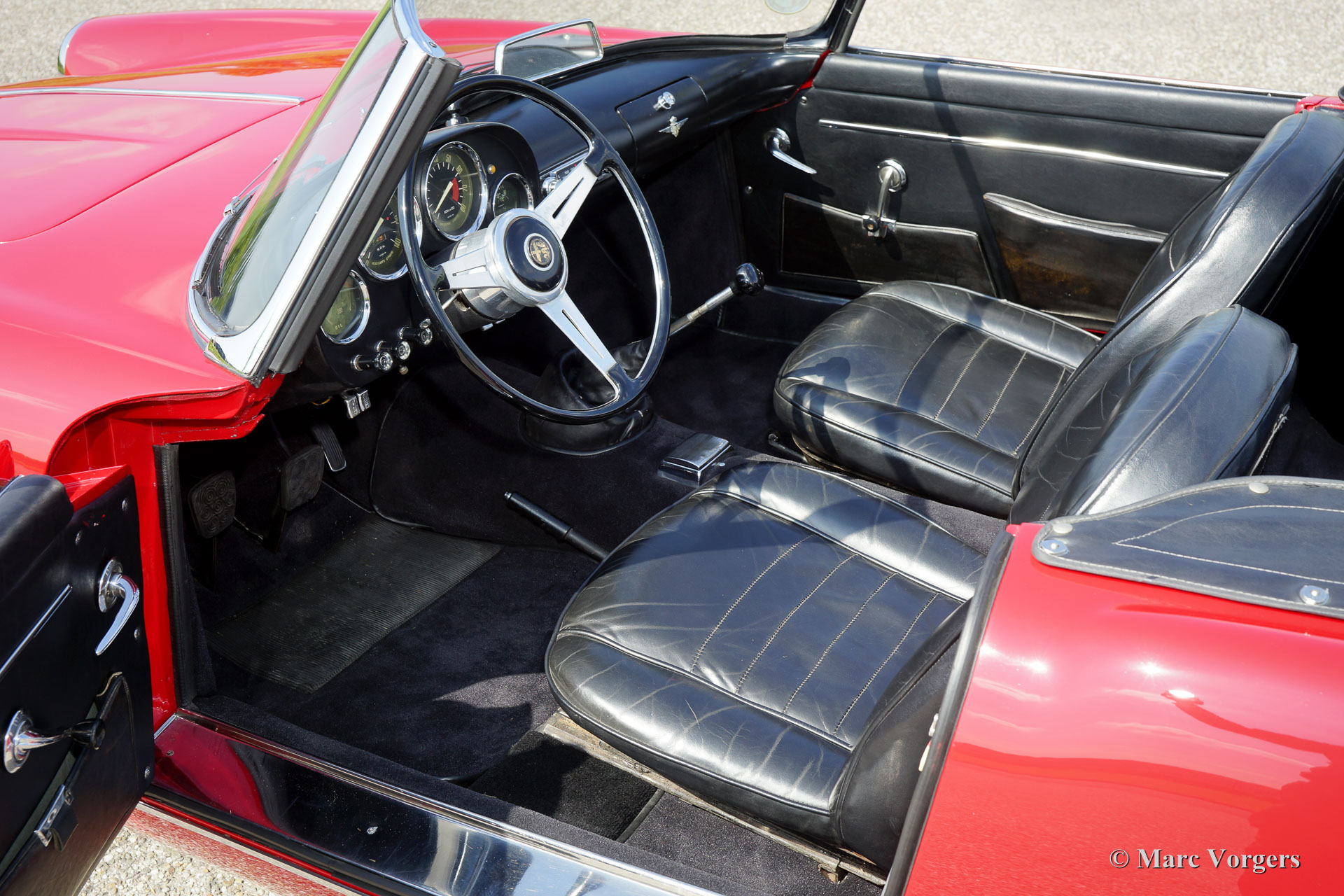 Alfa Romeo 2000 Touring Spider, Jahr 1961. Farbe rot (Alfa Rosso) mit einem schwarz Leder Interieur und schwarzem Teppich. Schwarzes Soft-Top und Verdeck-Abdeckung. Der Alfa Romeo Spider bietet eine herrliche Open-Top-Fahrerlebnis in Kombination mit einem wunderschonen Design von Carrosseria Touring aus Mailand. Der 2-Liter Vierzylinder-Motor mit zwei obenliegenden Nockenwellen klingt perfekt und das Fünfgang-Getriebe lasst sich wunderschön verschieben. Genieße das Leben ‘Gioia di Vivere‘ im sportlichen und schicken italienischen Stil!