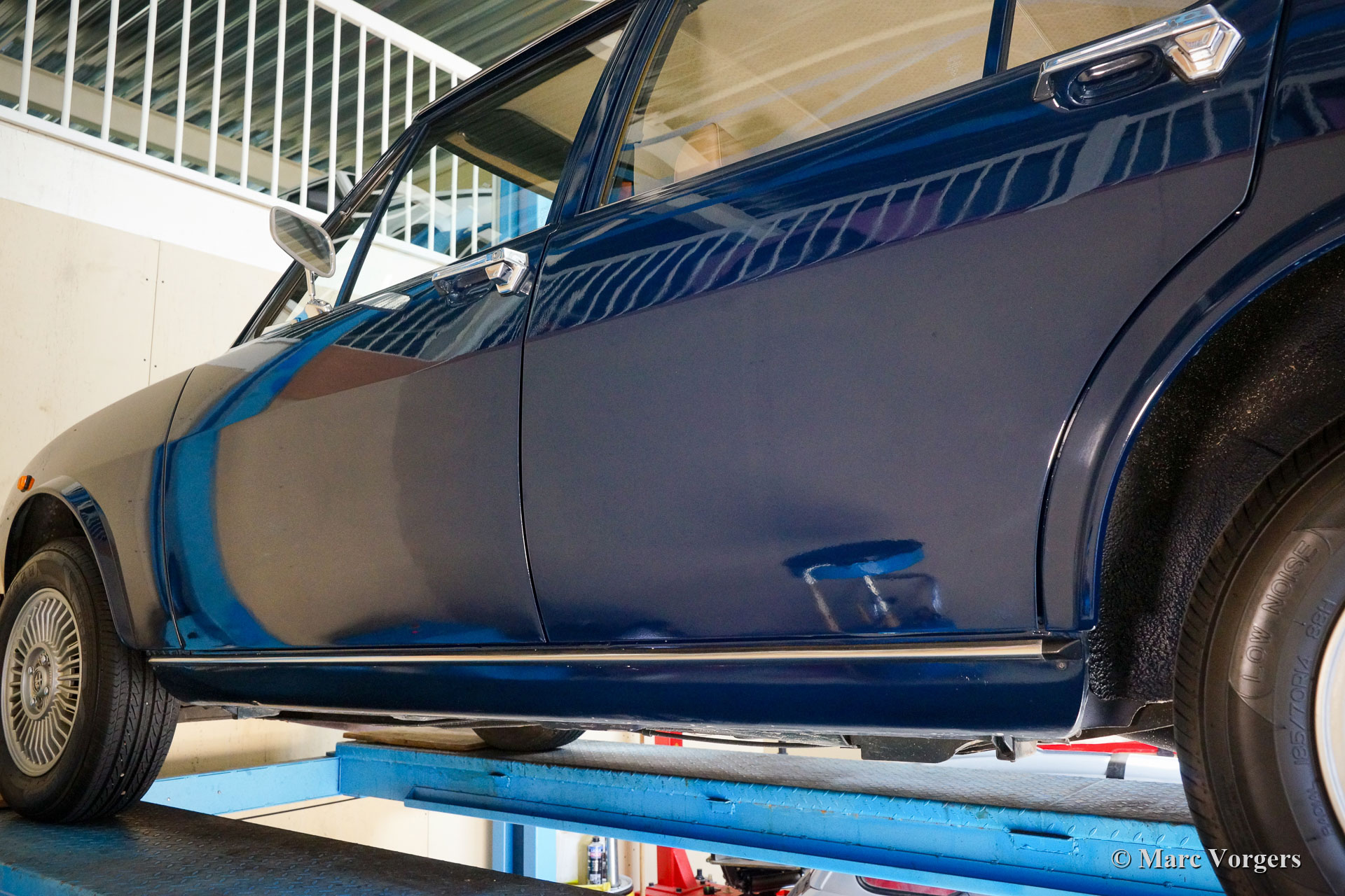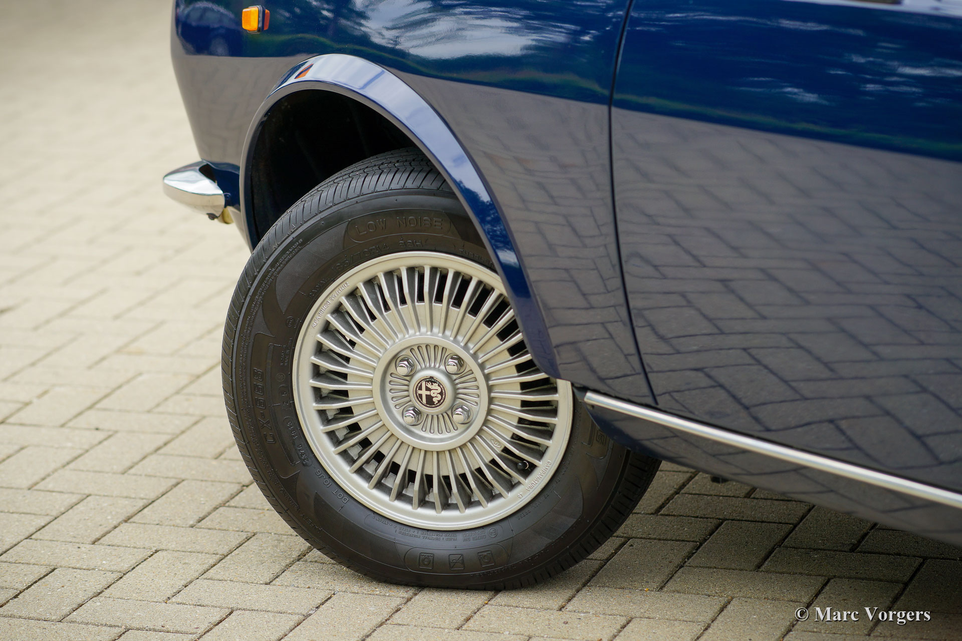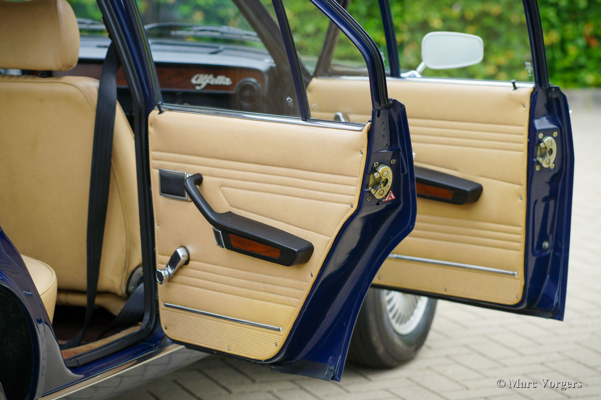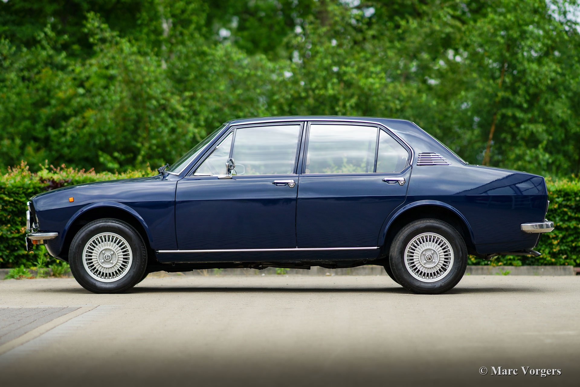 Alfa Romeo Alfetta 1600, Jahr 1976. Farbe dunkelblau (Bleu Olandese) kombiniert mit einem beigen Kunstlederinterieur, braunem Teppich und grauen Schutzmatten mit beigem Rand. Als der Alfa Romeo Alfetta 1972 vorgestellt wurde, war er die erste mittelgroße Alfa-Limousine seit zehn Jahren. Alfa Romeo führte beim Alfetta das neue hinten montierte „Transaxle“-Getriebe ein, das eine nahezu perfekte 50/50-Gewichtsverteilung ermöglichte. Zusammen mit der Einzelradaufhängung, dem sportlich-starken Aluminium-Twin-Cam-Motor, den Scheibenbremsen an allen vier Rädern und dem Fünfgang-Getriebe war die Alfetta eine echte Sportlimousine! Die hier präsentierte wunderschöne Alfetta der ersten Serie wurde in Italien aus der Autosammlung des 2. italienischen Besitzers gekauft. Das Auto wurde vor kurzem in Italien gewartet und die Vergaser gereinigt und überholt. Dieses super originale Exemplar befindet sich in einem sehr guten Zustand mit leichten Gebrauchs- und Altersspuren im Innenraum. Der Tachostand zeigt aktuell 94.989 km an. Dieser fantastische Alfa Romeo Alfetta 1600 wird geliefert mit italienischen Papieren und Dokumente (und einem Schild hinter der Heckscheibe) des Auto Moto Club Storico Italiano. Dies ist eine schwer zu findende Alfetta der ersten Serie in einem sehr schönen Originalzustand!