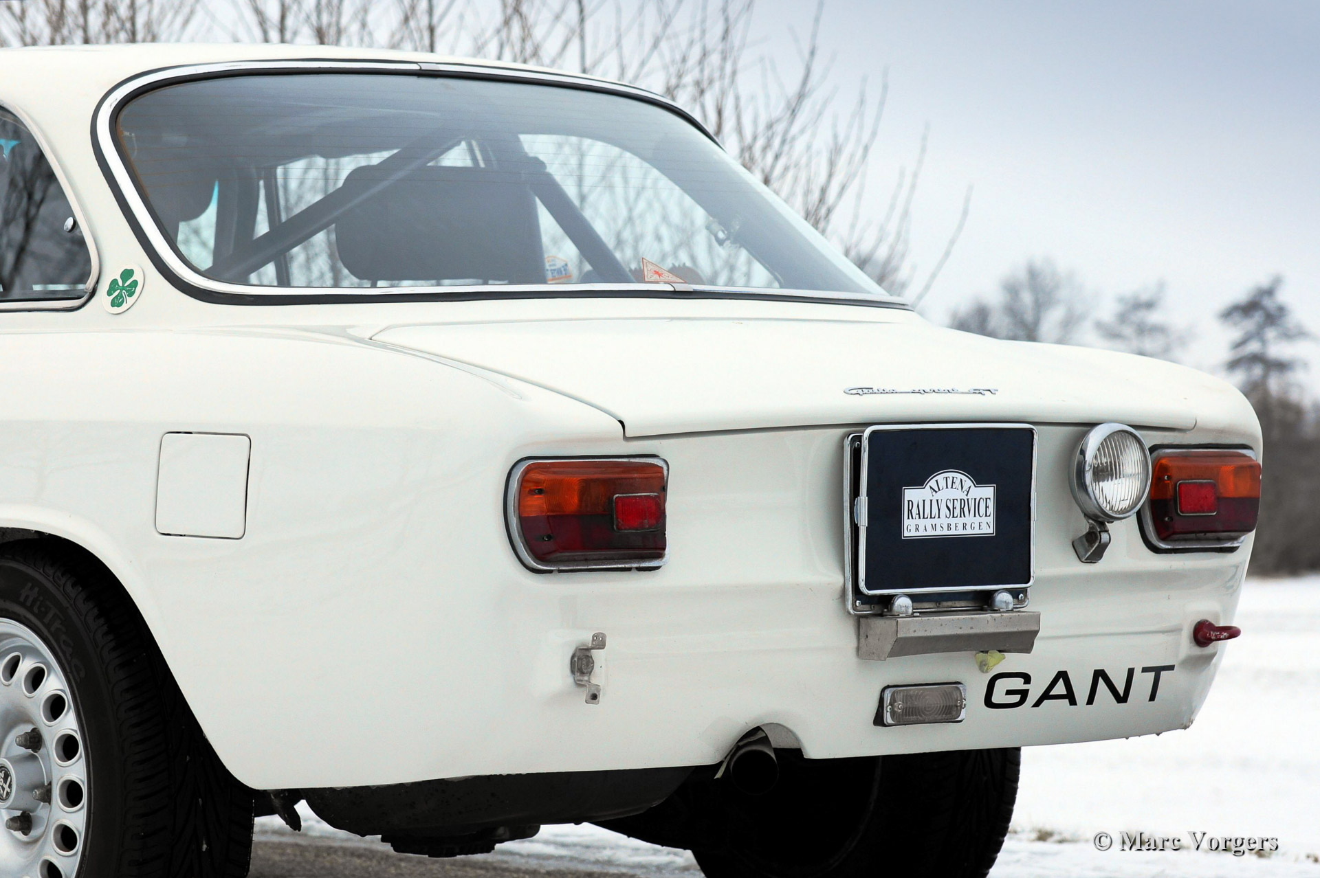 Alfa Romeo Giulia 1600 Sprint GT rally car 'Bertone', year 1964. Colour white /red front and a black rally interior. The automobile was extensively restored, overhauled and tuned.