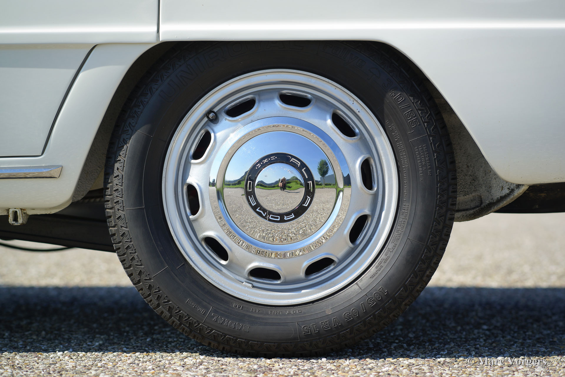 The Alfa Romeo Giulia shows a very characteristic body design which was extremely modern in the early sixties. The shape of the car was very aerodynamic and very functional by design. This compact saloon offered more space in the interior and trunk as one would expect at first glance.