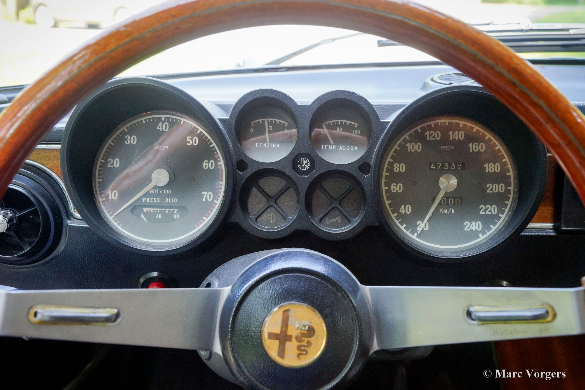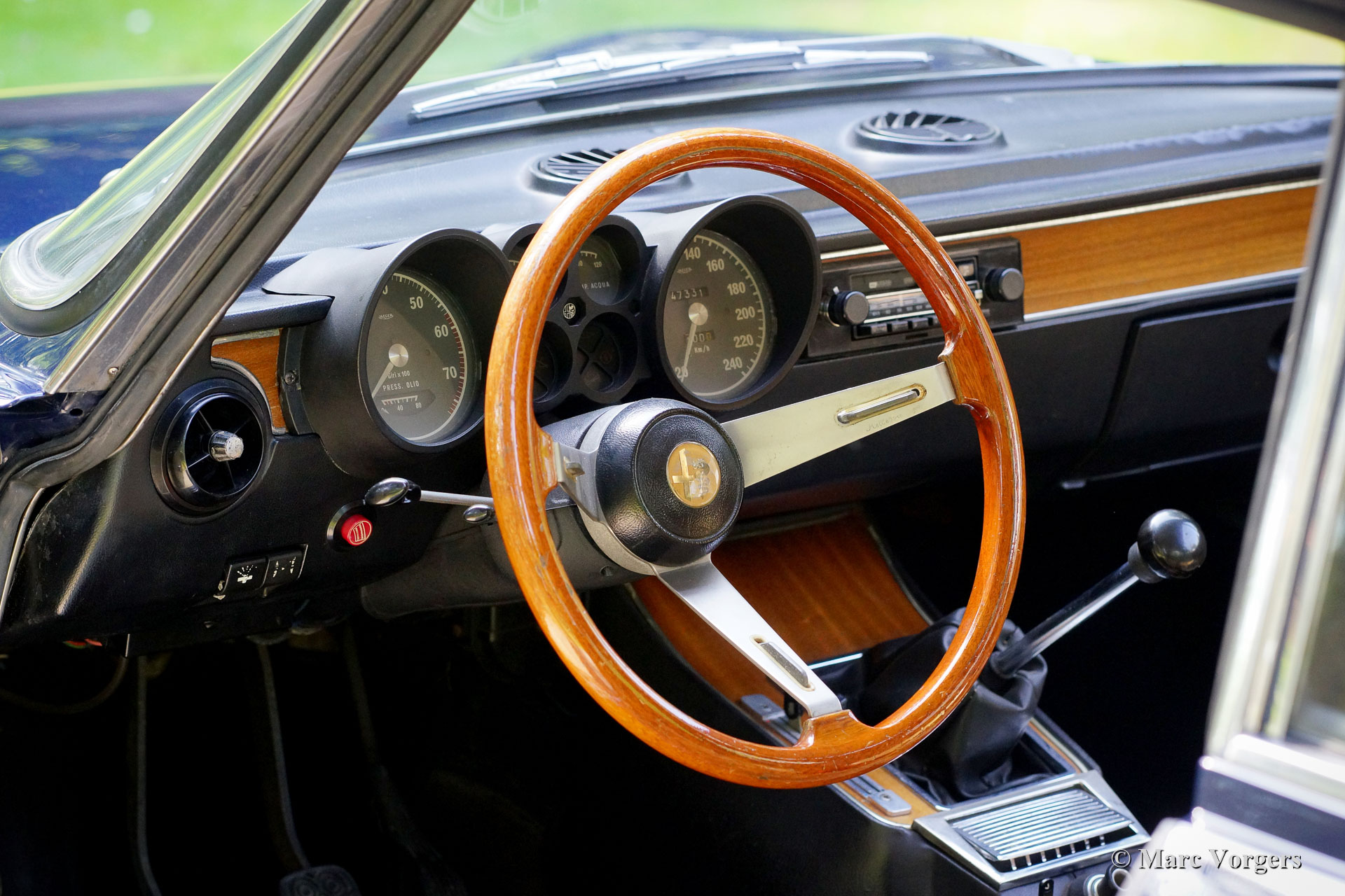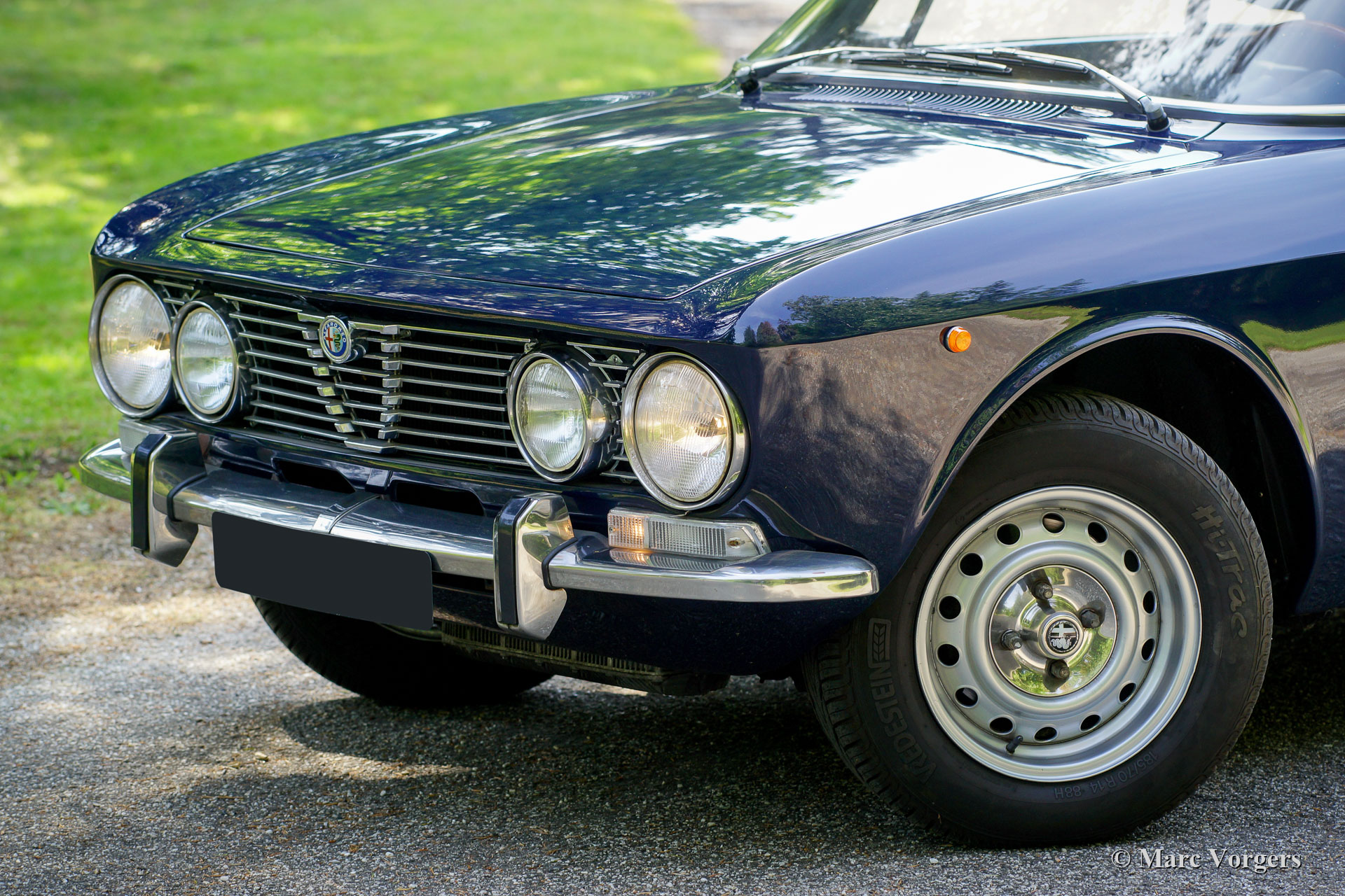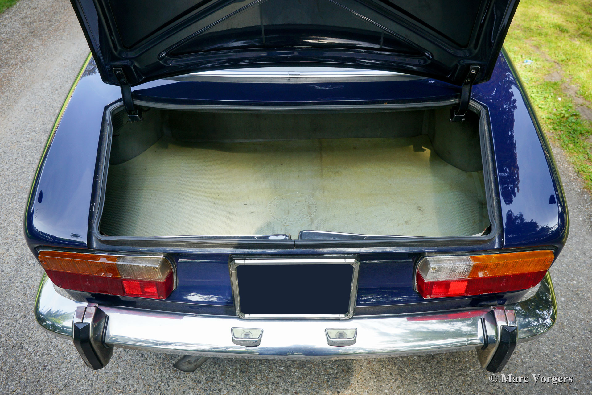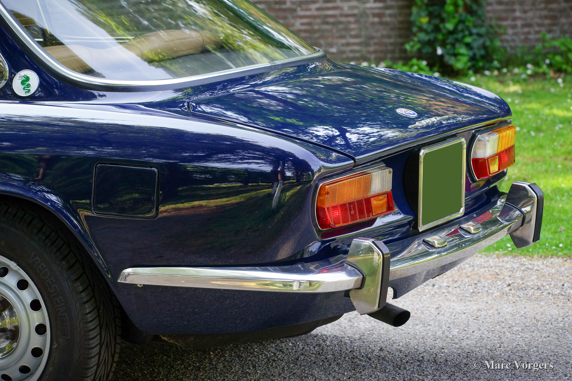 Alfa Romeo Giulia GTV 2000, jahr 1972. Farbe dunkelblau (Blu Olandese) kombiniert mit einem beigen Kunstleder Interieur und schwarzem Teppich. Dieser wunderschöne Alfa Romeo ‘Bertone’ wurde von seinem jetzigen Besitzer seit dem Jahr 2001 geschätzt. Das Auto hat mehrere Preise für Originalität auf Club- und anderen Concourse d’elegances gewonnen. Im Jahr 2005 wurde die Karosserie nach Topzustand restauriert, der blaue Lack wurde mit einer Klarlackschicht versehen und anschließend spiegelglatt poliert. Im Jahr 2009 wurden Motor und Getriebe von einem Markenspezialisten überholt. Dabei wurden ‘Fast Road‘ -Nockenwellen eingebaut. Dieser Alfa Romeo GTV 2000 zeigt alle Originaldetails, der Innenraum ist vollständig original und die Optik unter der Motorhaube hat alle Originaldetails beibehalten. Dieser GTV 2000 ist aufgrund der schönen Originalität in einem hervorragenden Zustand mit leichten Gebrauchs- und Altersspuren (Patina). Dies ist ein sehr begehrenswertes und ehrliches Exemplar und ein hervorragendes Fahrerauto!