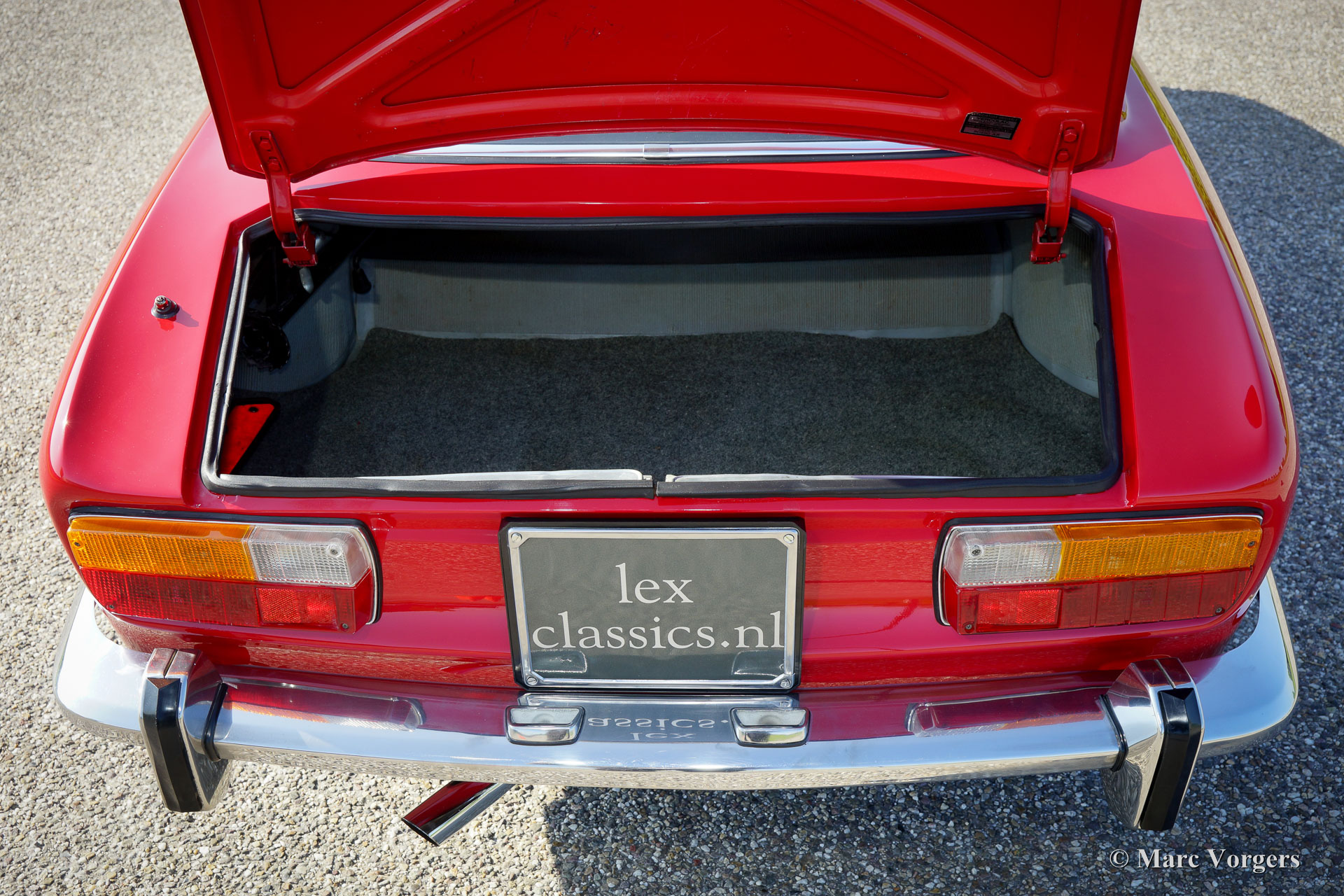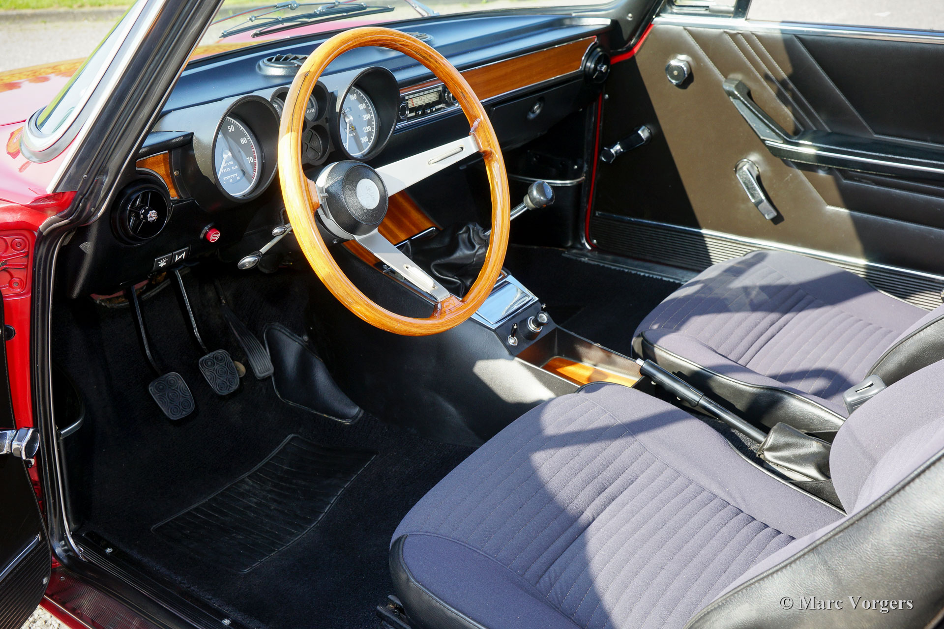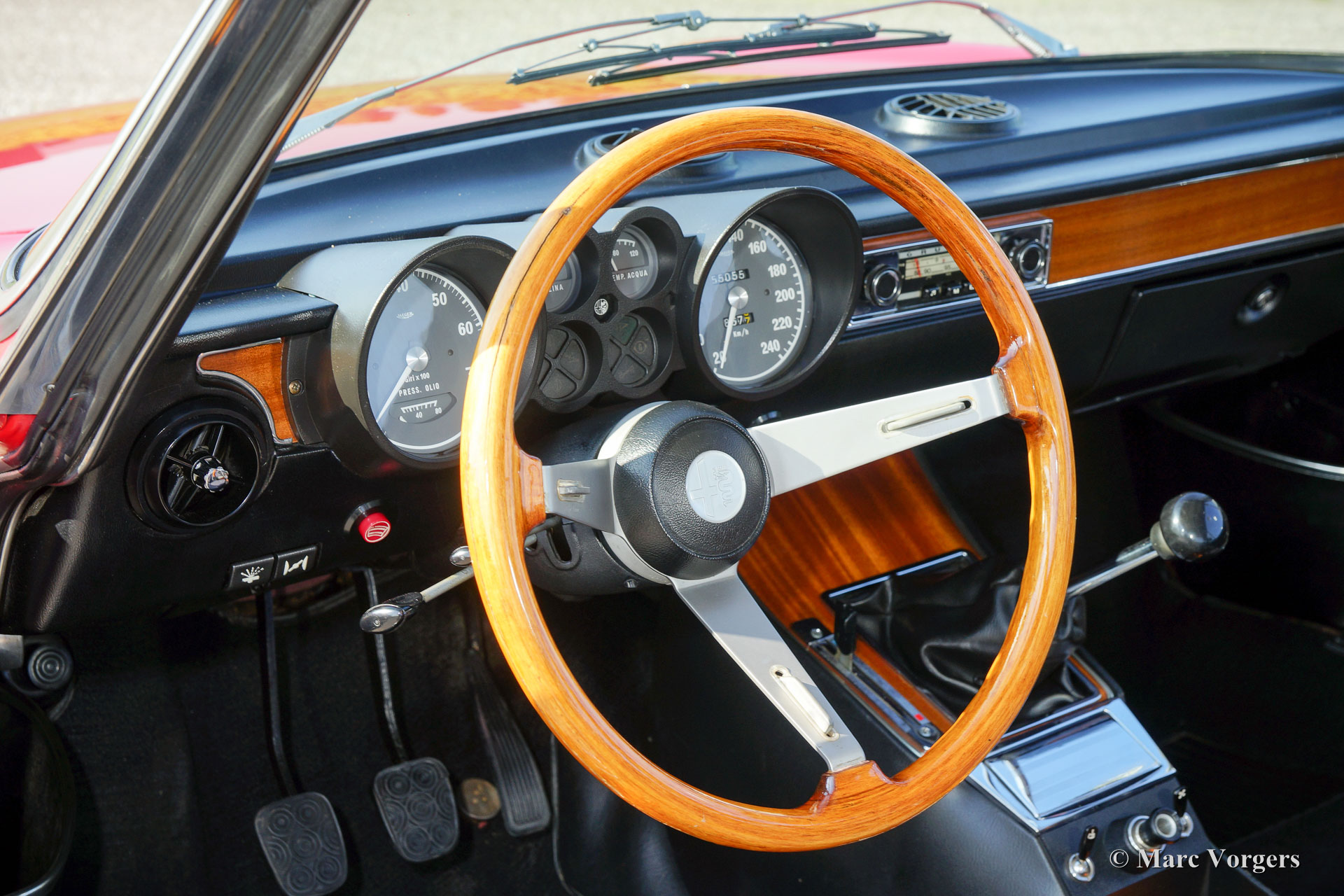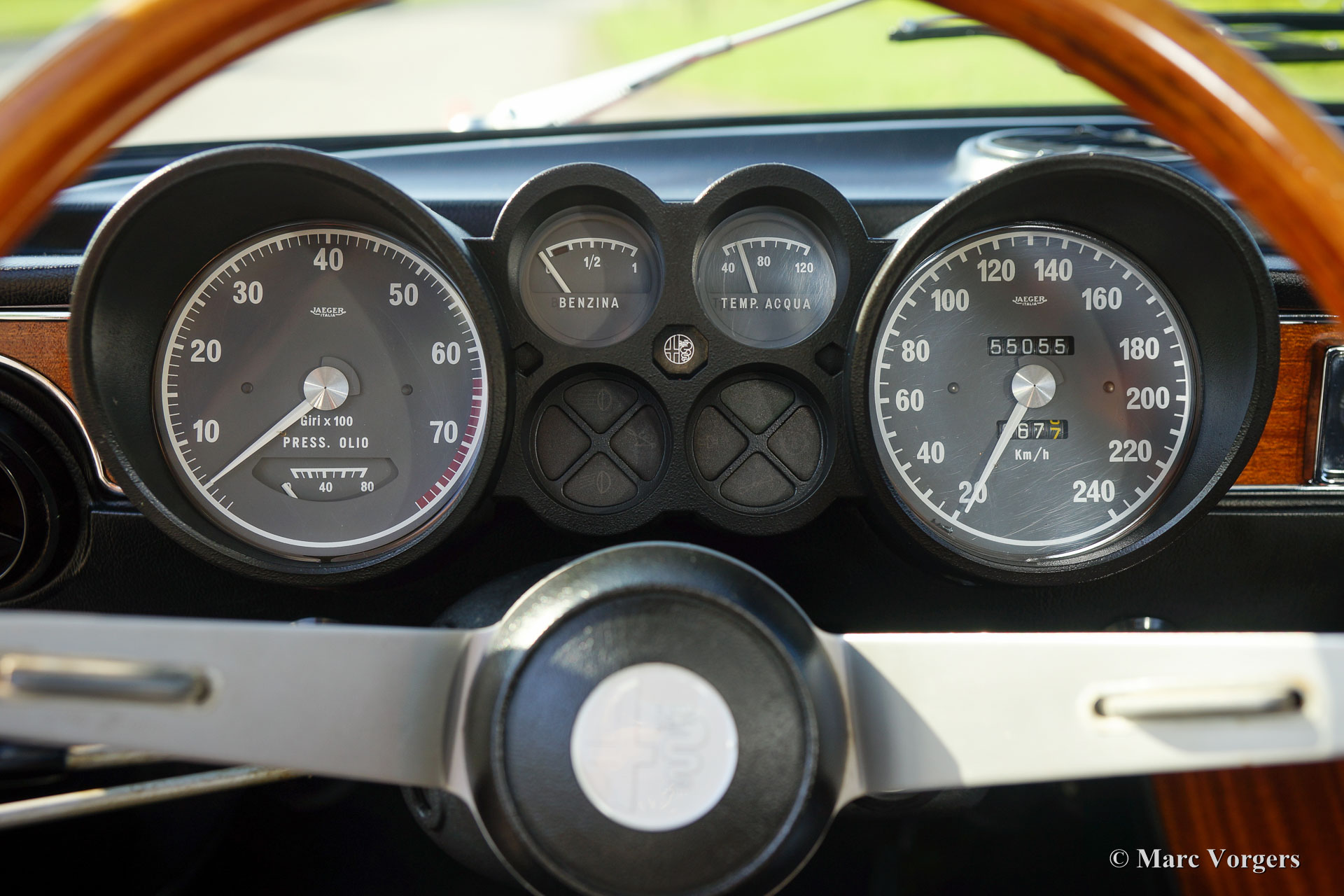 Alfa Romeo GT 1300 Junior 'Lusso', Jahr 1975. Fahrgestellnummer AR10530 * 0001302. Farbe rot (Alfa Rosso 501) mit schwarz / dunkelgrauem Kunstleder Innenraum mit Stoff Sitzverkleidungen und schwarzem Teppich. Dieser prächtige Alfa Romeo Giulia GT 1300 Junior, von Enthusiasten auch ‘Bertone‘ genannt, kommt vom ersten italienischen Besitzer! Dieser Super originale Alfa Romeo wurde vor kurzem in die Niederlande importiert. Das Auto hat von neuen nur 55.055 Kilometer gefahren! Diese Alfa feine Romeo ist in einem hervorragenden TOP-Zustand, concours! Der Körper wurde niemals angeschweißt, nichts wurde wiederhergestellt, das Auto wurde nur mal neu lackiert in der Originalfarbe! Diese wunderschöne ‘Bertone‘ zeigt alle originalen Details, die Original-Werkzeug-Set ist vorhanden wie auch die Original-Broschüren. Das Auto ist mit einer ganz schönen klassischen Grundig Radio ausgestattet. Dieser GT 1300 Junior ist ein sogenanntes ‘Lusso‘ (Deluxe) Modell. Dies ist das letzte Modell der Serie mit dem Innenraum, dem Schallschutz, dem Kühlergrill, den Rückleuchten und den Stoßfängern des Topmodell Giulia GTV 2000. Diese Art von super Originalität, und nie Restaurierte klassischen Autos in exzellenten bis Top-Zustand sind die heiligen Gral für ernsthafte Enthusiasten und Sammler. Eben eine Top-Restaurierung kann nie an den Scharm der Originalität herankommen.