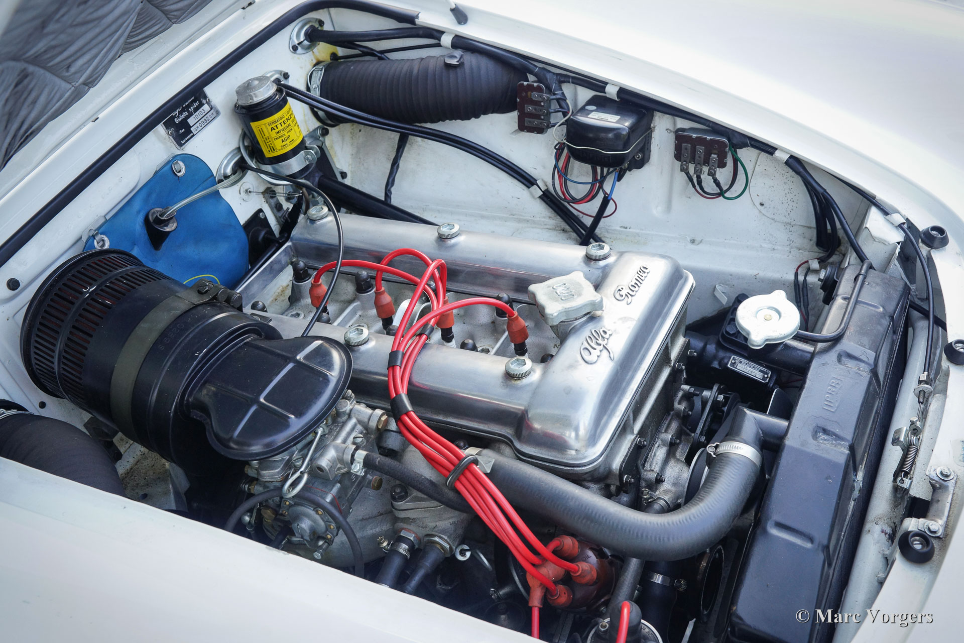 The Giulietta Spider was equipped with an aluminum 1300 cc. four cylinder engine with overhead camshafts and a five speed gearbox with floor-shift (later models, first models has steering column shift and a four speed gearbox).