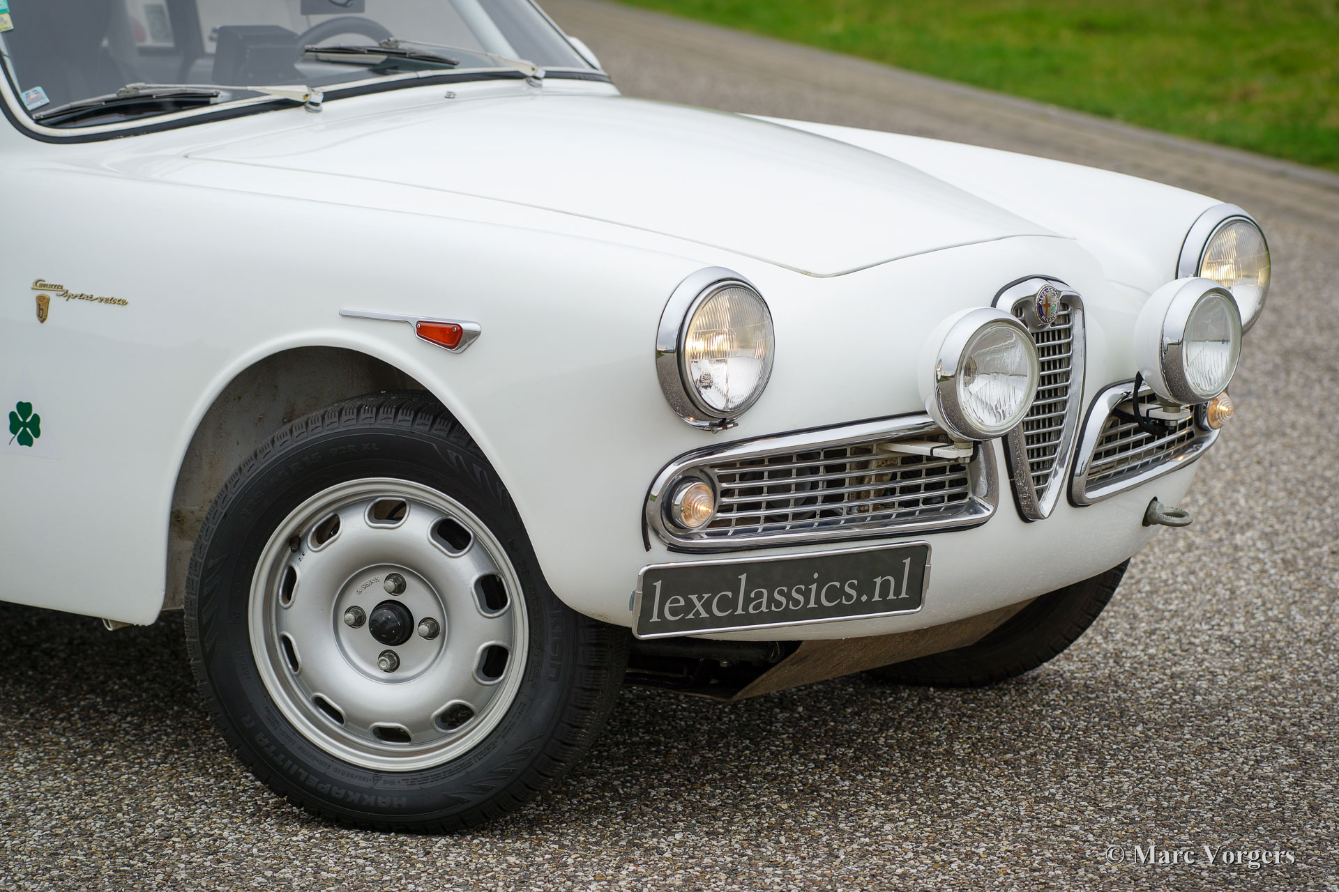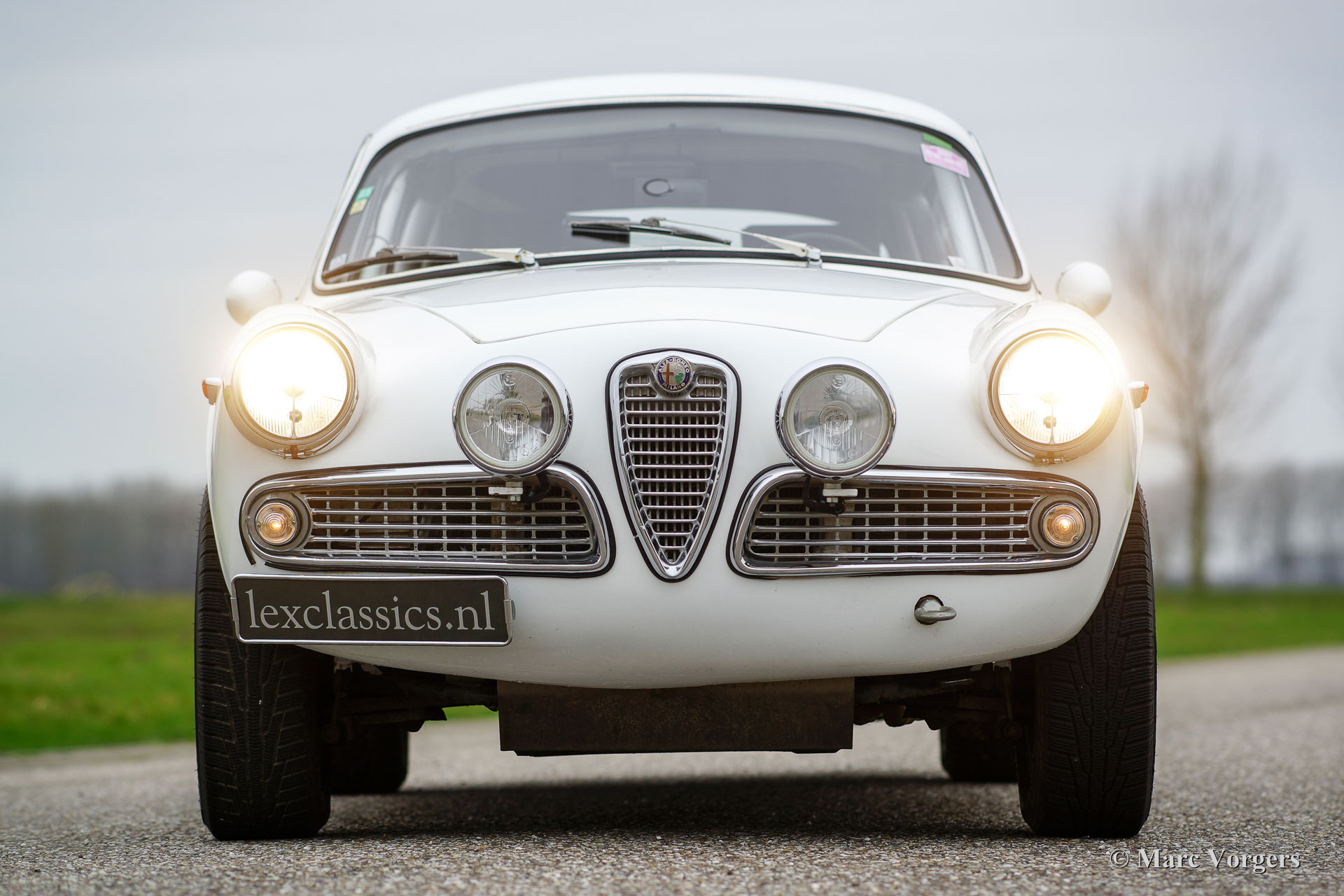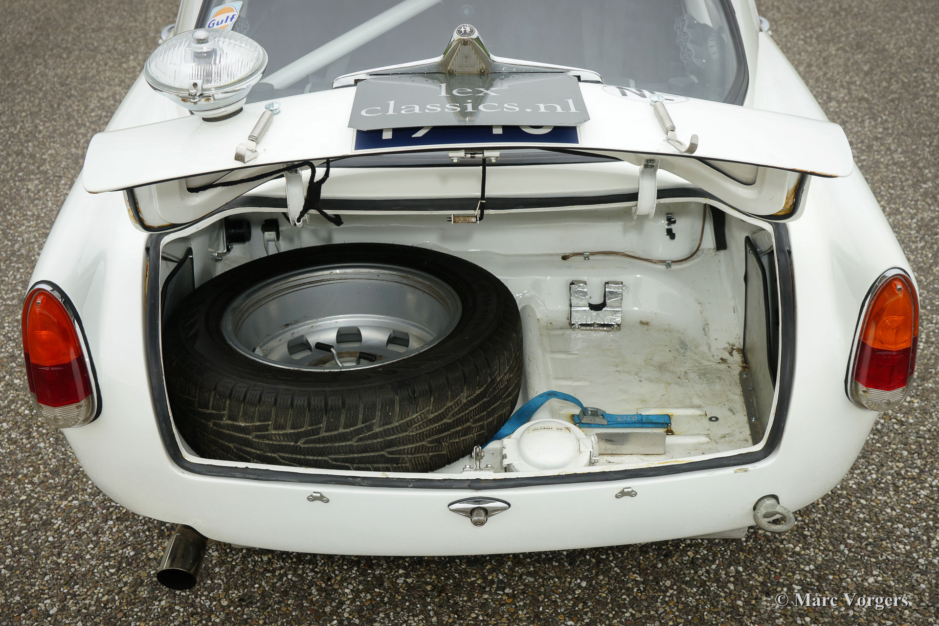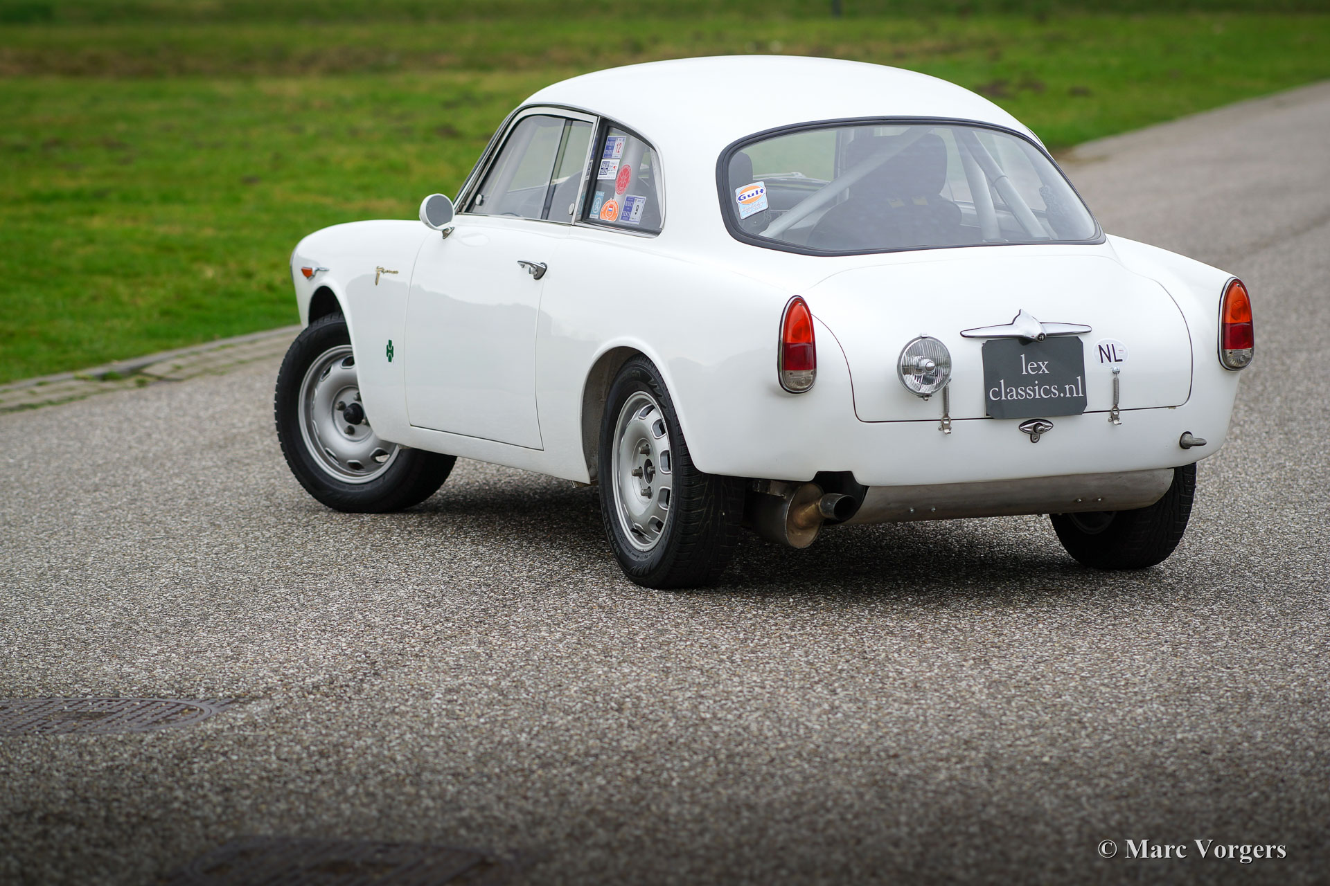 Alfa Romeo Giulietta Sprint Veloce, Jahr 1959. Fahrgestellnummer AR1493E096XX. Farbe Weiß (Sardenia White) mit schwarzem Halb-Leder Interieur und mit einem schwarzen Alcantara-Armaturenbrett. Dieser prächtige Alfa Romeo Giulietta Sprint Veloce wurde am 30. Juli 1959 gebaut. Am 1. August wurde das Auto an den ersten Besitzer in Brescia, Italien geliefert. Dieses Alfa Romeo Giulietta Rallye-Auto wurde ausgiebig für historische (Langstrecken-) Rallye-Teilnahme vorbereitet. Das Auto verfügt über einen vollen ‘Roll-Cage‘, Ölwanne- und Benzin-Tank-Schutz, einen Aluminium-Heizkörper, einen speziellen Edelstahl-Auspuff, einen Ölkühler, extra Benzinpumpe, ‘Limited-Slip‘ Differential, Schlepphaken vorne und hinten, Spezial Rally Sitze, Vierpunkt-Sicherheitsgurte, Tripmaster, zusätzliche Innenleuchten und zusätzliche Fahr- / Nebelscheinwerfer vorne. Dieser Alfa Romeo Giulietta ist ein mächtiges historisches Rallye-Auto!