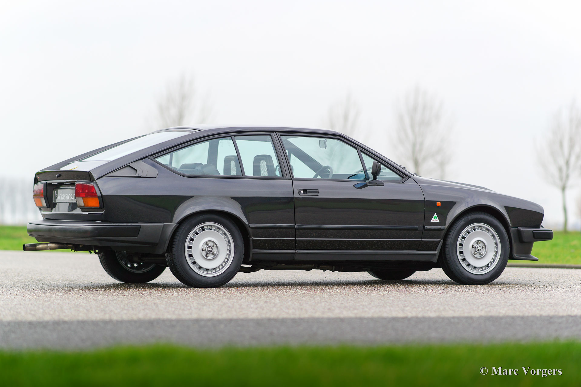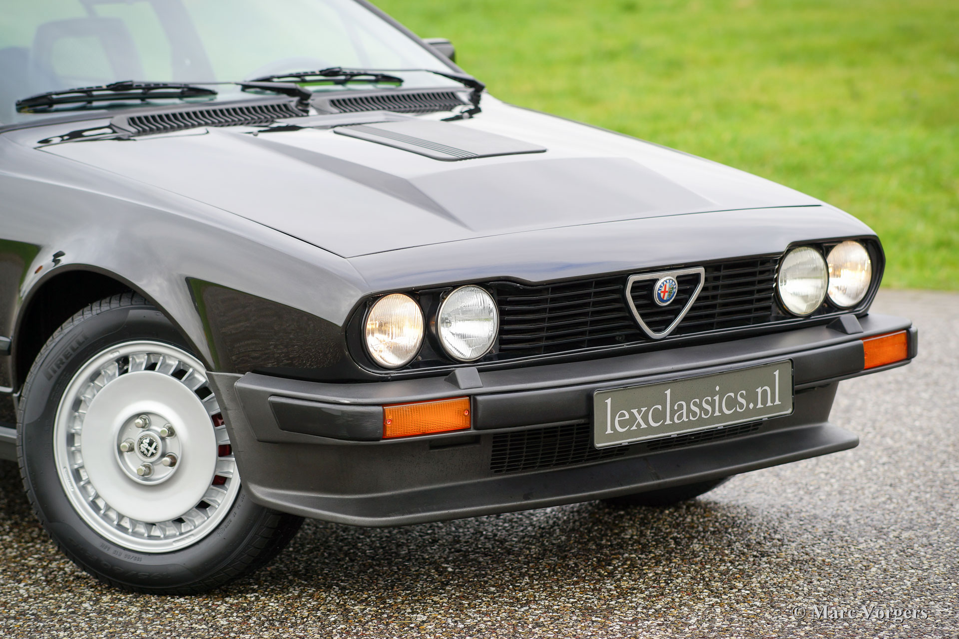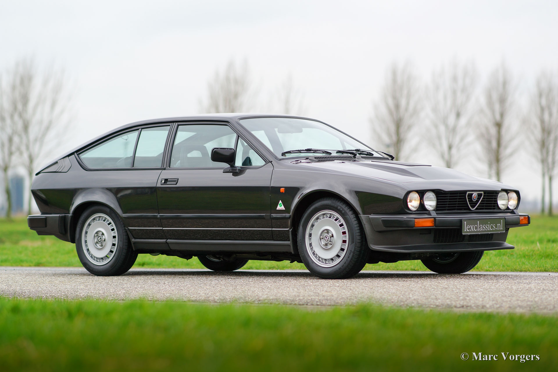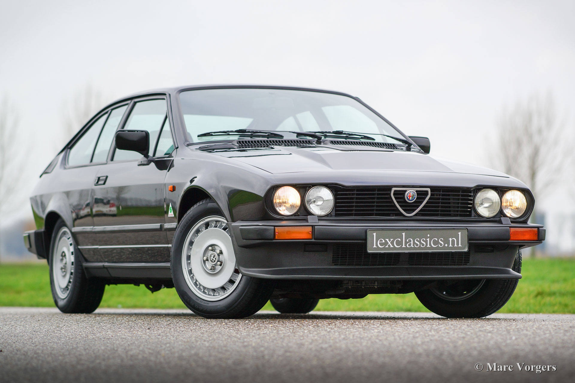 Alfa Romeo GTV6 2.5, Jahr 1984. Farbe Anthrazit-Metallic mit schwarzem Stoff Interieur und schwarzen Teppich. Diese wunderschöne Alfa Romeo GTV6 wurde in den Niederlanden neu Verkauft von den Alfa Romeo Vertreter "Albatros" in Amsterdam. Diese GTV6 ist in einem sehr guten und sehr ursprünglichen Zustand! Vor ein paar Jahren wurde das Auto ganz schön neu Lackiert. Der Innenraum ist komplett original und sehr gut mit einigen Gebrauchsspuren. Der V6-Motor ist ein Juwel, dass viel Drehmoment liefert und eine großartige Sound-track! Das ‘Transaxle‘ Schaltgetriebe, die auf das hintere Differential montiert ist, lasst sich perfekt schalten. Die GTV6 ist das ‘top-of-the-line‘ Modell der Alfetta Modellreihe. Ein gutes und sehr originelles Exemplar wie dieses Auto ist schwer zu finden. Das Auto verfügt über die Original-Leichtmetallräder. Die ursprünglichen Service-Heft und Handbuch sind vorhanden.