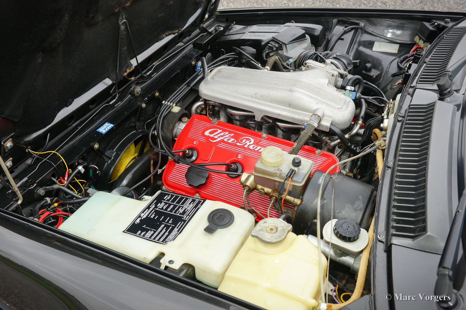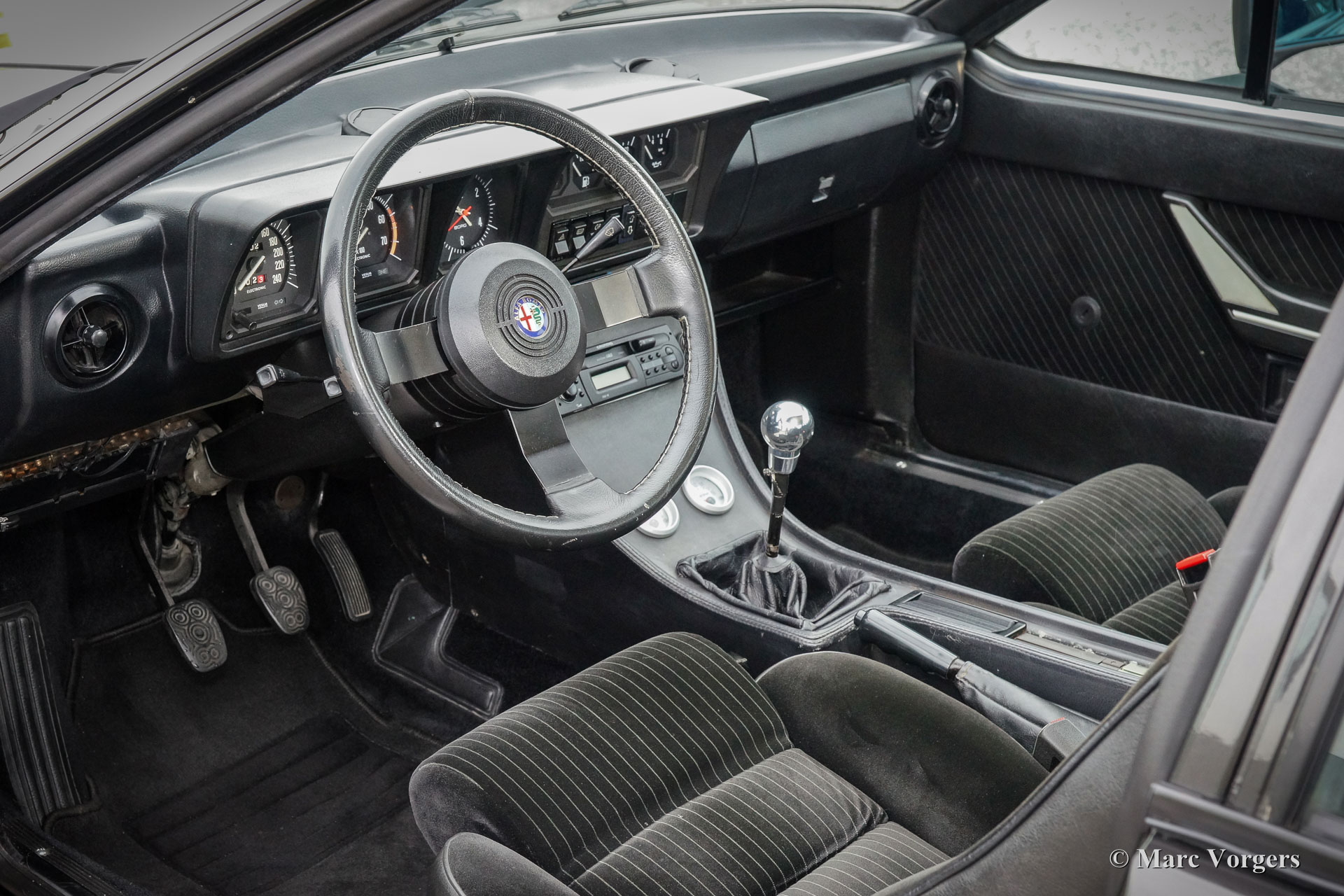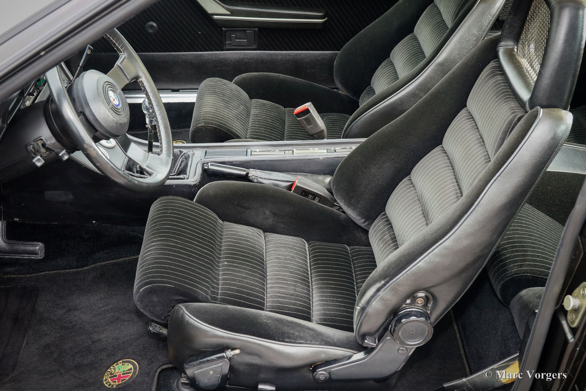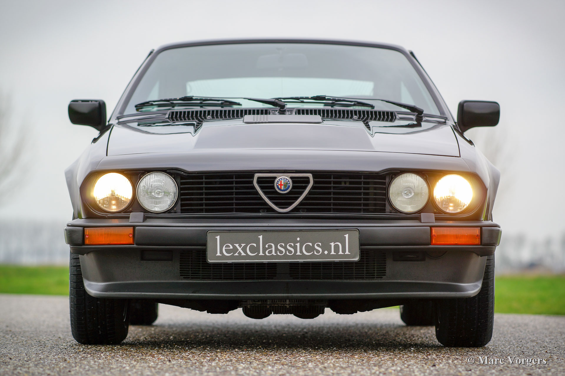 Alfa Romeo GTV6 2.5, Jahr 1984. Farbe Anthrazit-Metallic mit schwarzem Stoff Interieur und schwarzen Teppich. Diese wunderschöne Alfa Romeo GTV6 wurde in den Niederlanden neu Verkauft von den Alfa Romeo Vertreter "Albatros" in Amsterdam. Diese GTV6 ist in einem sehr guten und sehr ursprünglichen Zustand! Vor ein paar Jahren wurde das Auto ganz schön neu Lackiert. Der Innenraum ist komplett original und sehr gut mit einigen Gebrauchsspuren. Der V6-Motor ist ein Juwel, dass viel Drehmoment liefert und eine großartige Sound-track! Das ‘Transaxle‘ Schaltgetriebe, die auf das hintere Differential montiert ist, lasst sich perfekt schalten. Die GTV6 ist das ‘top-of-the-line‘ Modell der Alfetta Modellreihe. Ein gutes und sehr originelles Exemplar wie dieses Auto ist schwer zu finden. Das Auto verfügt über die Original-Leichtmetallräder. Die ursprünglichen Service-Heft und Handbuch sind vorhanden.
