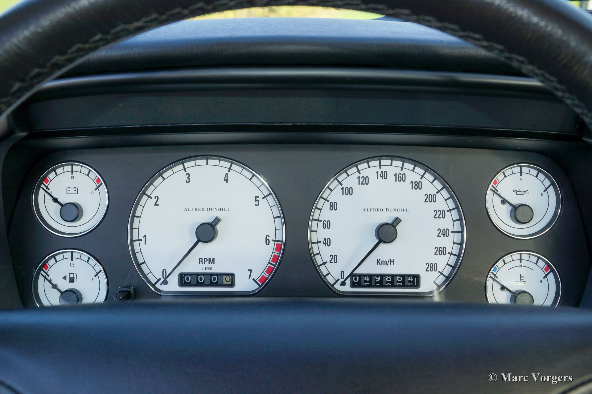 Diese Aston Martin Modelle sind benannt nach Alfred Dunhill und die Autos wurden als Coupé und Cabrio Modelle geliefert. Unterscheidungsdetails sind die Platinmetallic-Farbe kombiniert mit der dunkelgrauen Lederausstattung, die gebürsteten Aluminiumdetails im Interieur, der speziellen Dunhill Uhr und den speziellen dunkelgrau lackierten Leichtmetallrädern. Bemerkenswert ist, dass die Autos in ‘Raucher‘ oder ‘Nichtraucher‘ Ausführung geliefert wurden. DIESES Auto ist eine Nichtraucherausgabe, die eine Dunhill Parfumflasche in der Armlehne kennzeichnet. Andere original Dunhill 'Goodies', die mit dem Auto kommen sind zwei original Dunhill Stifte, zwei Dunhill Manschettenknöpfe und eine Dunhill Krawattennadel. Dieser Aston Martin ist sehr gut dokumentiert. Die Original Service- und Anleitungsbücher sind vorhanden, eine Service-Rechnung aus 2013 von Aston Martin Heritage in den Niederlanden und ein Brief des italienischen Händlers/ Werkstatt, in dem bestätigt wird, dass das Auto zwei italienische Besitzer kannte und dass das Auto pünktlich gewartet wurde. Dies ist eine seltene Chance, eine spezielle ‘Limitierte Edition‘ Aston Martin zu erwerben.