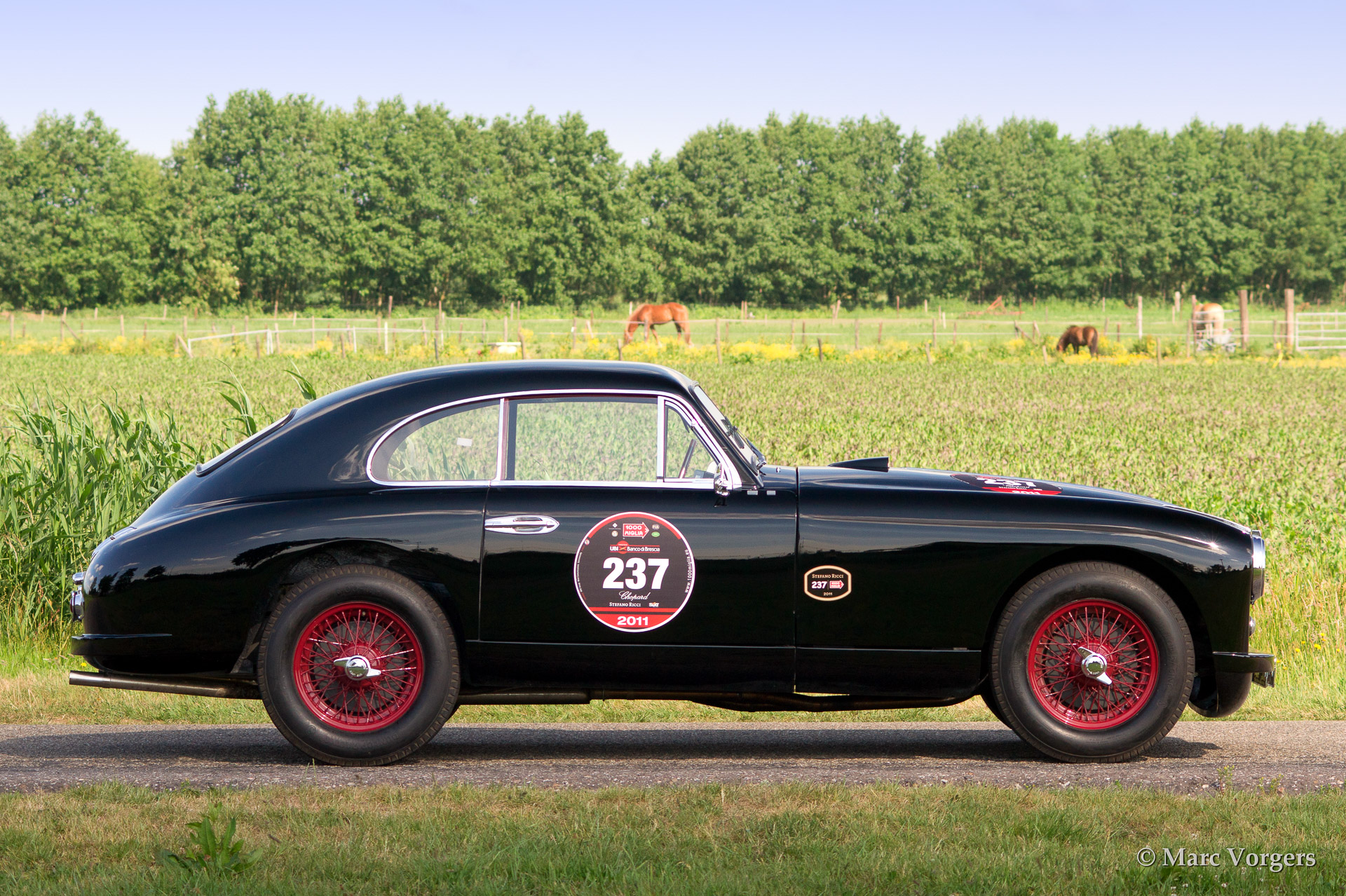 Aston Martin DB2 Vantage, year 1952. Colour black with dark red enameled wire wheels and a dark red leather interior. This scarce and very beautiful DB2 Vantage was extensively restored. This Aston Martin DB2 Vantage was delivered to the first owner with registration AY2 on 1 January 1953 by H.W. Motors of England.
