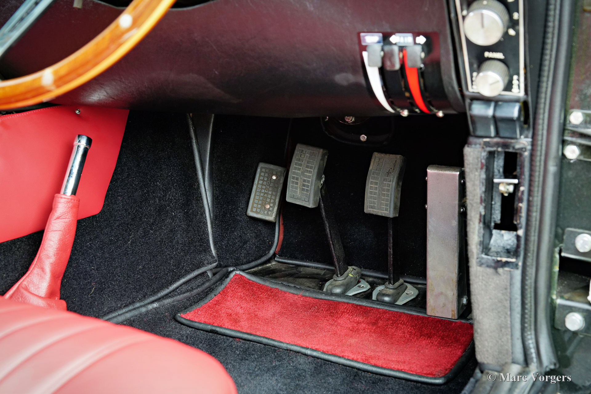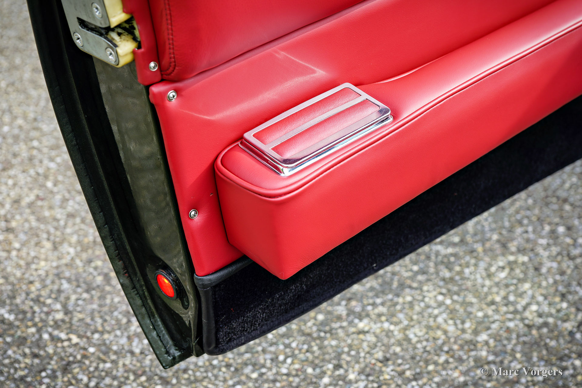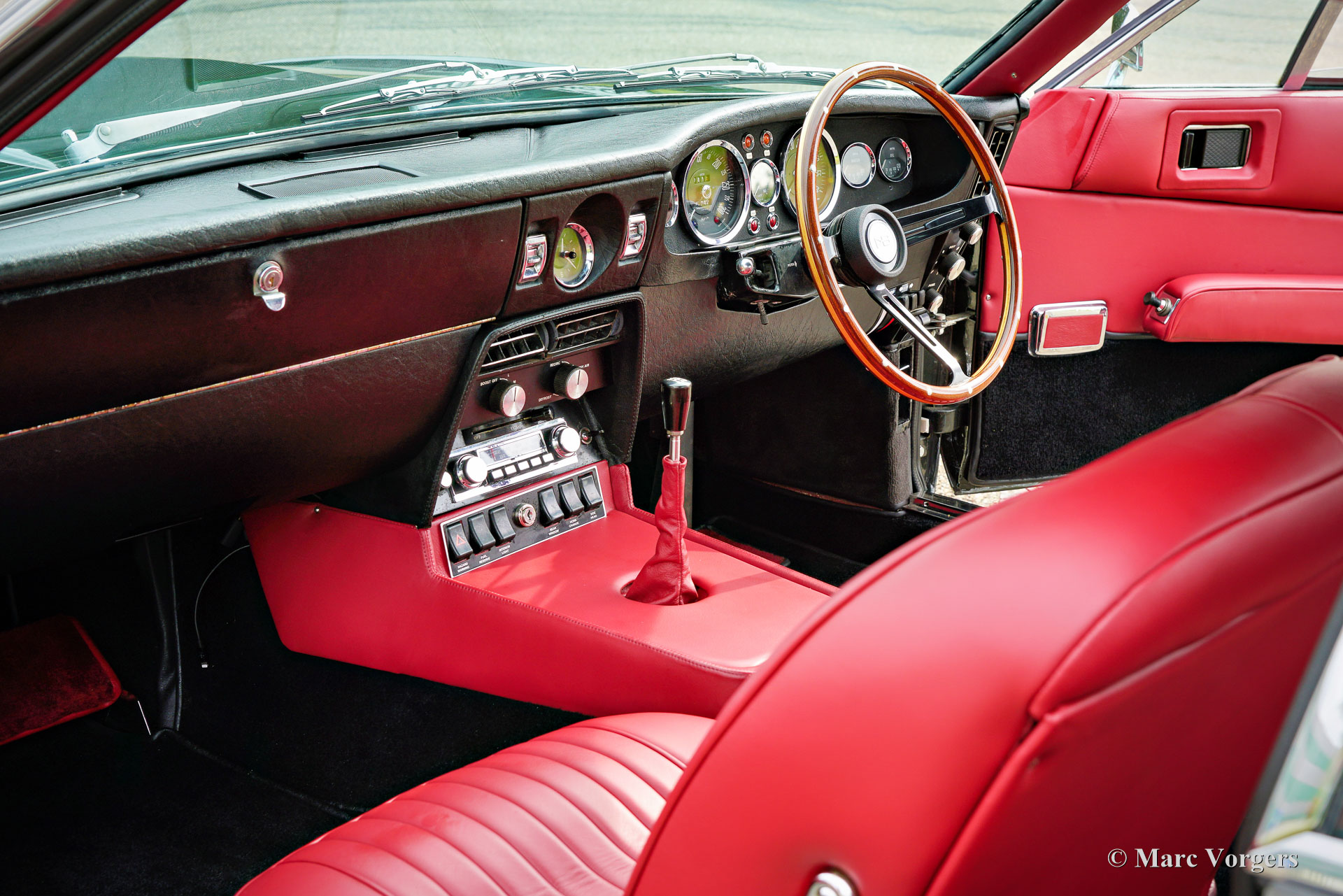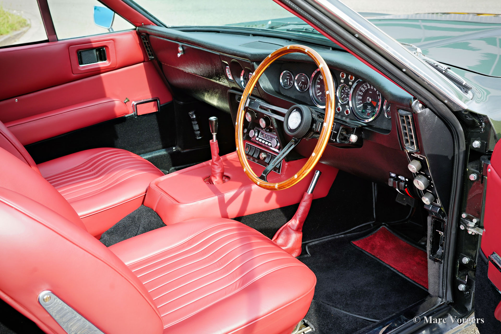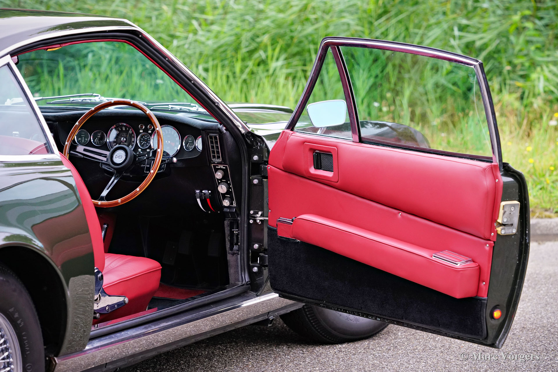 Aston Martin DBS Serie 1 Coupé, Jahr 1970. Farbe Grün Metallic kombiniert mit roter Lederausstattung und schwarzem Teppich. Der DBS war der Nachfolger der legendären Modelle DB5 und DB6 und der letzte Aston Martin, der unter der Leitung von David Brown entwickelt und gebaut wurde. Wie der DB5 wurde der DBS durch James Bond berühmt. Der DBS kam im James-Bond-Film „On Her Majesty’s Secret Service“ von 1969 vor. Der Aston Martin DBS sollte mit einem von Aston Martin gebauten V8-Motor ausgestattet werden. Da dieser Motor nicht rechtzeitig fertig wurde, wurde die erste Serie von DBS-Autos mit dem 3995-cm³-Reihensechszylindermotor aus dem DB6 ausgestattet, der satte 282 PS lieferte. Weitere charakteristische Merkmale der Serie 1 sind die vier Scheinwerfer und der Kühlergrill mit Chrom Lamellen. Vom Aston Martin DBS Serie 1 wurden nur 802 Exemplare gebaut. Diese Autos sind ein großartiges Stück Aston Martin- und David Brown-Erbe.