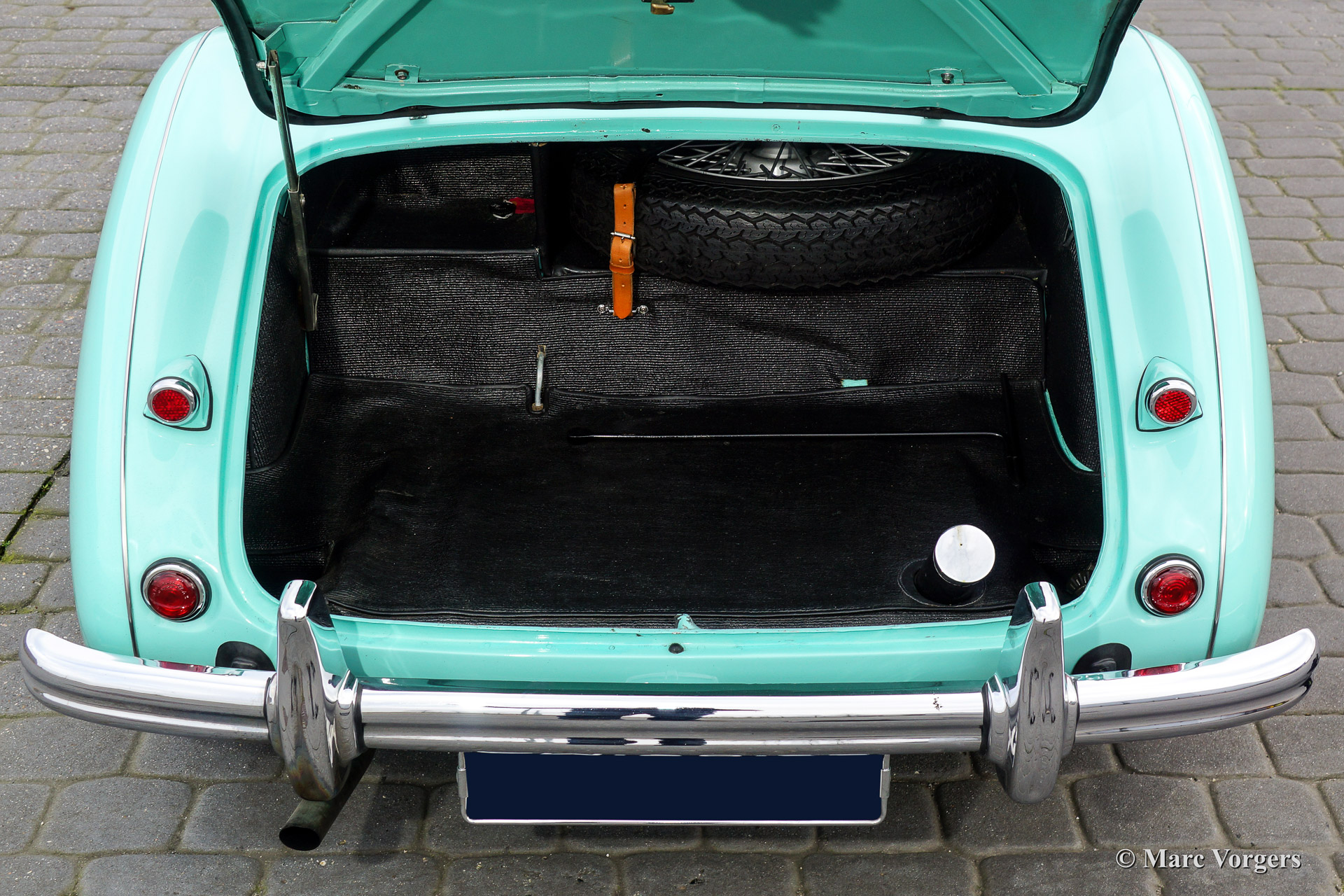 The 100 was the first Austin Healey (also named 100/4 after the 100/6 six cylinder appeared on the market). This extremely well looking car was equipped with a 2660 cc. four-cylinder engine. This engine was used in the Austin Atlantic. The 100 models built up to the year 1955 were equipped with a 3-speed gearbox with optional double overdrive. The latter models were offered with a 4-speed gearbox with optional overdrive on the top-gear.