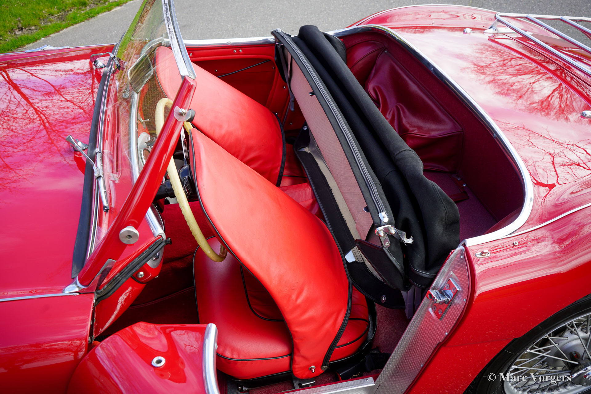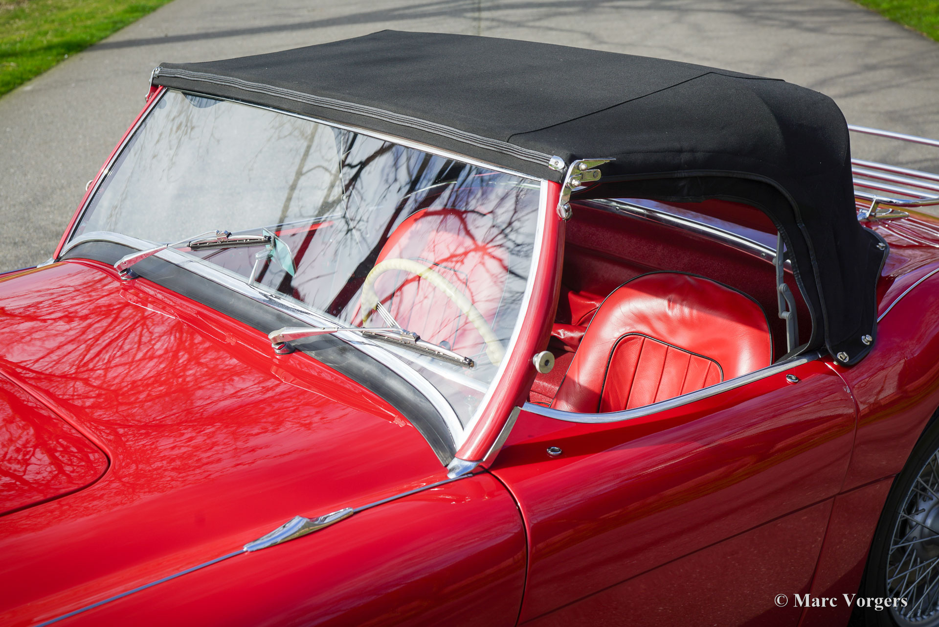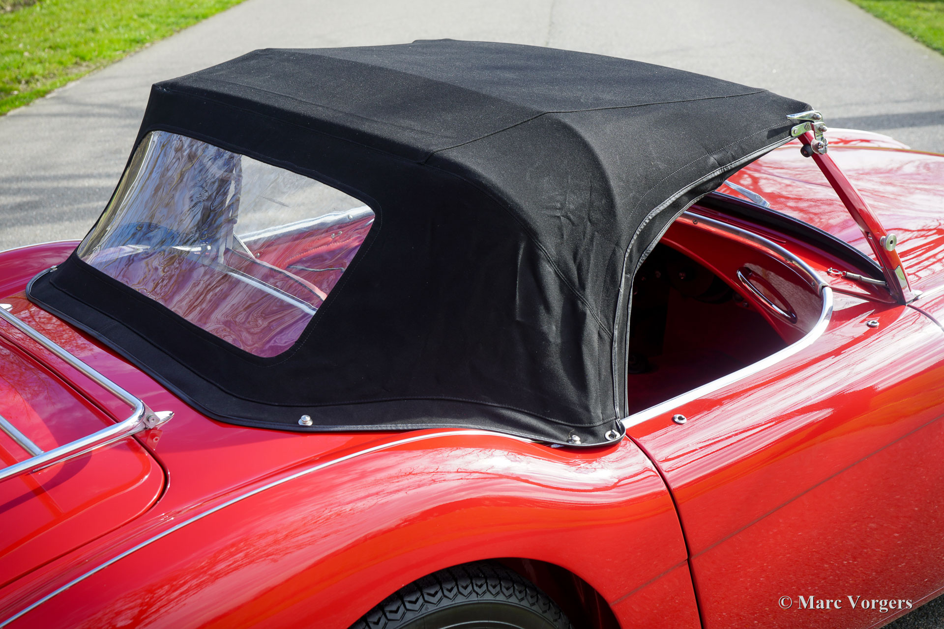 The former Healey models were more Spartan and featured fully detachable soft tops with separate side screens which could be stowed away in the booth.