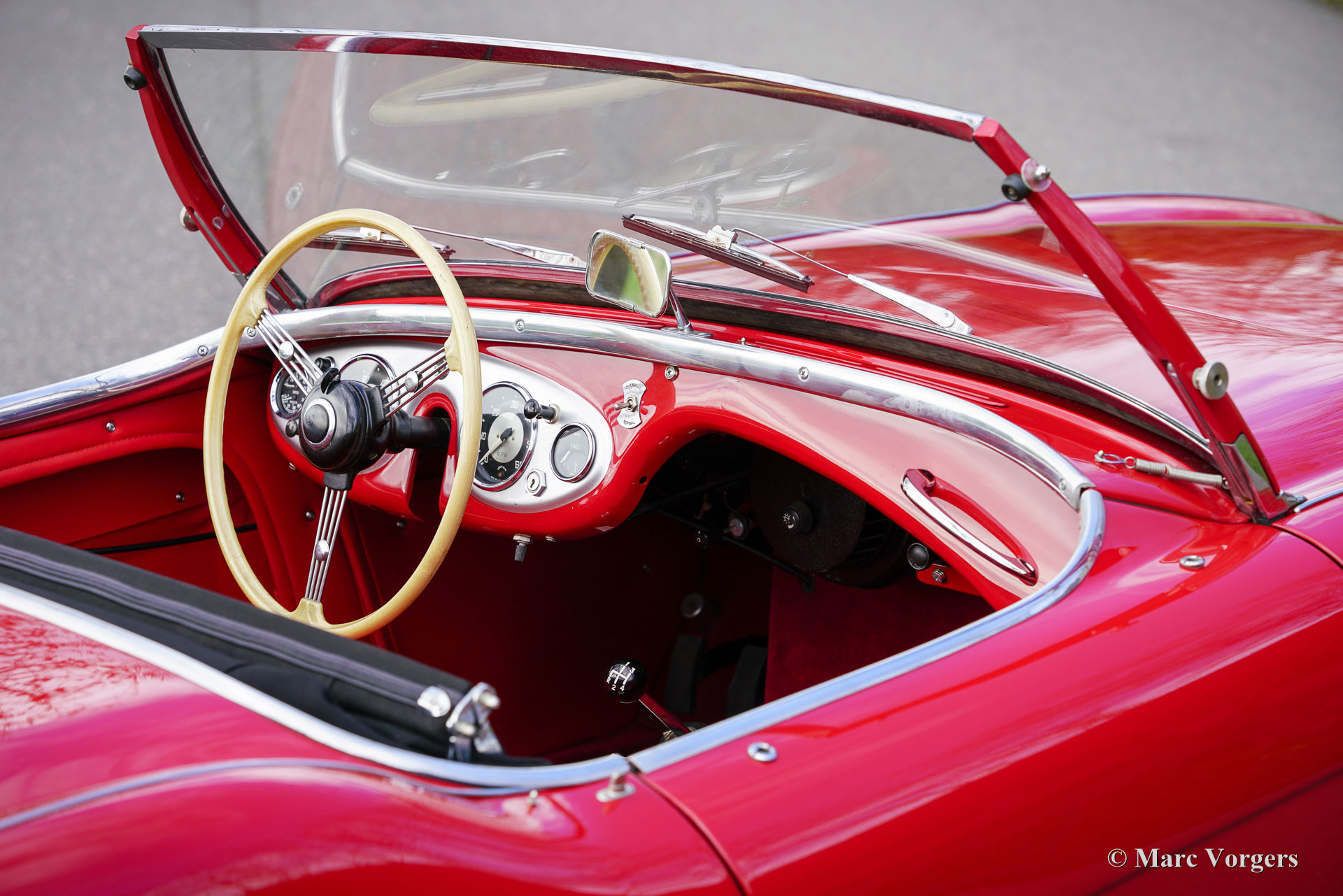 Healey Motor Corporation was going to show their new Healey 100 at the "Earls Court Motor Show"of 1952. Austin Motor Company discovered the beautiful car on the Healey stand before the show opened. Austin Motor Company desperately needed a sportscar to have an opponent for the MG sportscars and the brand new Triumph TR 2 and the Jaguar XK 120.