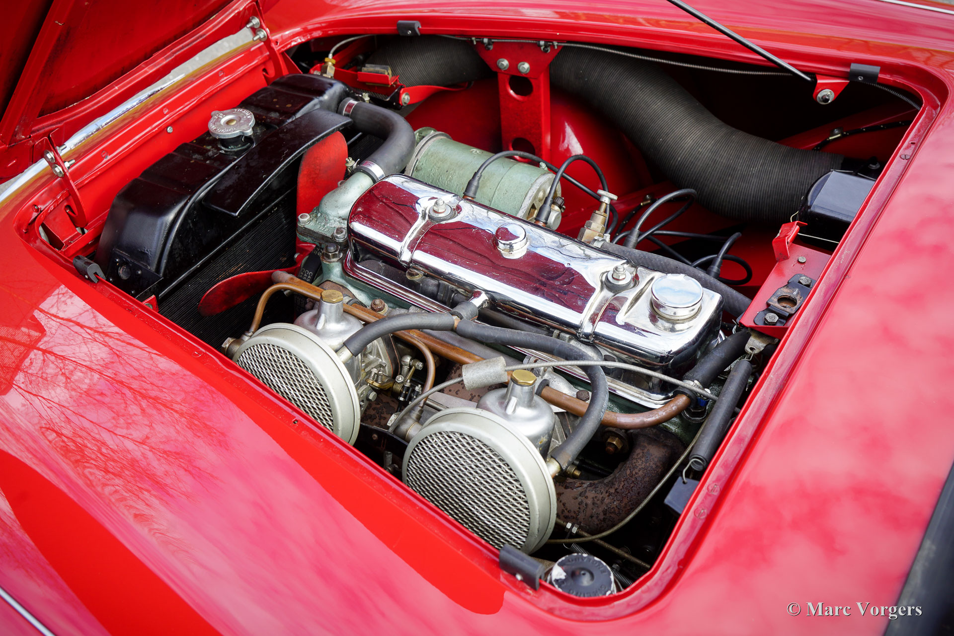 The 100 was the first Austin Healey (also named 100/4 after the 100/6 six cylinder appeared on the market). This extremely well looking car was equipped with a 2660 cc. four-cylinder engine. This engine was used in the Austin Atlantic. The 100 models built up to the year 1955 were equipped with a 3-speed gearbox with optional double overdrive. The latter models were offered with a 4-speed gearbox with optional overdrive on the top-gear.