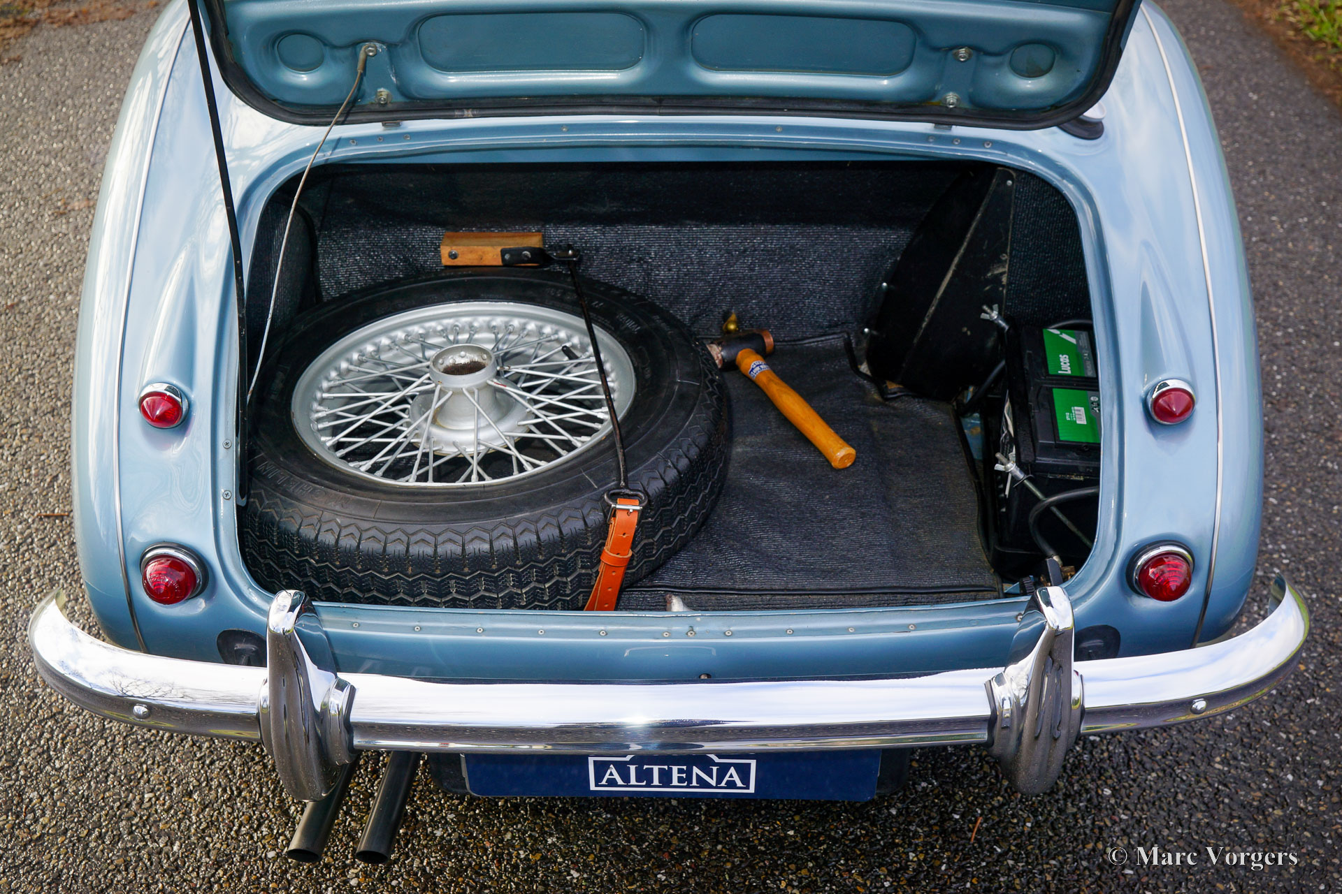 The former Healey models were more Spartan and featured fully detachable soft tops with separate side screens which could be stowed away in the booth.
