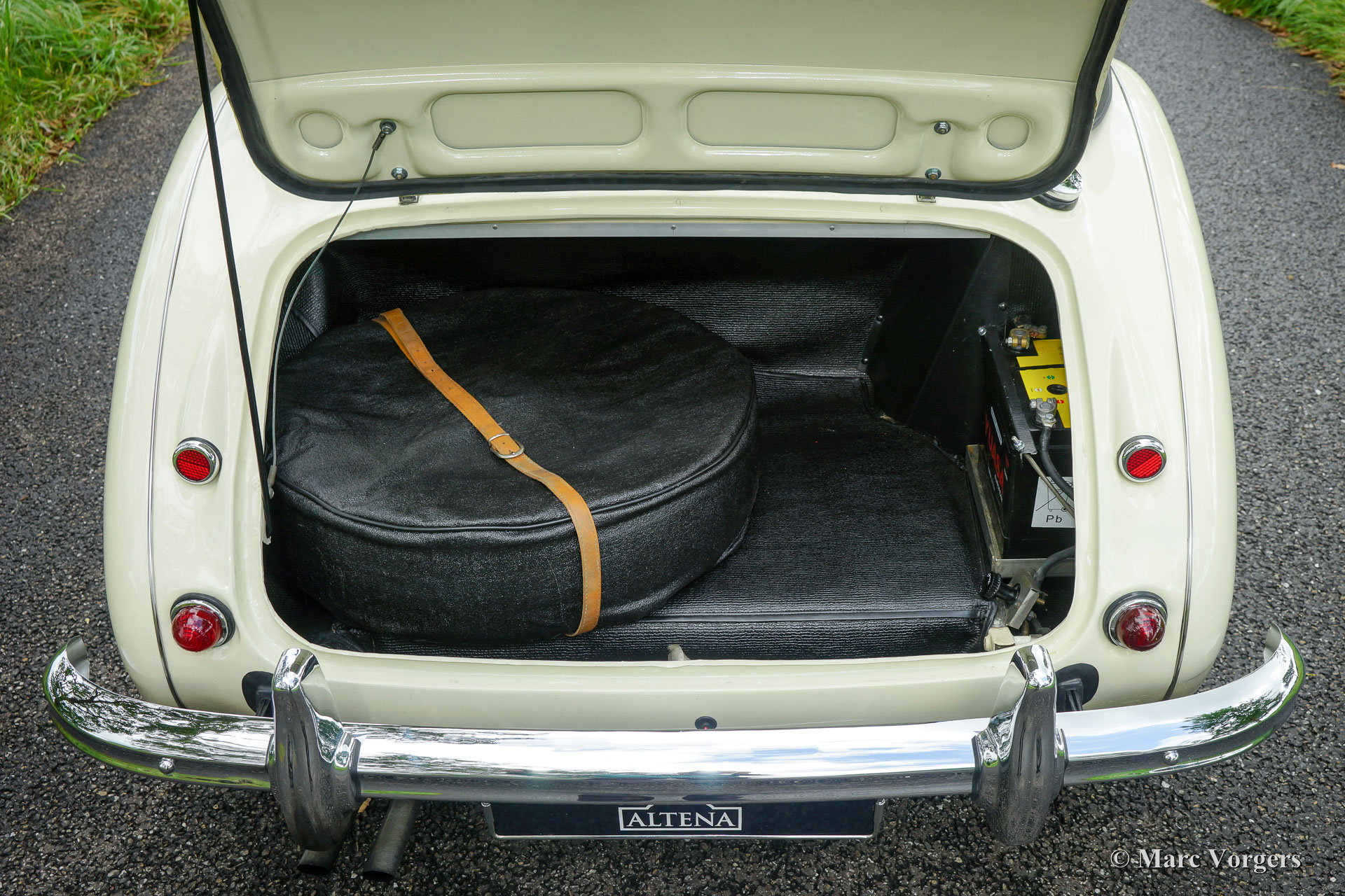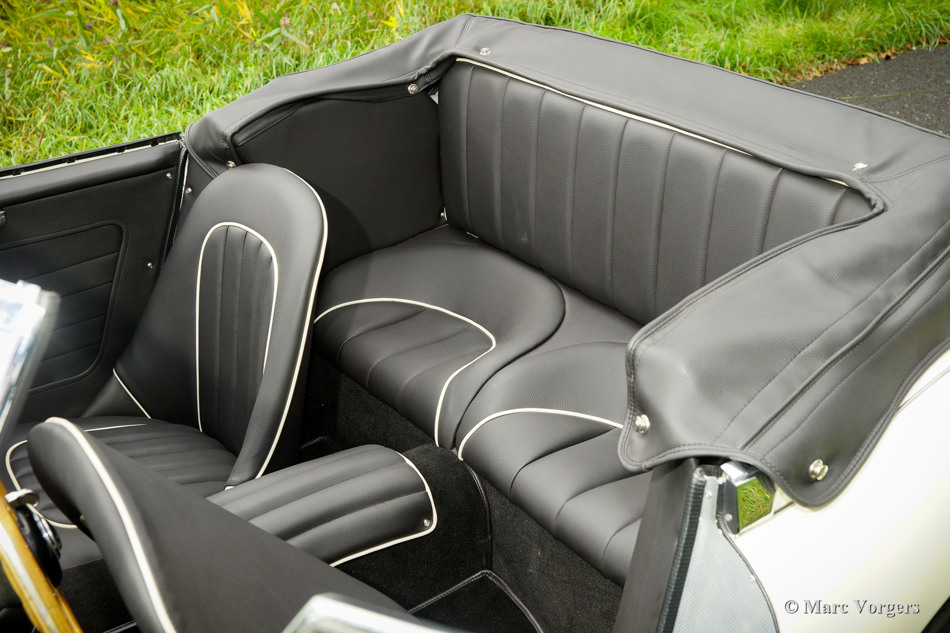 The former Healey models were more Spartan and featured fully detachable soft tops with separate side screens which could be stowed away in the booth.