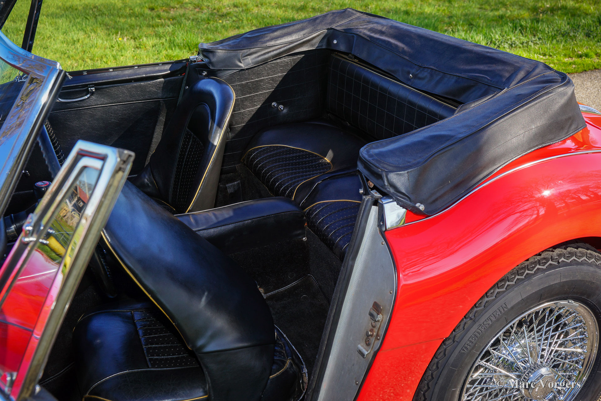 The former Healey models were more Spartan and featured fully detachable soft tops with separate side screens which could be stowed away in the booth.