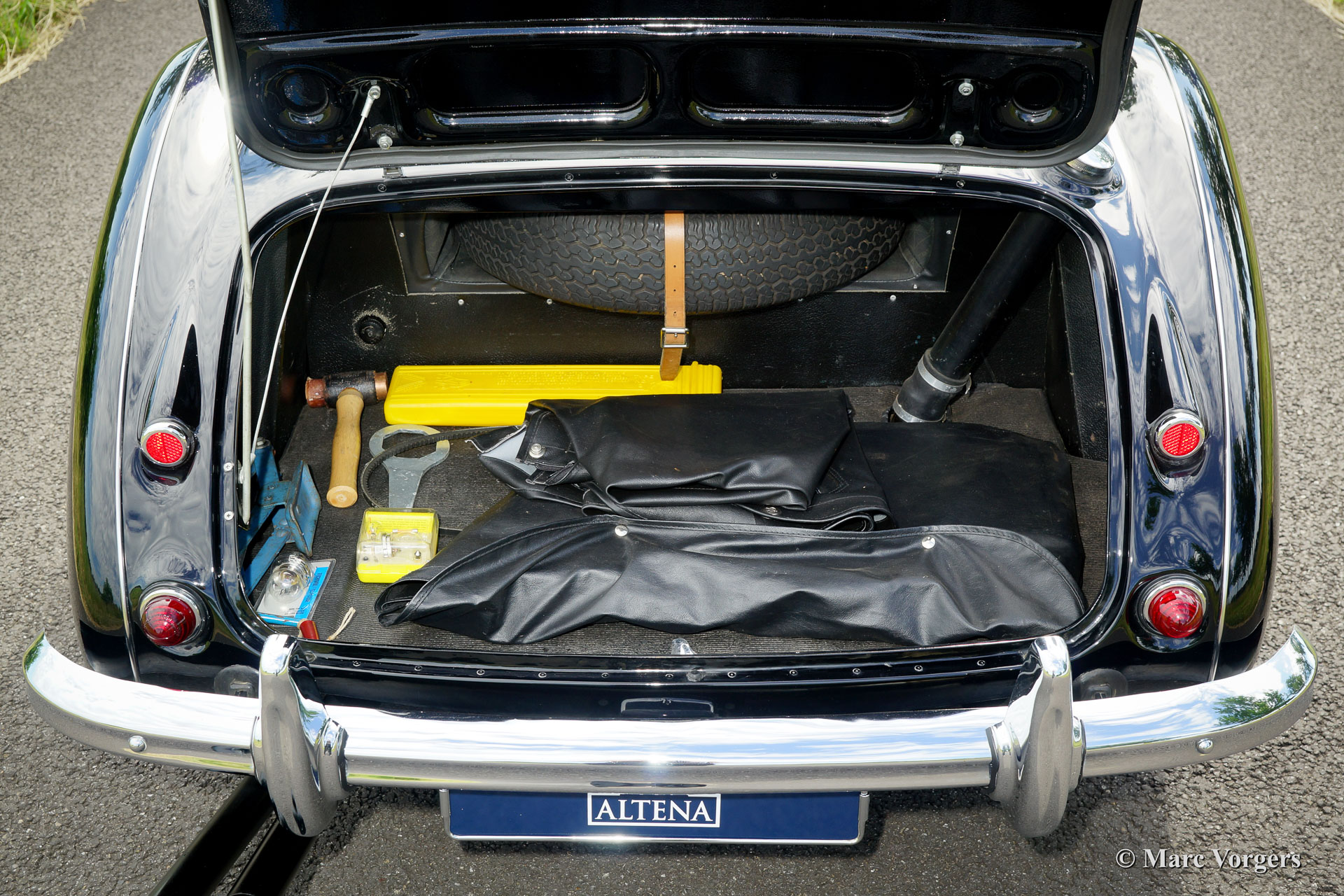 The former Healey models were more Spartan and featured fully detachable soft tops with separate side screens which could be stowed away in the booth.