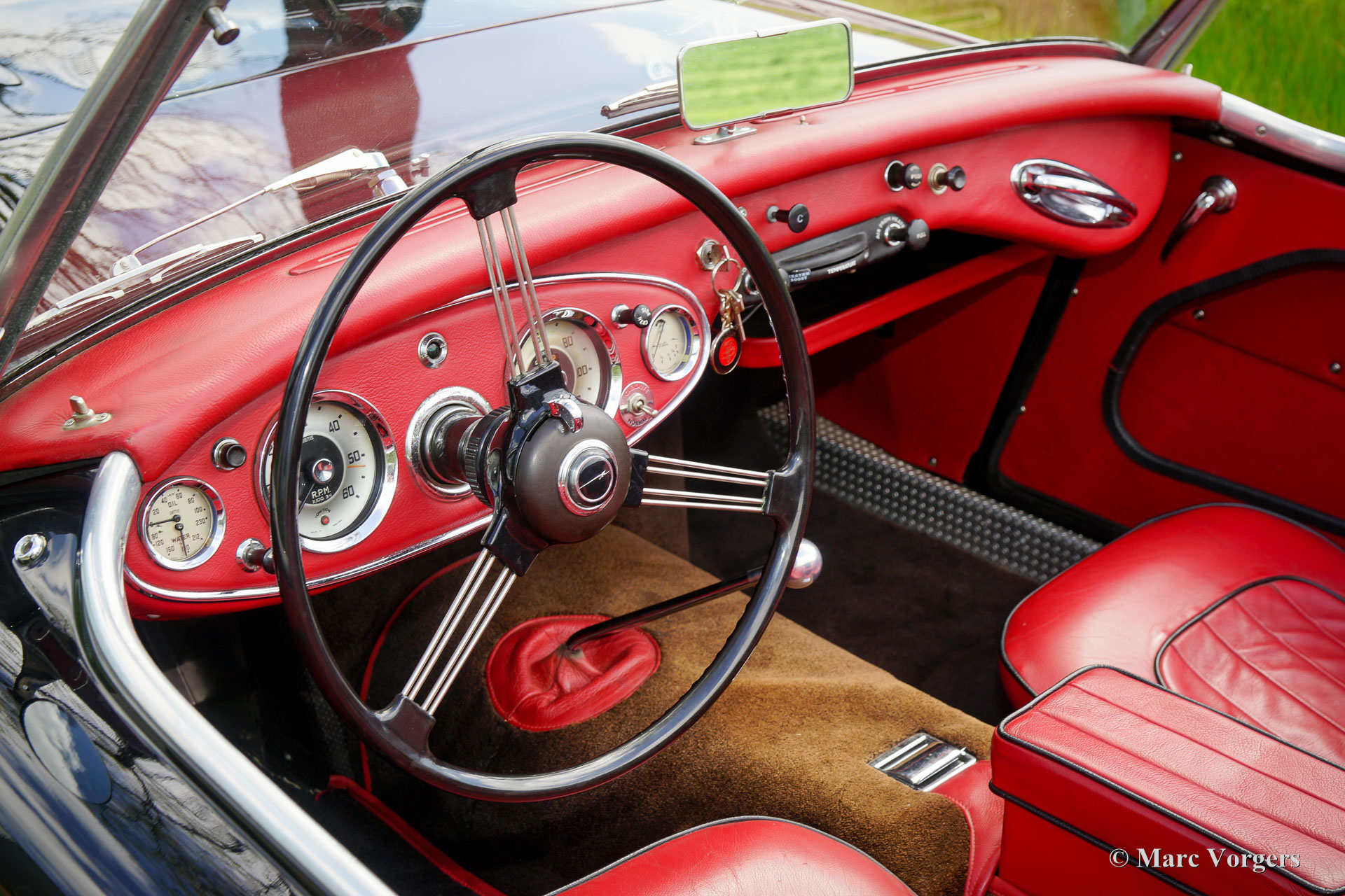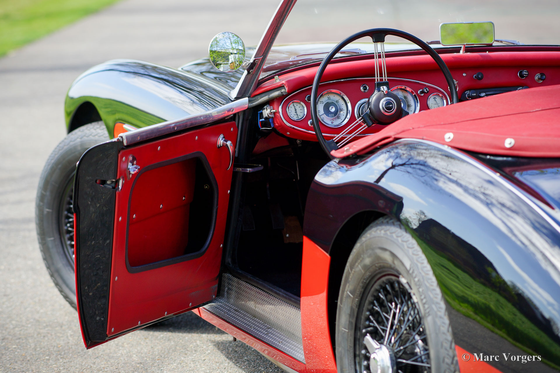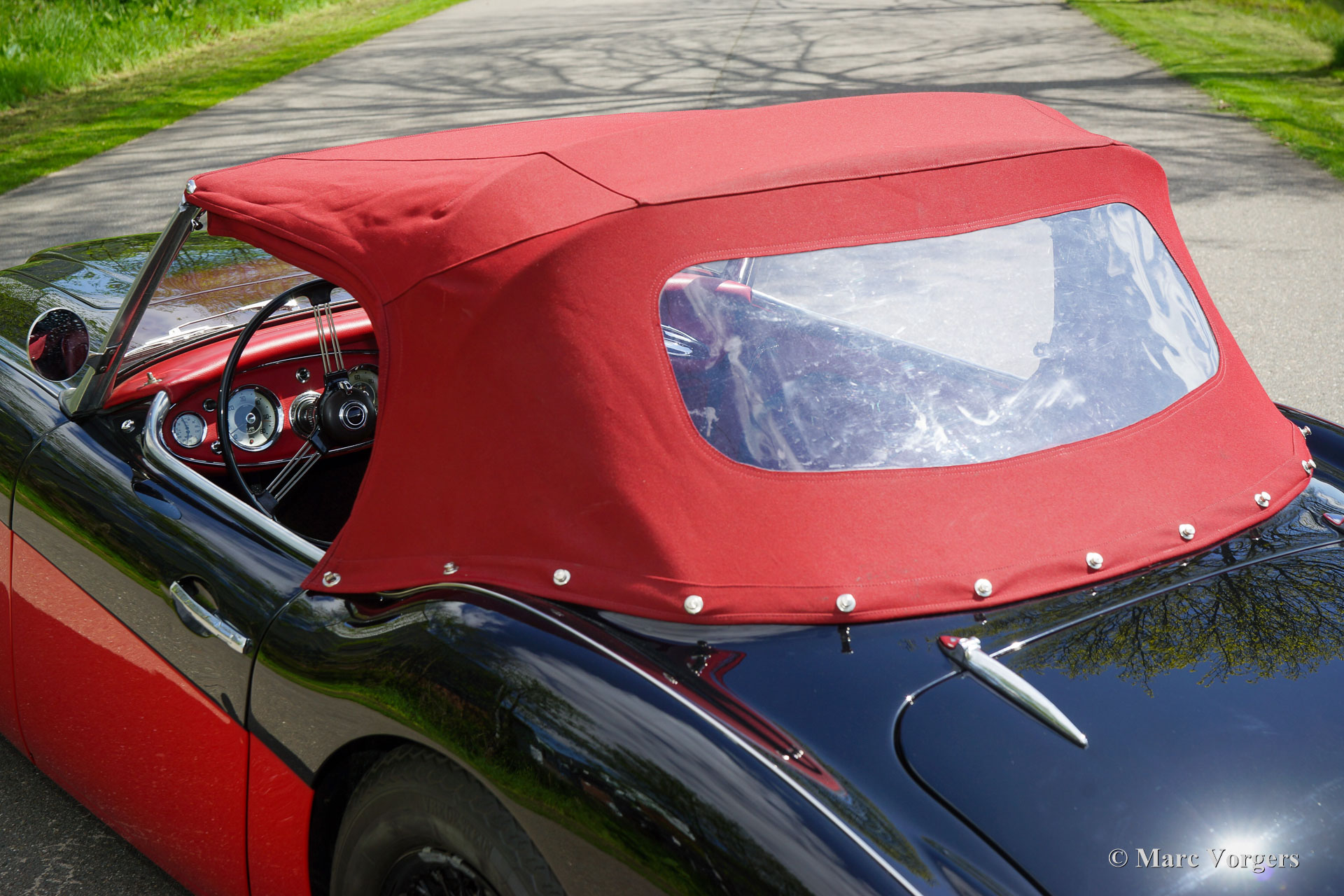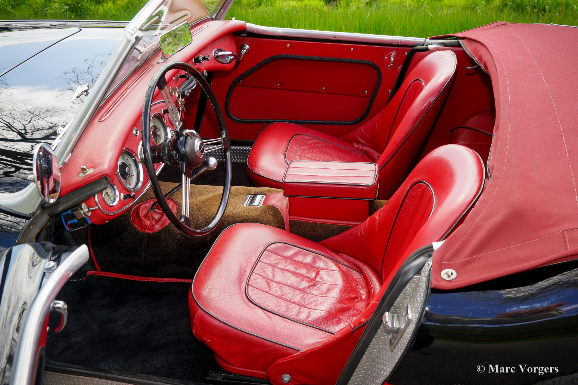 The former Healey models were more Spartan and featured fully detachable soft tops with separate side screens which could be stowed away in the booth.