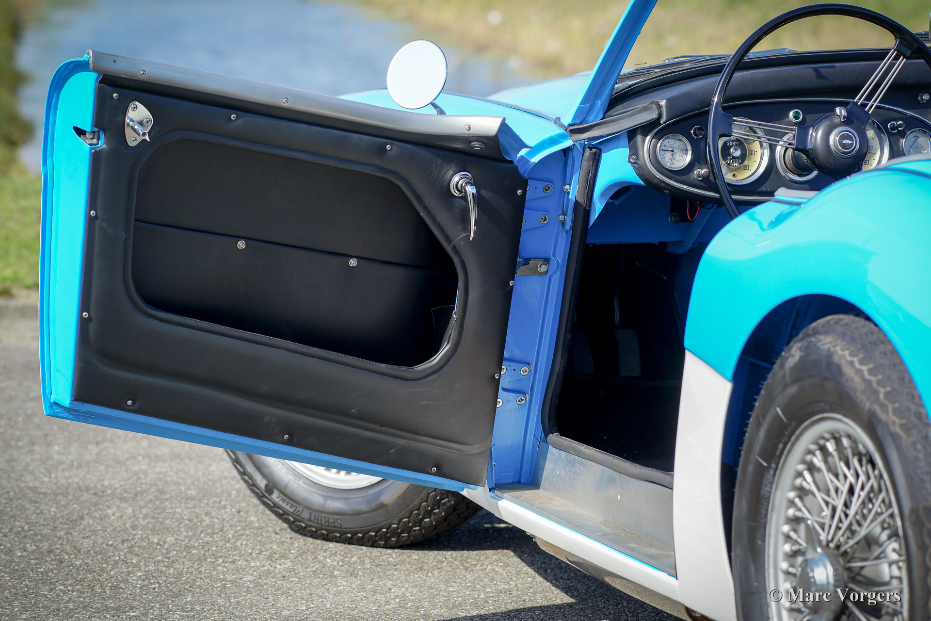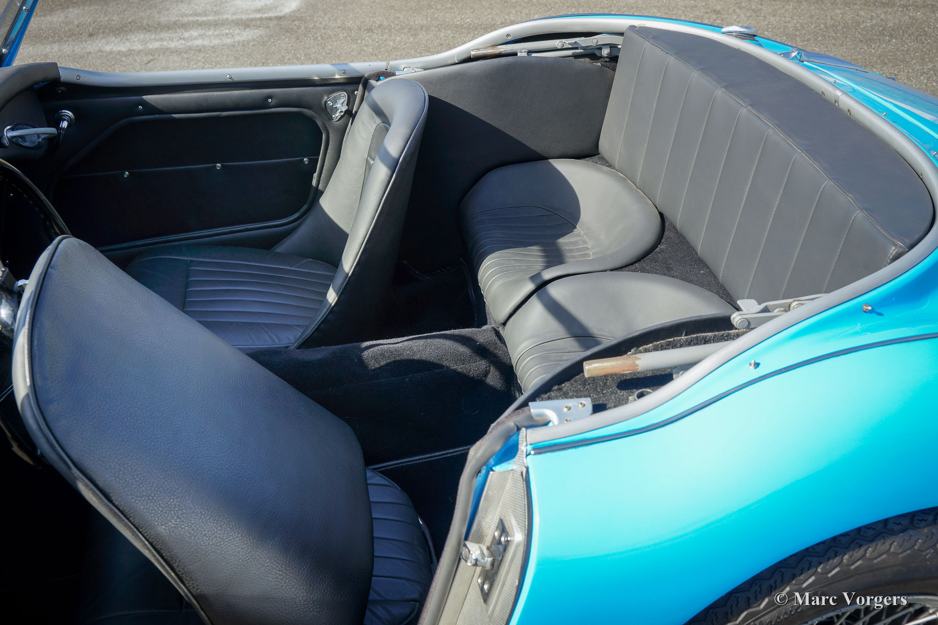 The former Healey models were more Spartan and featured fully detachable soft tops with separate side screens which could be stowed away in the booth.