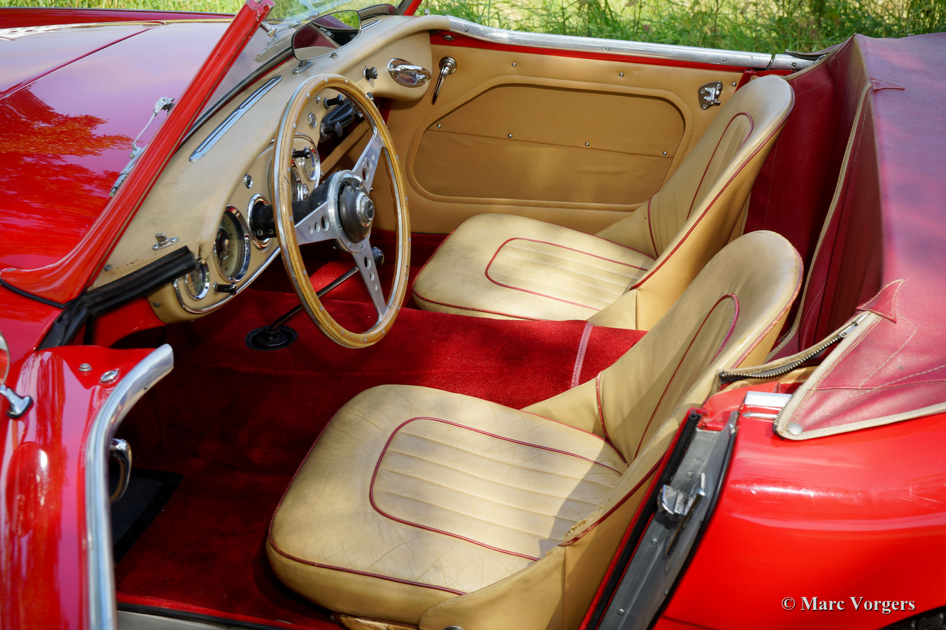 The former Healey models were more Spartan and featured fully detachable soft tops with separate side screens which could be stowed away in the booth.