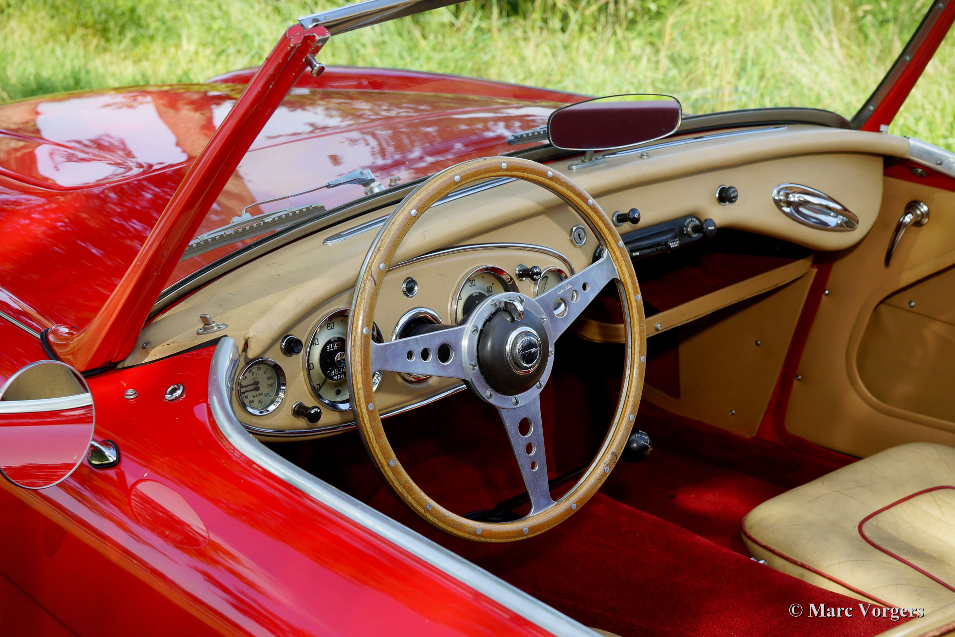 Healey Motor Corporation was going to show their new Healey 100 at the "Earls Court Motor Show"of 1952. Austin Motor Company discovered the beautiful car on the Healey stand before the show opened. Austin Motor Company desperately needed a sportscar to have an opponent for the MG sportscars and the brand new Triumph TR 2 and the Jaguar XK 120.