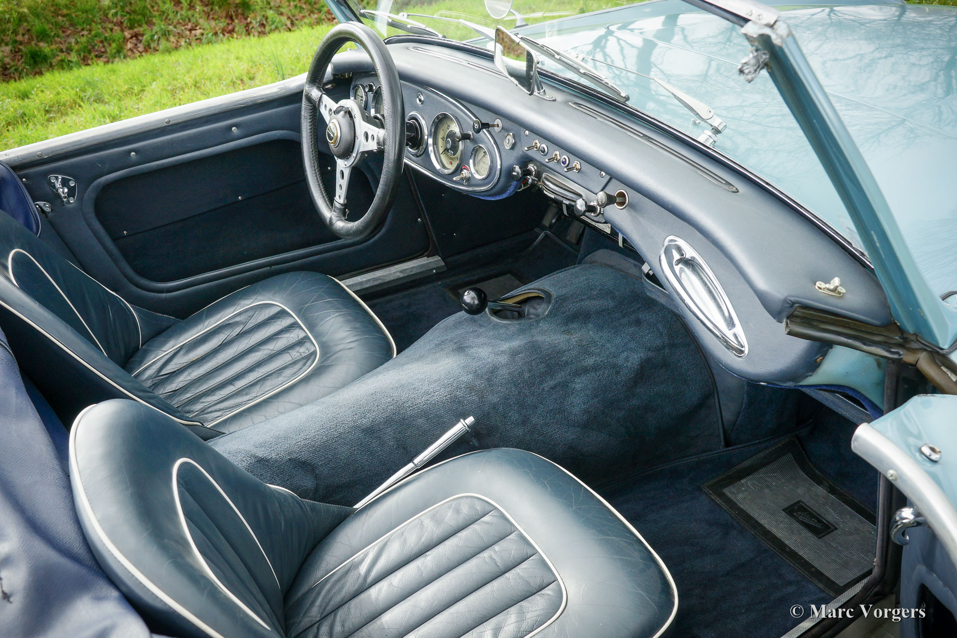 The former Healey models were more Spartan and featured fully detachable soft tops with separate side screens which could be stowed away in the booth.