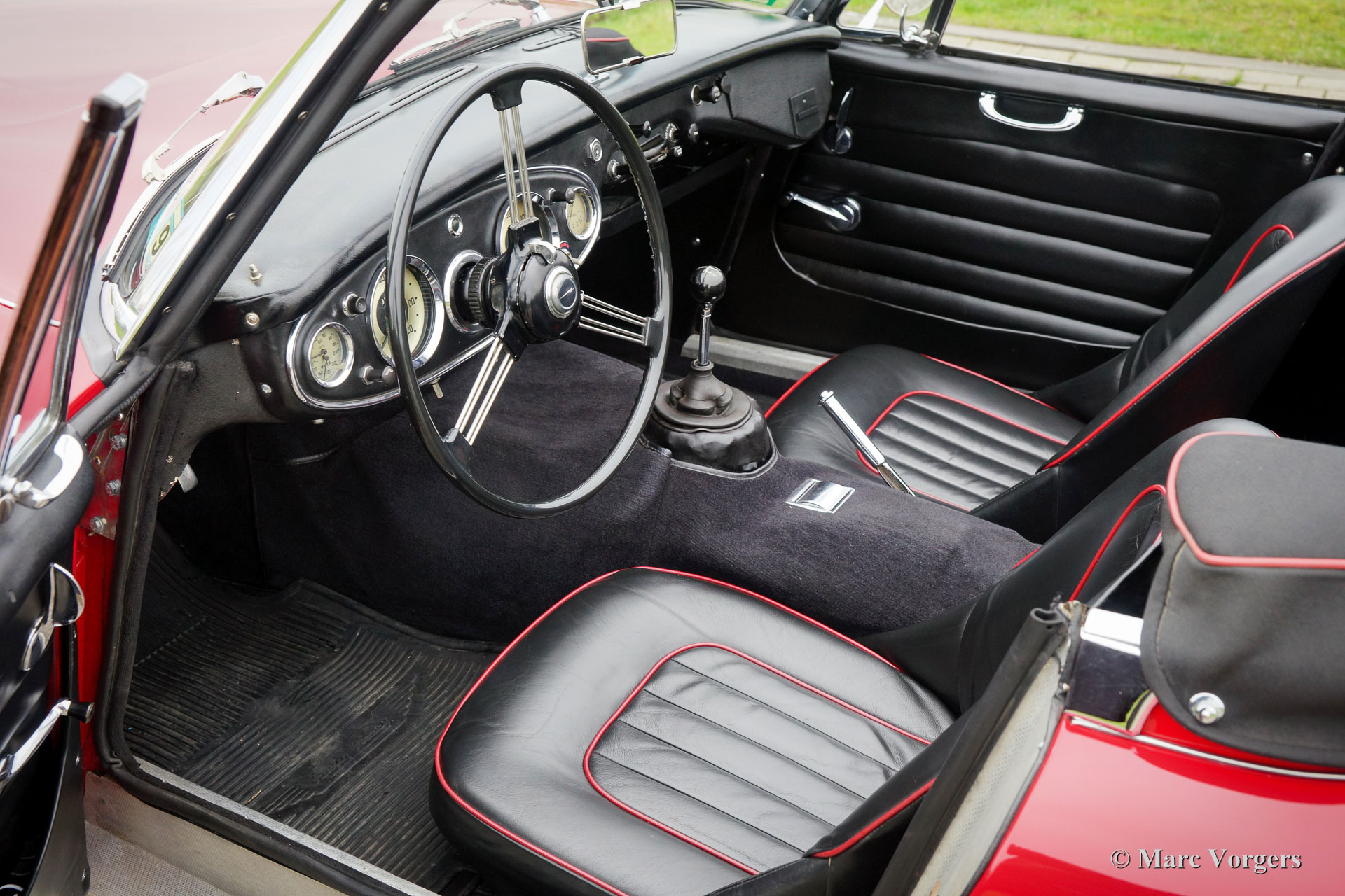 The former Healey models were more Spartan and featured fully detachable soft tops with separate side screens which could be stowed away in the booth.