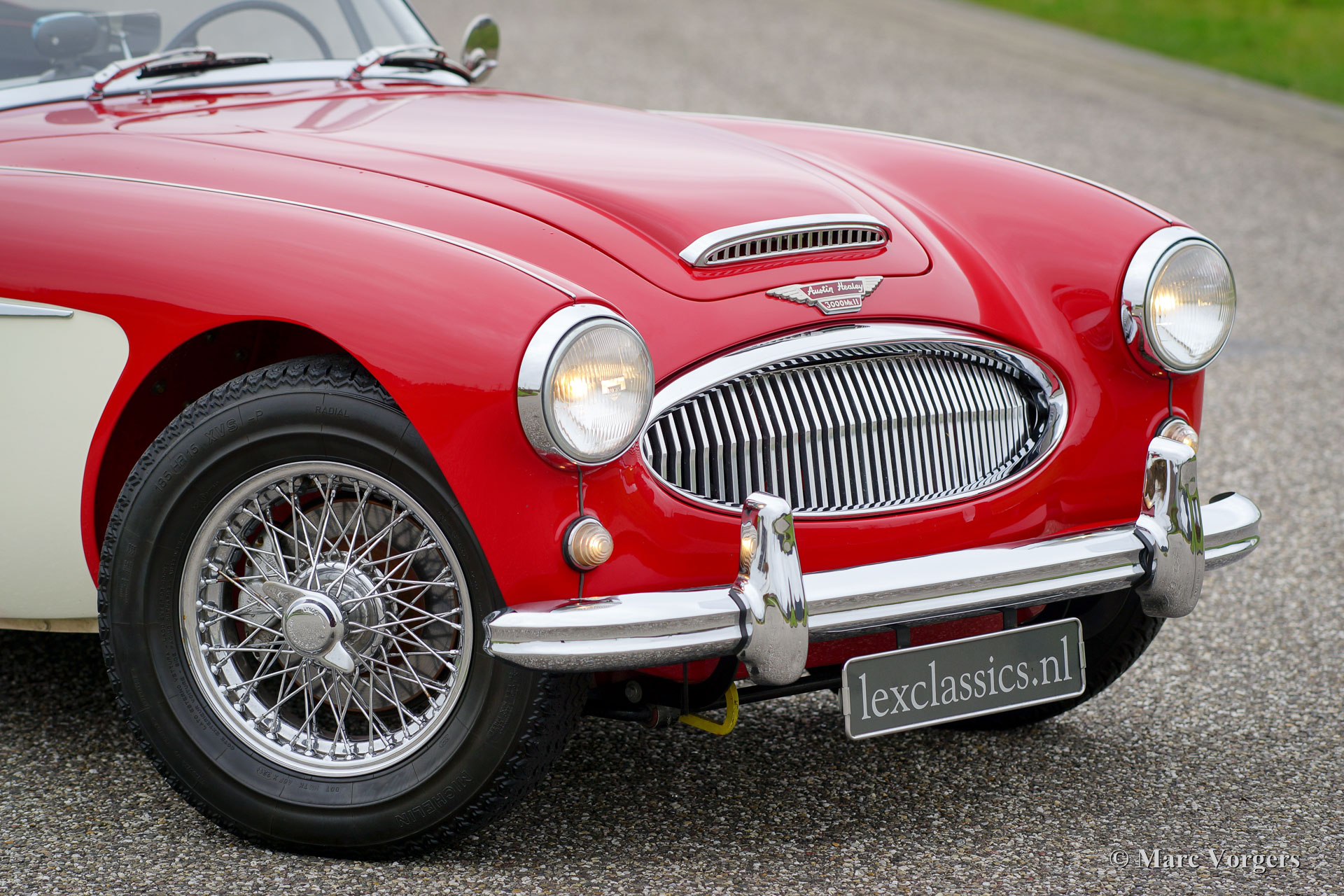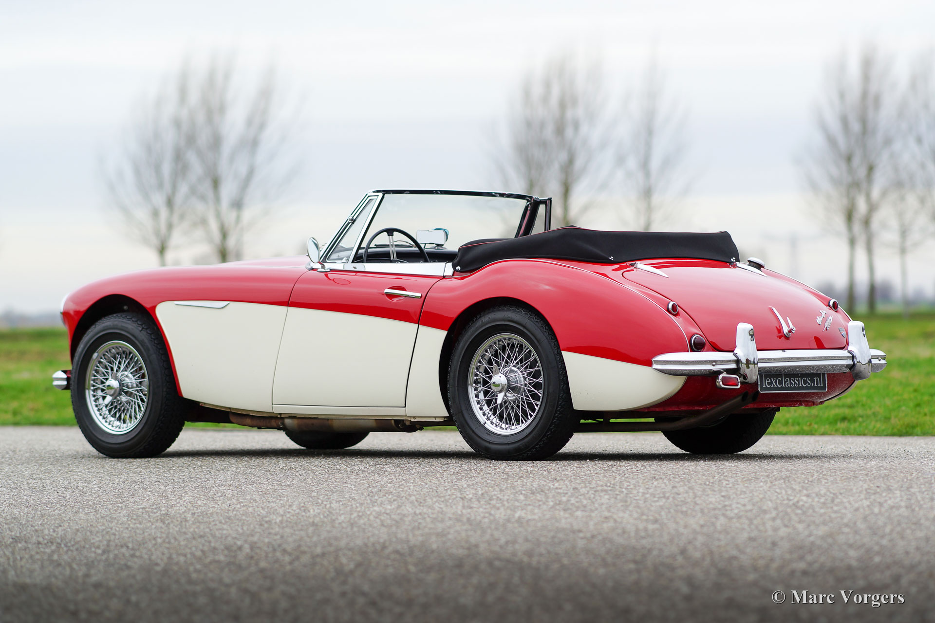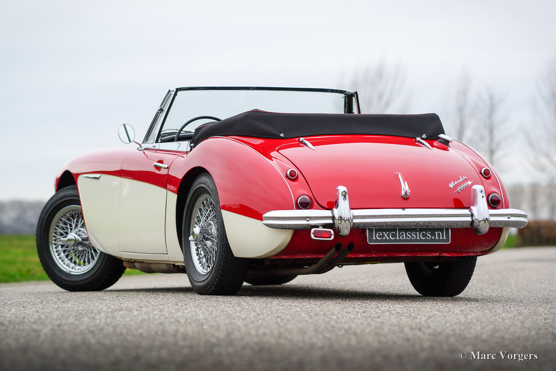 Austin Healey 3000 Mk IIa (convertible), Jahr 1963. Fahrgestellnummer HBJ7L207XX. Farbe Rot über Crème weiß mit einem schwarzen Leder Interieur getrimmt mit roten Paspeln. Schwarzes Verdeck und Verdeck Abdeckung. Dieser herrliche Austin Healey ist in einem hervorragenden Zustand und das Auto fährt perfekt! Das Auto wurde in den Werkstätten von Lex Classics in den letzten Jahren gewartet und gepflegt. Das Healey Mk IIa ‘convertible‘ ist ein begehrtes Healey-Modell, das ausgestattet ist mit in die Türen absenkbare Seiten-Fenstern und das einfach zu bedienende Cabrio-Verdeck! Dieses schöne Automobil verfügt über Chrom-Draht-Räder, Chrom ‘Knock-off‘ Radmuttern, Overdrive, Kenlow Lüfter, Zweikreis-Bremssystem, zwei Außenspiegel, Tripmaster und ein Aluminium-Ventildeckel. Dies ist eine wunderbare und perfekt fahrende 'Big Healey'!