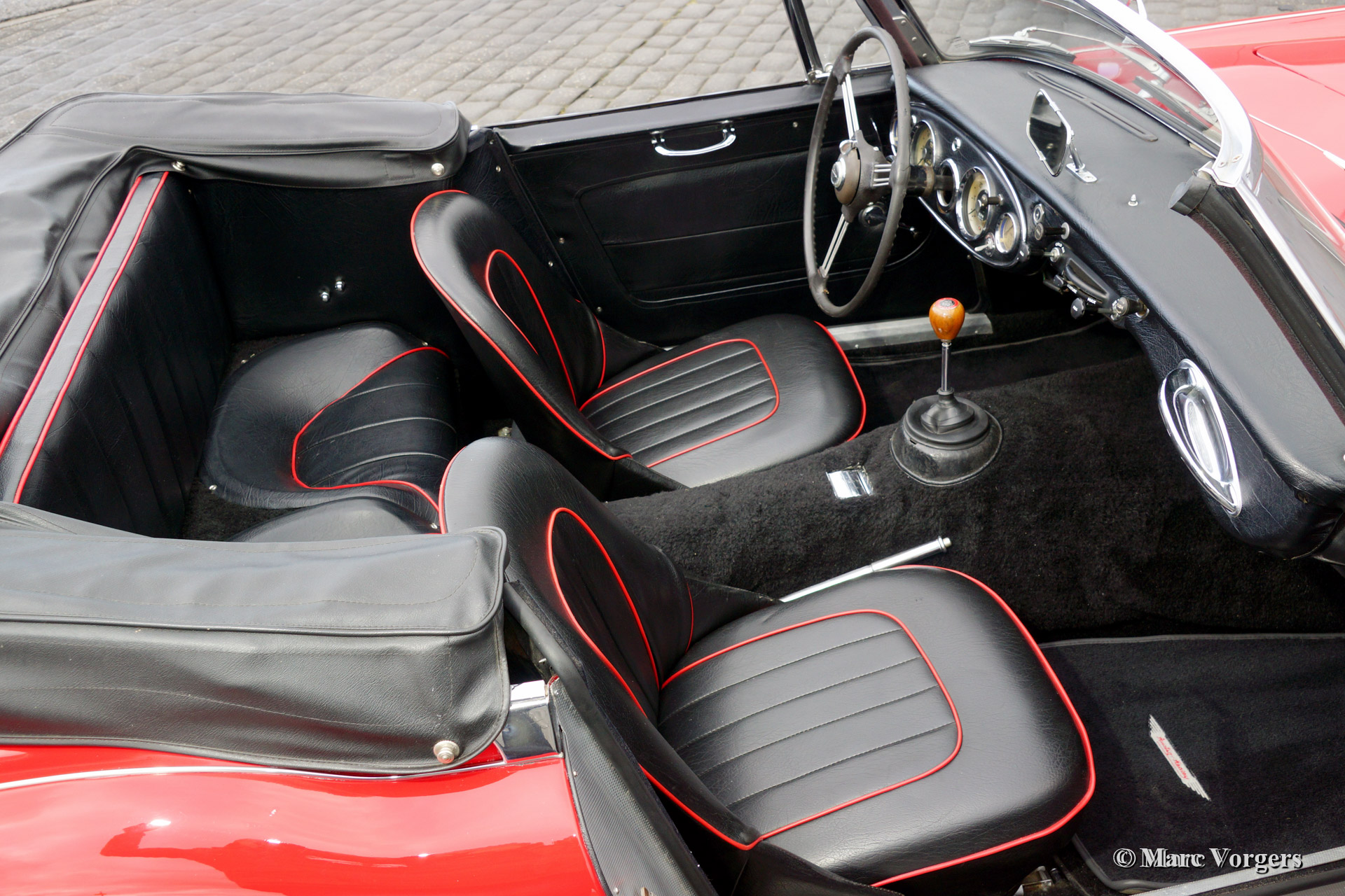 The former Healey models were more Spartan and featured fully detachable soft tops with separate side screens which could be stowed away in the booth.