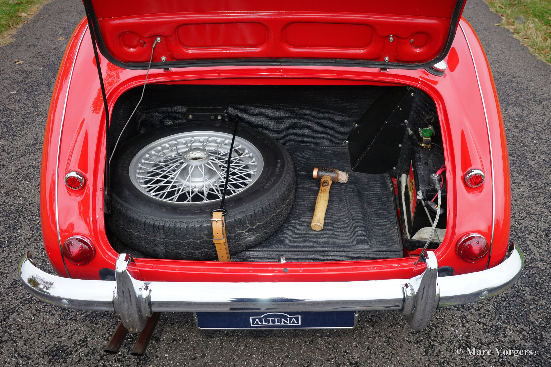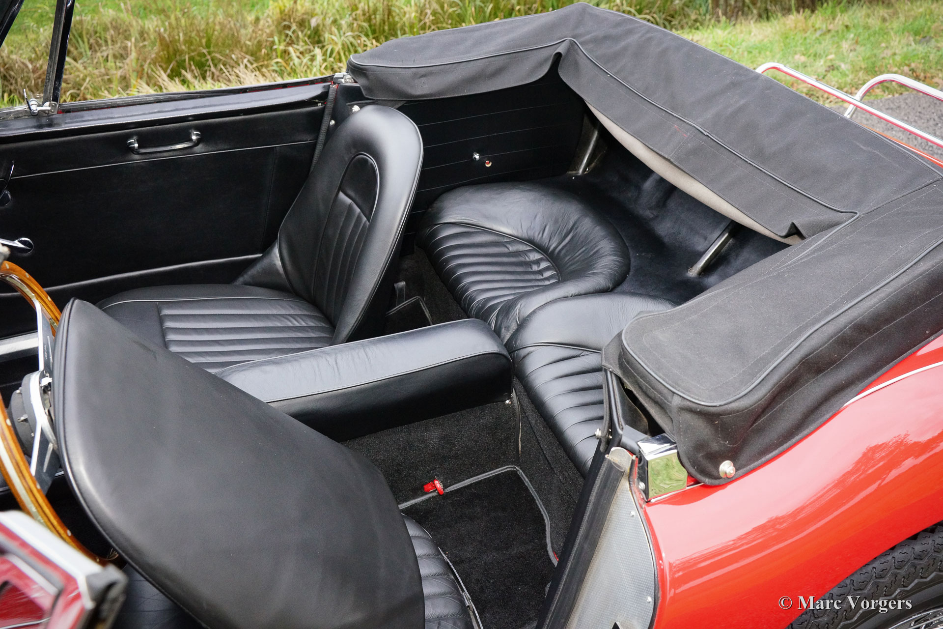 The former Healey models were more Spartan and featured fully detachable soft tops with separate side screens which could be stowed away in the booth.