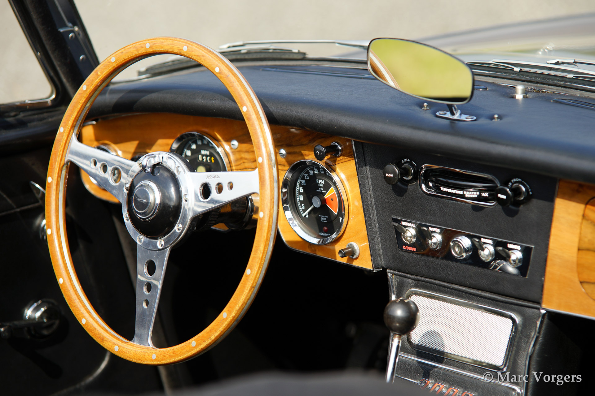 In October 1963 the Austin Healey 3000 MK III was introduced. The MK III was just like the MK IIa only available as 2+2 convertible model. The engine was fitted with a new camshaft and other valve coilsprings. Additionally two larger 2 inch S.U. HD-8 carburettors were fitted. Other changes were applicable to the interior, the dashboard was redesigned entirely and a center console was added. The back rest of the rear seats could be folded forward to be used as a floor to pack luggage on. Another change was the deletion of the "start button", the 3000 MK III fired up only using the starter key.