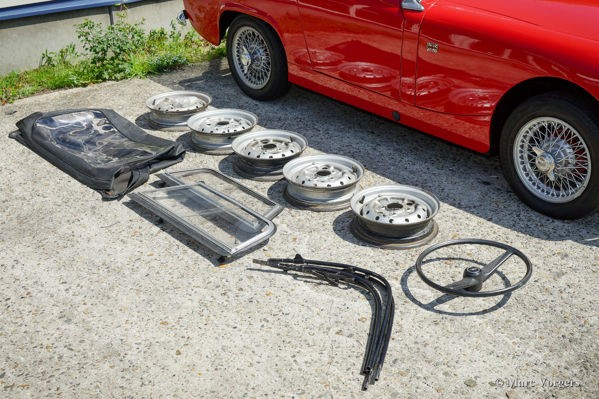 The former Healey models were more Spartan and featured fully detachable soft tops with separate side screens which could be stowed away in the booth.