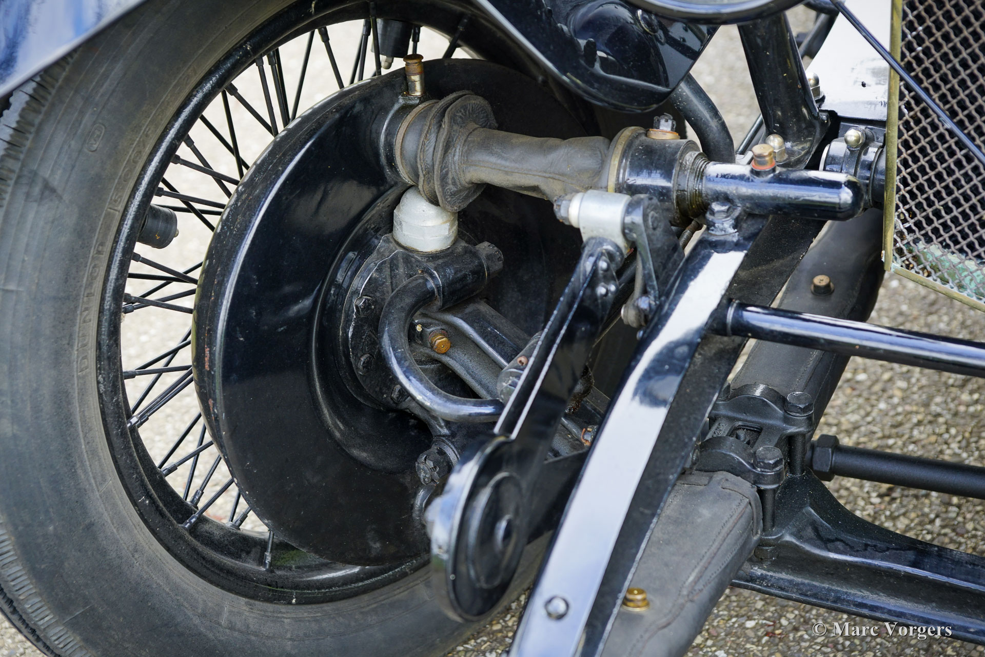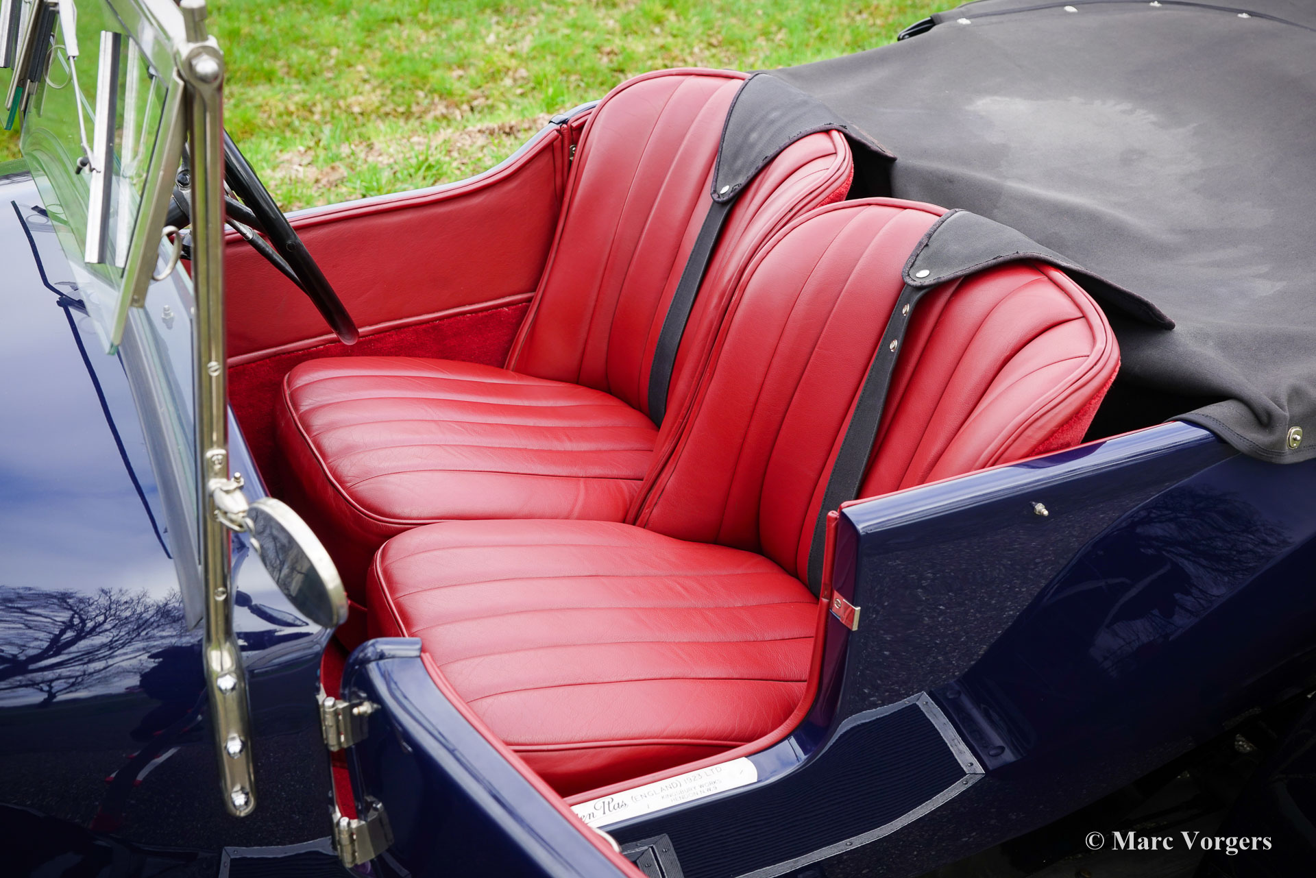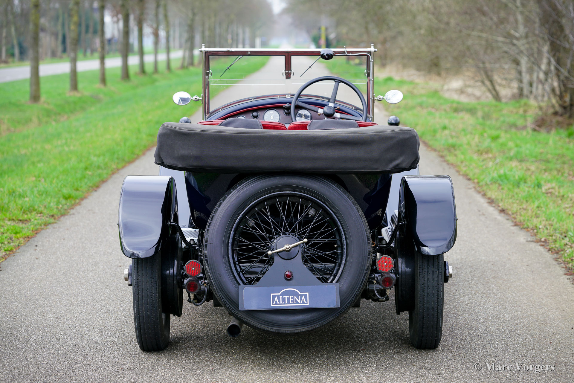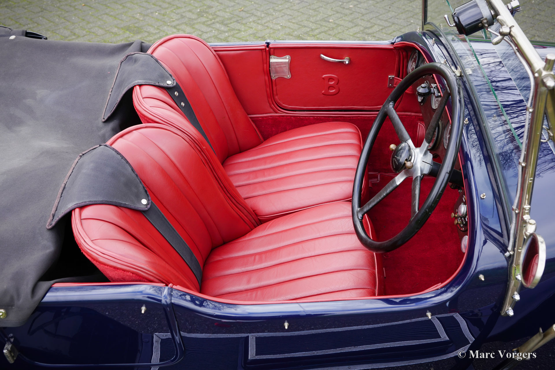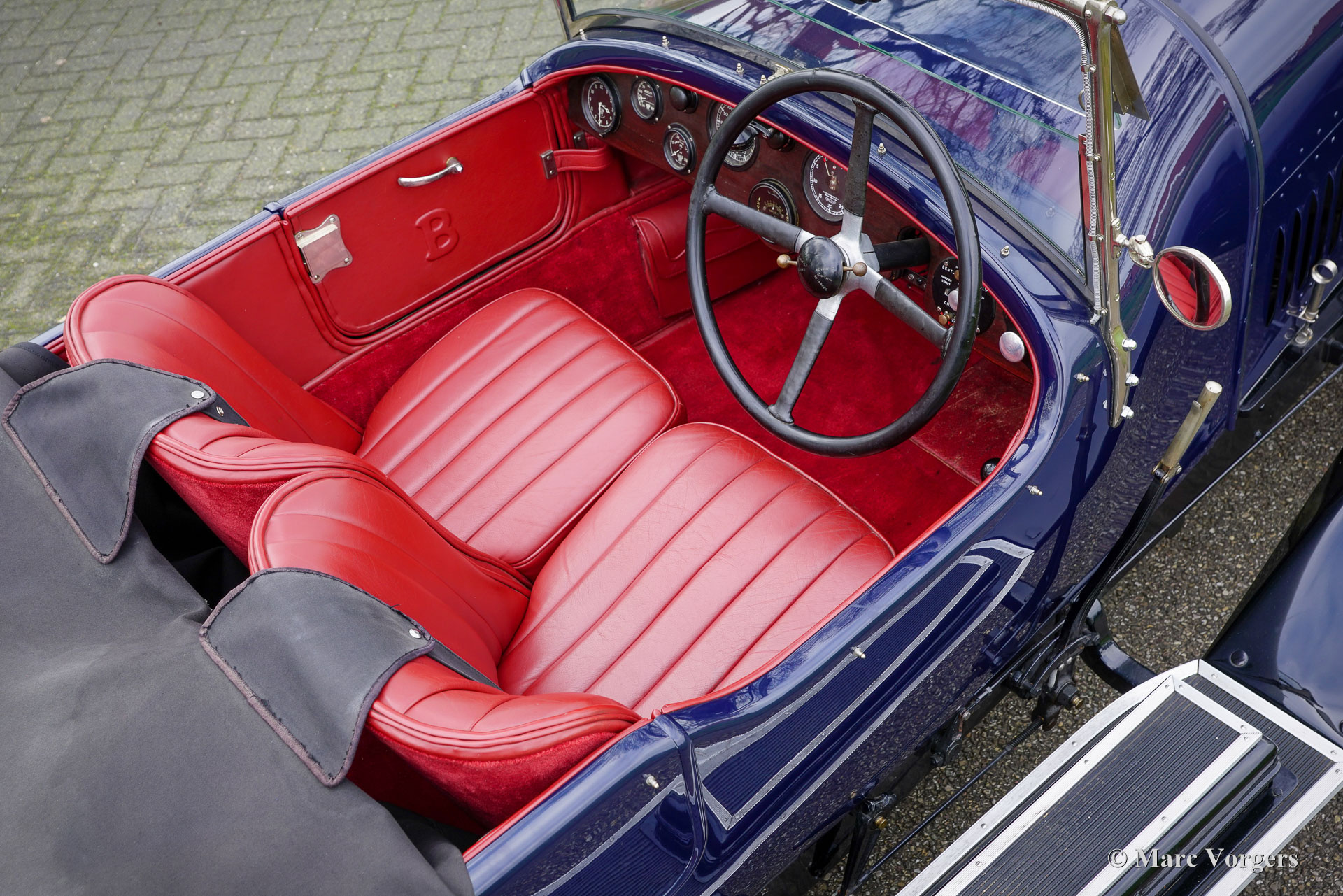 Bentley 3-Liter-Speed-Modell, Baujahr 1924. Farbe dunkelblau mit schwarzen Speichenrädern kombiniert mit einer roten Lederausstattung mit rotem Wollteppich. Schwarzes Verdeck, Verdeck Abdeckung und Persenning. Dieses originale Bentley 3-Liter ‚red badge‘ Speed-Modell mit kurzem Fahrgestell wurde im Vereinigten Königreich neu verkauft und war im Vergangenheit mit einer „Park Ward“-Karosserie ausgestattet. In späteren Jahren erhielt das Auto die aktuelle 4-Sitzer-Karosserie des offenen Tourers. Das Auto wurde von einem Bentley-Spezialisten mit Sinn für Originalität umfassend restauriert und überholt. Der Motor und alle mechanischen Teile wurden komplett überholt. Alle wichtigen Fahrgestell- und mechanischen Teile sind original ab Werk, die Nummern auf Fahrgestell, Motor, Getriebe, Lenkgetriebe und Hinterachse stimmen mit diesem Auto überein, wie es das Bentley Werk im Jahr 1924 verließ! Das Auto weist viele wundervolle Originaldetails auf, wie die bemerkenswerten Sloper-Vergaser und die mit Bentley gekennzeichneten Armaturenbrettinstrumente. Die gesamte Geschichte ist bekannt und dokumentiert, außerdem liegt ein Fotobericht der umfangreichen Restaurierung vor. Dieses Bentley 3-Litre Speed-Modell wird im Buch „Bentley The Vintage Years“ erwähnt, einem Standardwerk über Bentley von Clare Hay. Dieser herrliche Bentley 3-Liter ist in einem wunderbaren und sehr guten Zustand. Das Automobil atmet die Qualität von W.O. Bentley die er sich vorgestellt hat als er seinen „3-Liter“ entwickelte; „Ein schnelles Auto, ein gutes Auto, das Beste seiner Klasse.“ Der 3-Liter-Motor verfügte als eines der erste in der Welt über vier Ventilen pro Zylinder, Trockensumpfschmierung und einer obenliegenden Nockenwelle. Das erste 3-Liter-Chassis wurde 1919 auf der London (Olympia) Motor Show gezeigt und 1921 erstmals an Kunden ausgeliefert. Zwischen der Show und 1921 war viel Arbeit nötig, um die Verfeinerung zu verbessern. Als W.O. schrieb später: „Ich hasse Lärm um des Lärms willen. 70 Meilen pro Stunde in der Stille sind weitaus mehr lobenswert als laute 80 Meilen pro Stunde.“ Der 3-Liter wurde von der Automobilpresse sehr gut aufgenommen. Sammy Davis von Autocar schrieb: „Für den Mann, der ein wirklich sportliches, leichtes Auto für den Einsatz auf einer Kontinentaltour sucht – wo Geschwindigkeitsbegrenzungen nicht eingehalten werden dürfen – ist der 3-Liter-Bentley zweifellos das Auto schlechthin.“ ” Von Anfang an wurde der robuste und leistungsstarke 3-Liter-Bentley bei Wettbewerben und Rennen eingesetzt. Der 3-Liter gewann unzählige Rennen, unter anderem die legendären 24 Stunden von Le Mans in den Jahren 1924 und 1927. Ein Privatbesitzer (John Duff) stellte 1925 am Steuer eines Bentleys 3-Liter auch 21 Weltrekorde in 24 Stunden auf. Zwischen 1921 und 1929 wurden insgesamt 1622 Bentley 3-Liter-Modelle hergestellt. Dieses Bentley 3-Liter-Modell ist ein großartiges Produkt dieser abenteuerlichen frühen Bentley Motors-Periode. Ein wunderbares Sammlerstück und eine Traummaschine für Oldtimer-Bentley-Fahrer und Bentley-Enthusiasten.