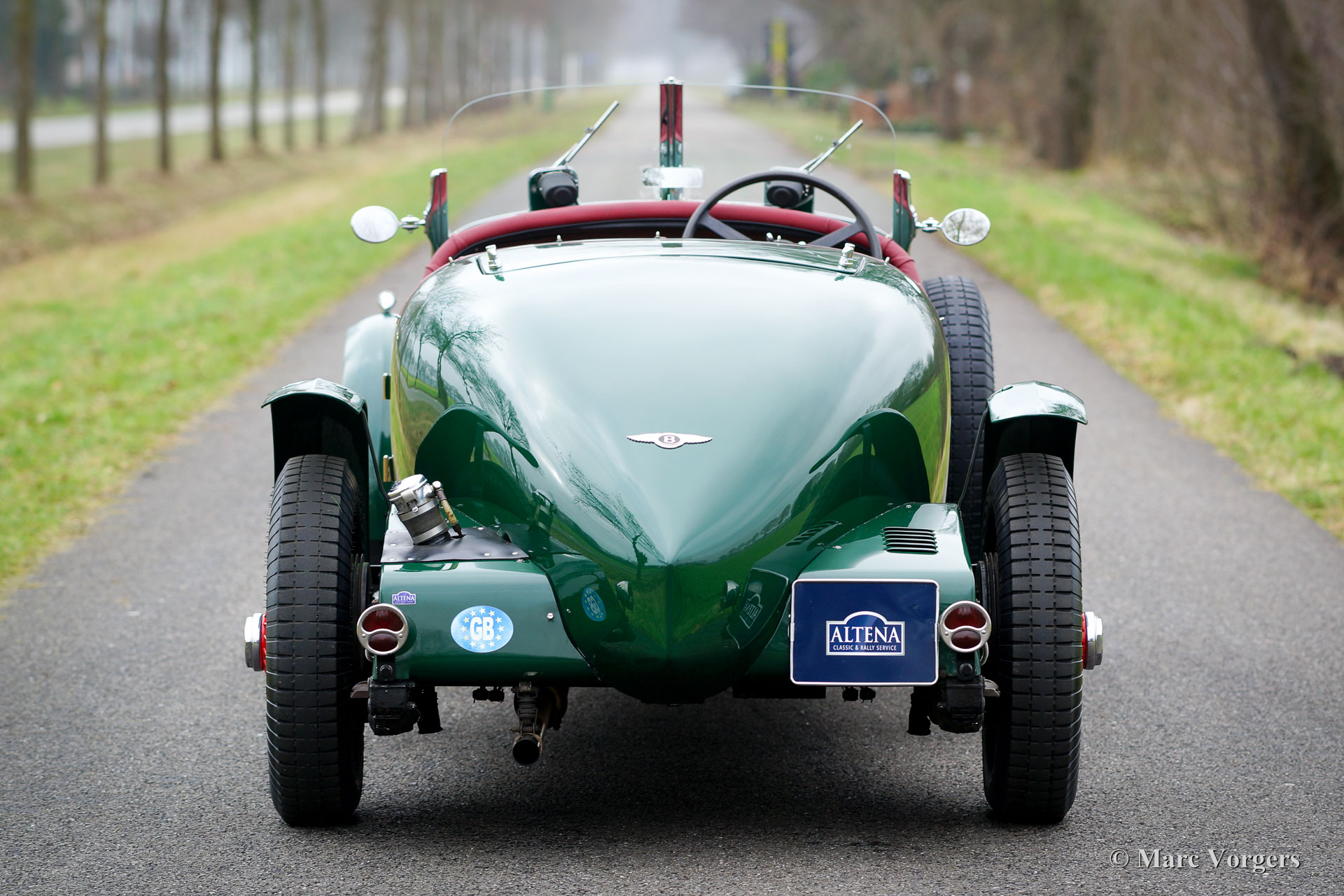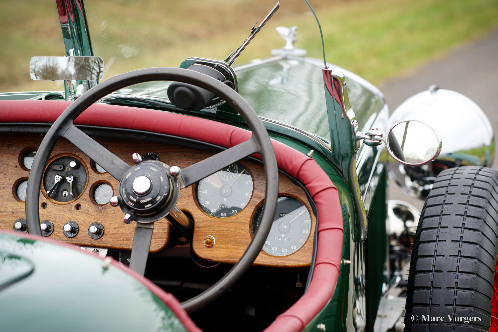 The Bentley 3 Litre was W.O. Bentley’s first design. The car was presented in 1919 but the first cars were sold in 1921. The four cylinder cars of rugged construction where in a class of their own for they combined the size and comfort of the big tourers and saloons with the road holding, and speed of the smaller sports- and racing cars. The Bentley was a true owner-driver car for the sporting motorist and connoisseur. The Bentley car could be had in three different types which were designated with three different radiator badges*. Red badge: short chassis speed model, Blue badge: the early short and then long chassis type for bespoke bodywork, Green badge: very rare and used for about eighteen 100 mph. These Green badge car won at Le Mans in 1924 and 1927 (Old Number Seven.) The 3-Litre was built from 1919 until 1929.