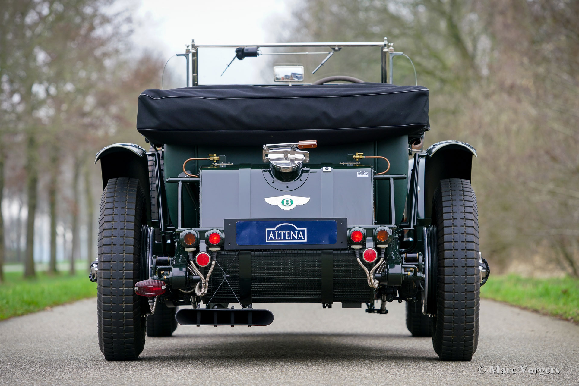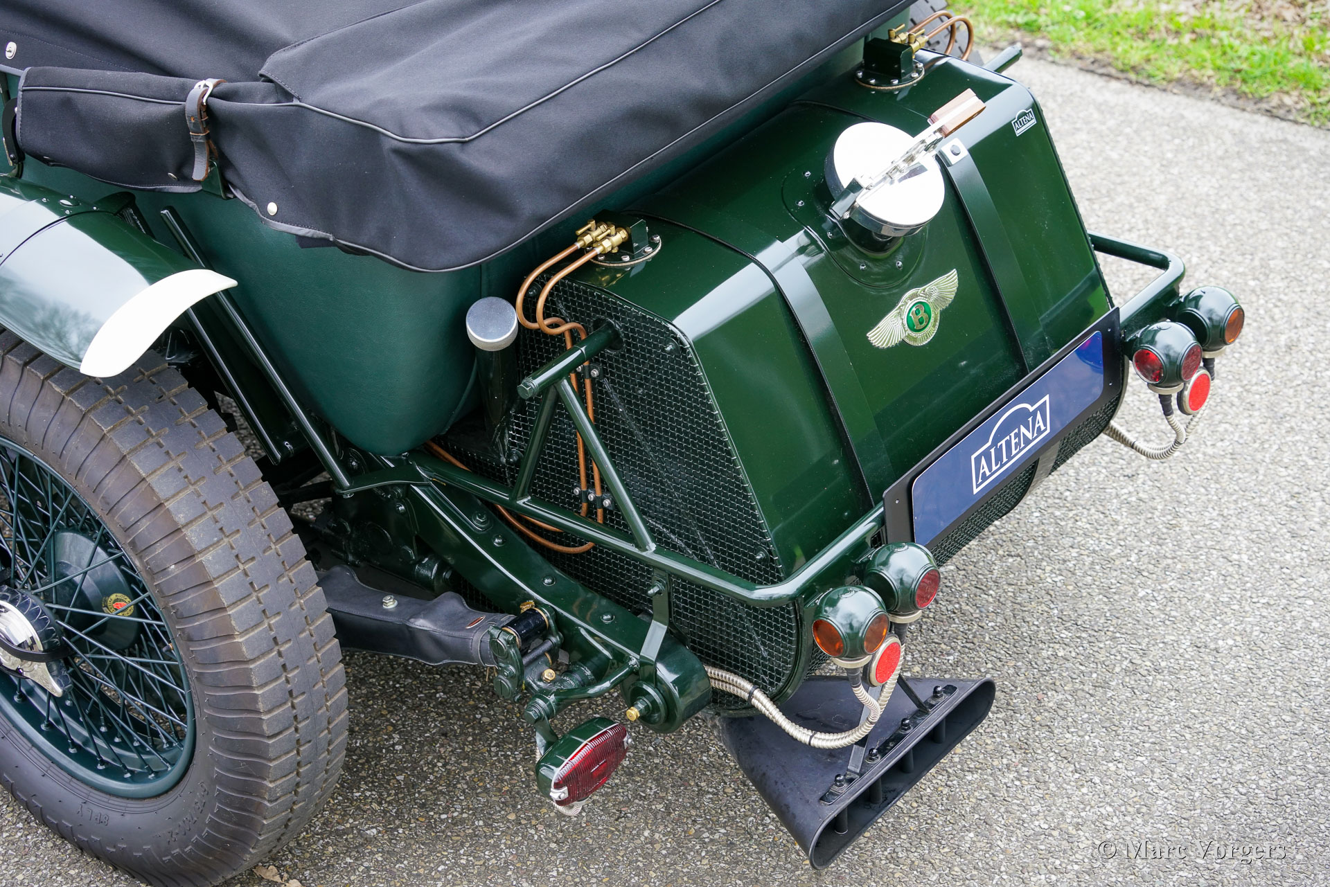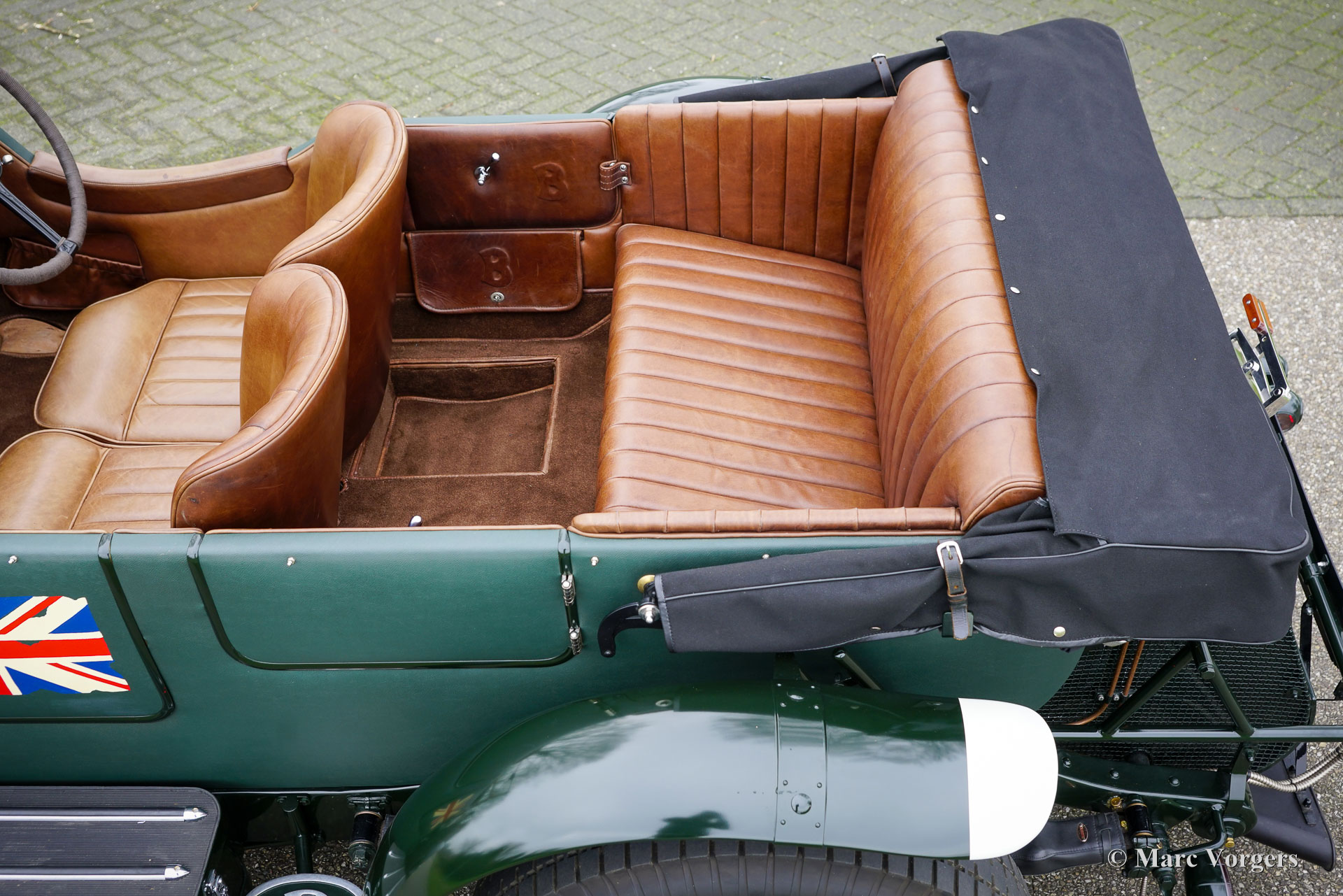 The Bentley 3 Litre was W.O. Bentley’s first design. The car was presented in 1919 but the first cars were sold in 1921. The four cylinder cars of rugged construction where in a class of their own for they combined the size and comfort of the big tourers and saloons with the road holding, and speed of the smaller sports- and racing cars. The Bentley was a true owner-driver car for the sporting motorist and connoisseur. The Bentley car could be had in three different types which were designated with three different radiator badges*. Red badge: short chassis speed model, Blue badge: the early short and then long chassis type for bespoke bodywork, Green badge: very rare and used for about eighteen 100 mph. These Green badge car won at Le Mans in 1924 and 1927 (Old Number Seven.) The 3-Litre was built from 1919 until 1929.