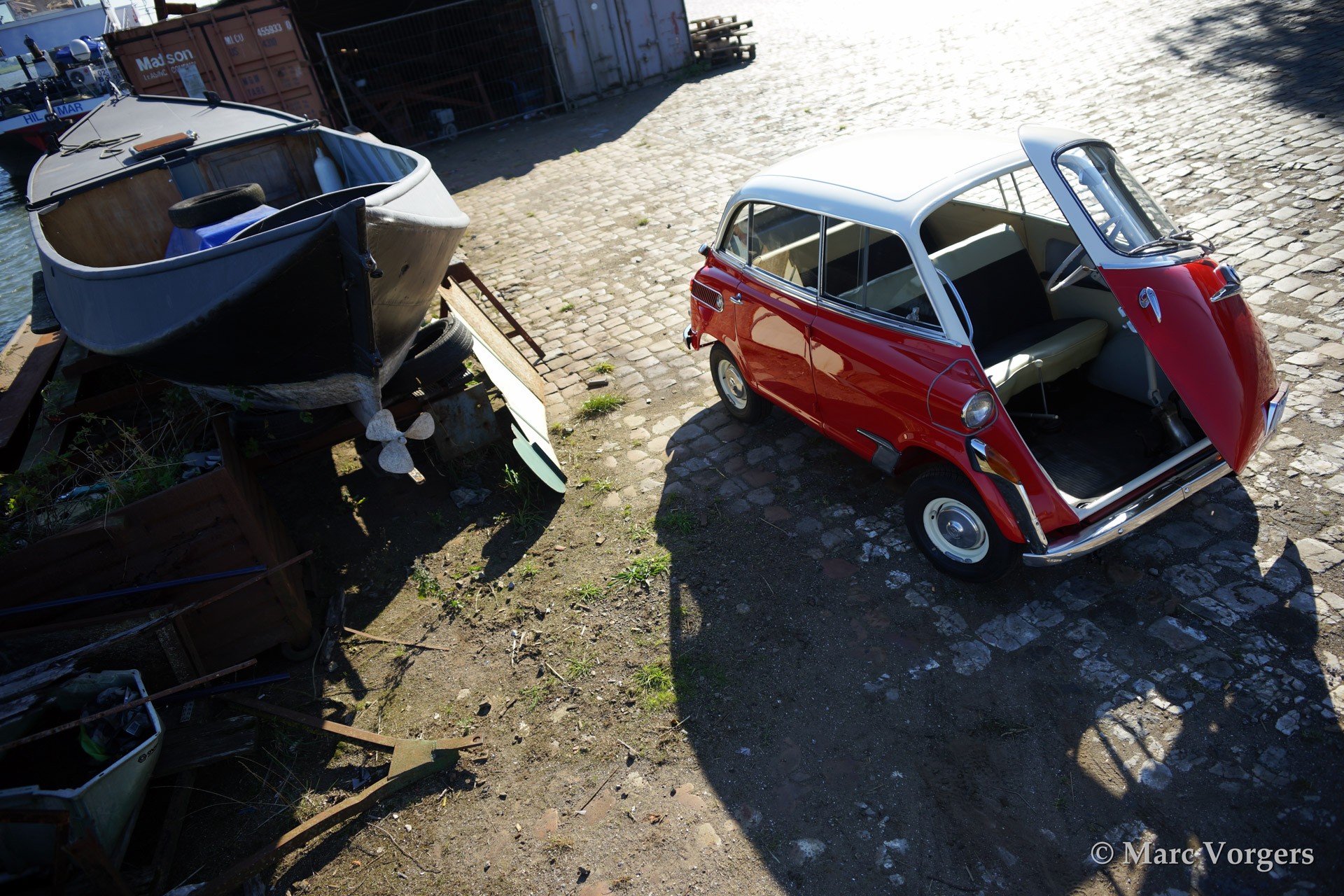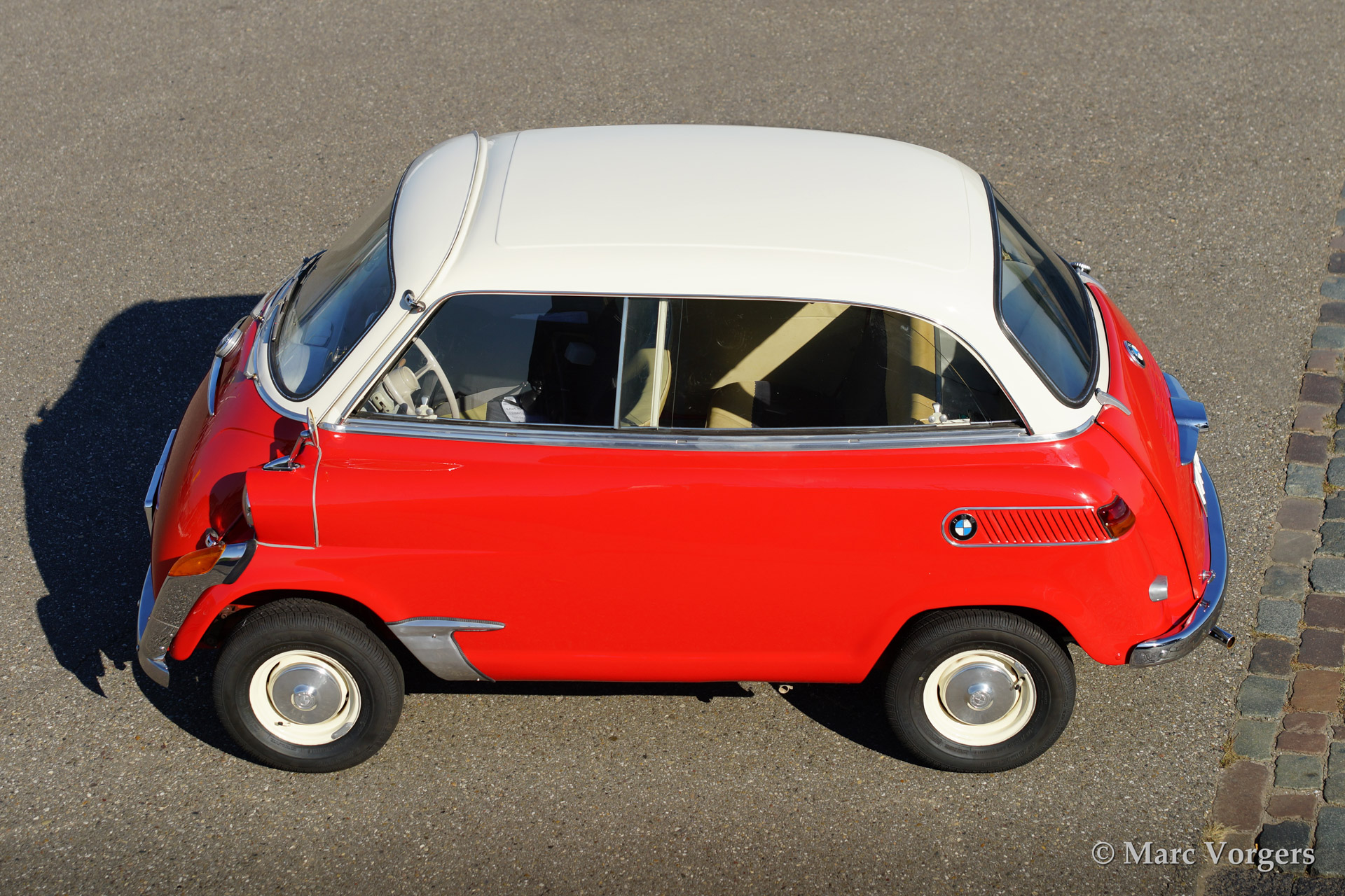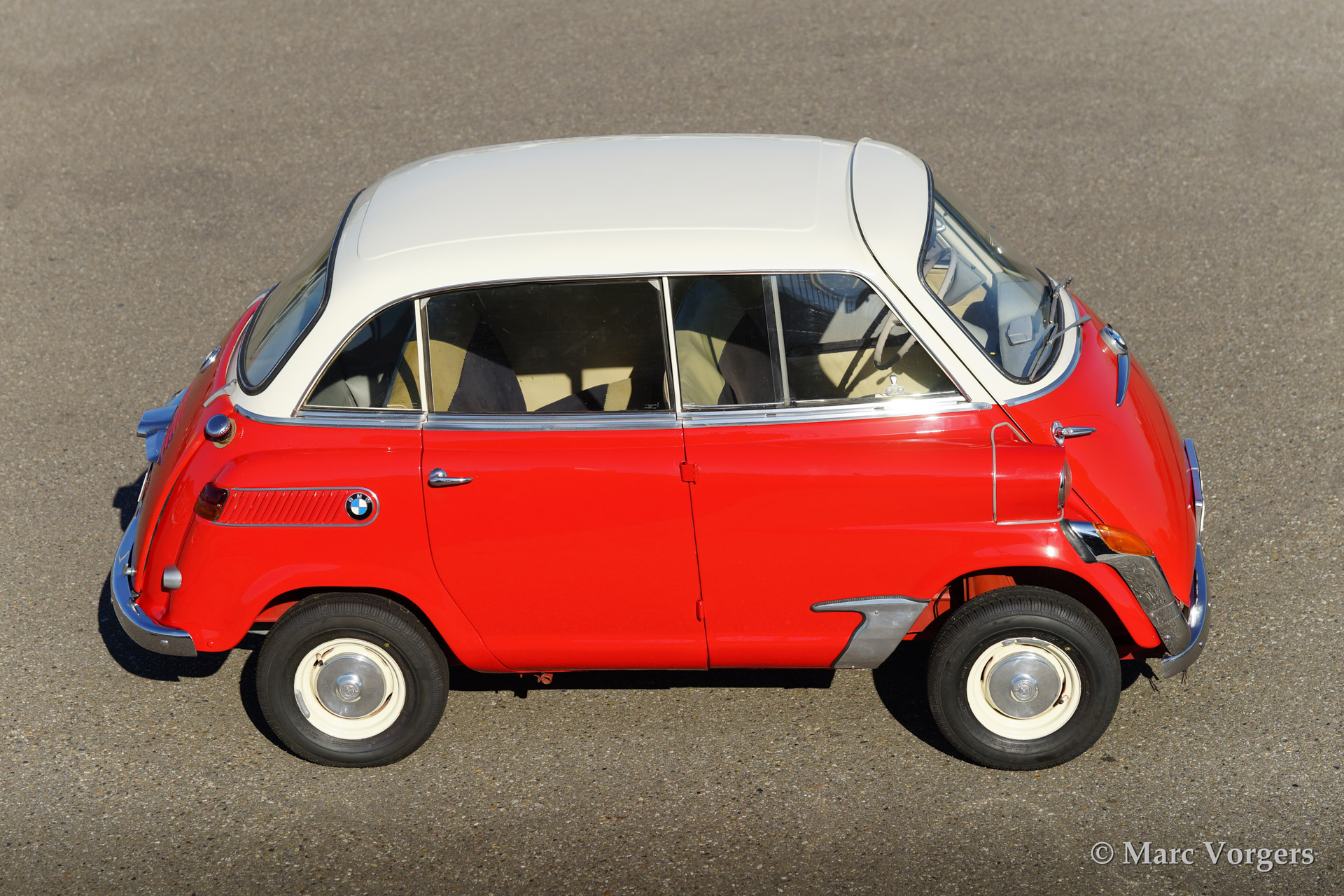BMW 600, year 1958. Colour red with a crème white roof top. Extensively restored and retaining all original details.