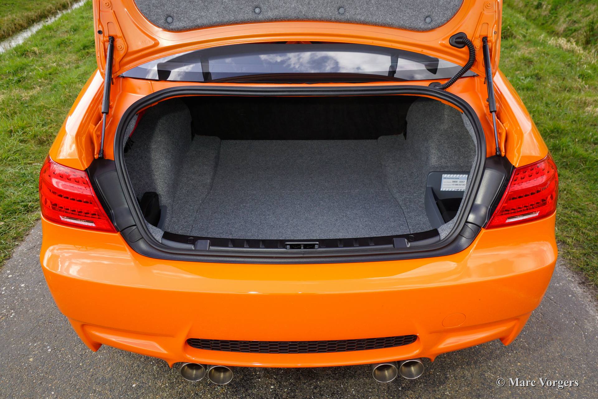 BMW M3 Coupe GTS, Jahr 2010. Farbe Feuerorange (Code 494/2) mit einer anthrazit schwarzen Innenausstattung. Nach BMW Individual Kundenspezifikation. Limitierten Auflage von 150 Autos. Das M3 GTS ist ein Super-Coupé versehen von einem 4,4-Liter-V8-Motor, der eine atemberaubende 450 PS bei 8300 Umdrehungen pro Minute liefert! Der Wagen beschleunigt von 0-100 km / h in 4,4 Sekunden und zieht dann weiter bis zu eine Höchstgeschwindigkeit von 305 km/ h! Der BMW M3 GTS ausgestattet mit einem 7-Gang M DCT Getriebe (Doppelkupplung.) Der M3 GTS wurde von BMW entwickelt als Rennwagen. Aus dieser Hinsicht wurde der M3 Coupé 155 kg erleichtert. Der Rücksitzbank, die Klimaanlage und das Audiosystem wurden ausgelassen. Dann wurden Recaro Schalensitze, 4-Punkt-Sicherheitsgurten und einer soliden Überrollkäfig montiert.