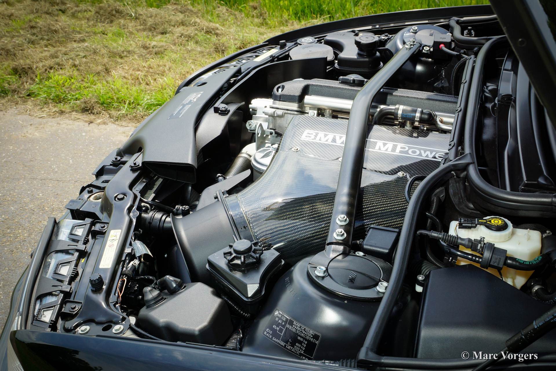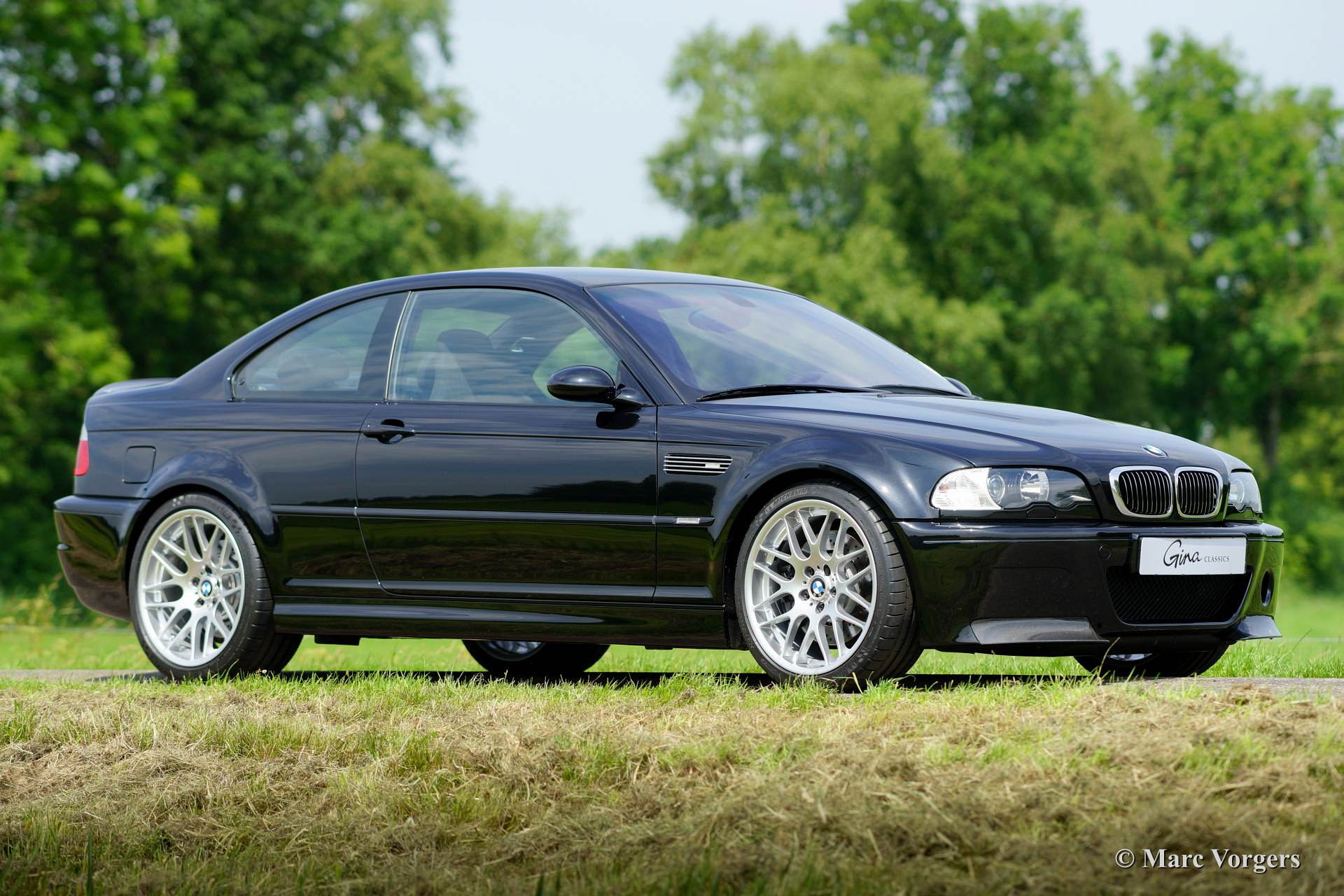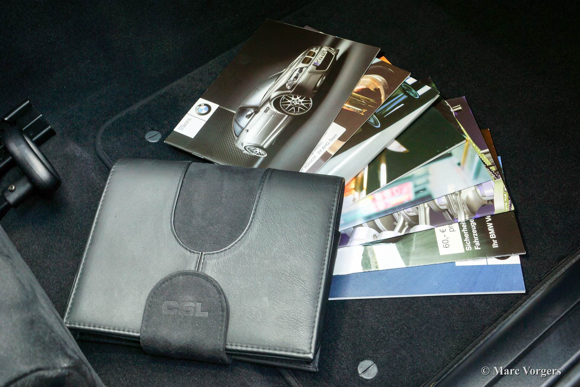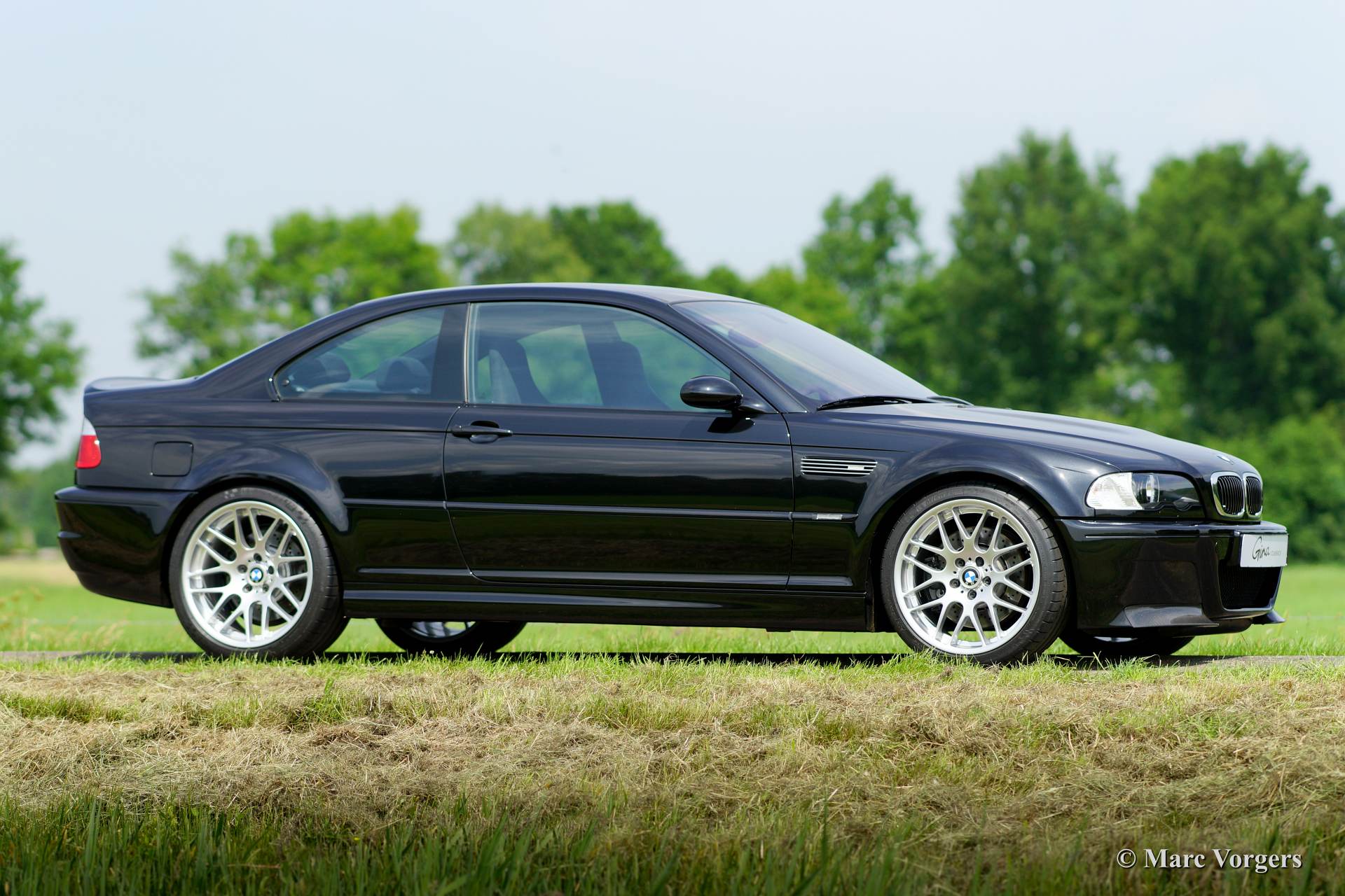 BMW M3 CSL, Jahr 2003. Farbe Saphir schwarz (Code 475) mit einem anthrazit / grau farbiges 'Amaretta Reflex' Innenraum. Dieses fabelhafte BMW M3 CSL (Modell E46) wurde neu geliefert in Deutschland. Der BMW M3 CSL ist wie alle BMW M-Modelle 'Geboren auf der Rennstrecke und zu Hause auf jeder Straße. Der M3 CSL (Coupé Sport Leichtbau) ist eine besondere und seltenes M3-Modell, Der CSL wurde in einer limitierten Auflage hergestellt von Juni bis Dezember 2003. Der CSL ist gebaut mit ultraleichten Kohlefaserteilen für das Dach und dem Kofferraumdeckel. Weiterhin wurde die Lenkung einen Hauch extra zusätzlichen Schärfe gegeben und der Motor bis zu 360 PS abgestimmt. Eine lustvolle 17 PS mehr als der "Standard" E46 M3. Der Wagen verfügt über einen automatischen 6-Gang-SMG-Getriebe mit Schalt "Paddel" an dem Lenkrad.