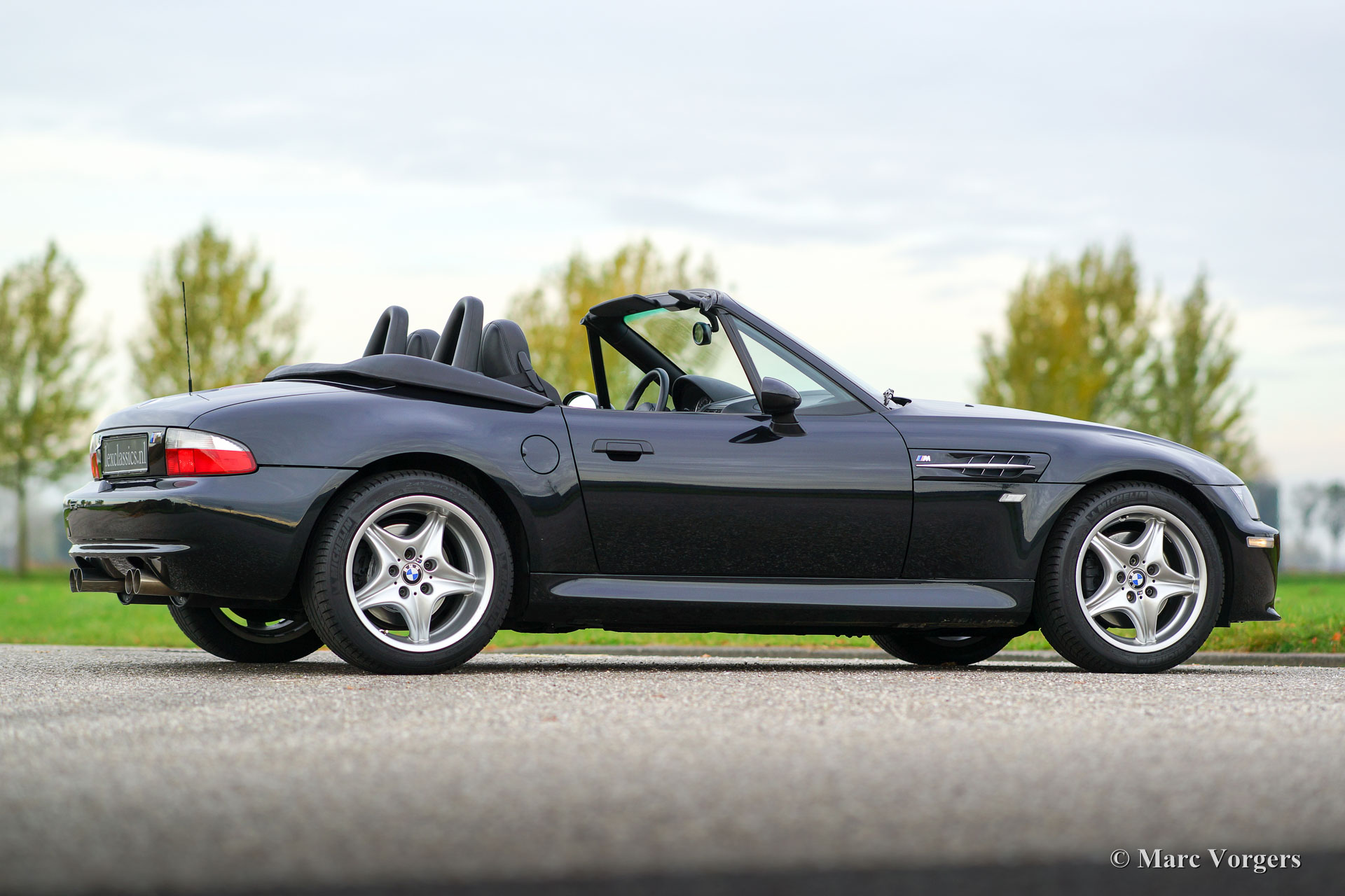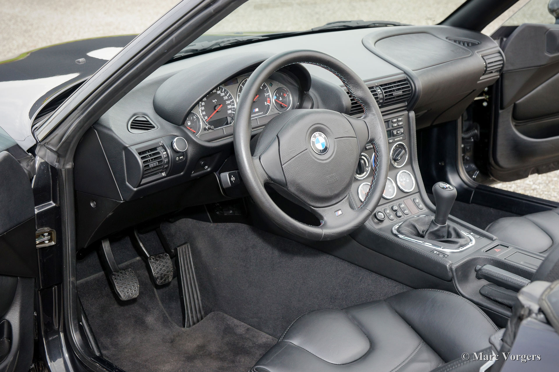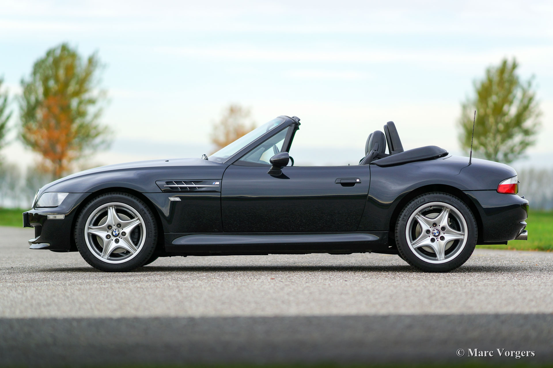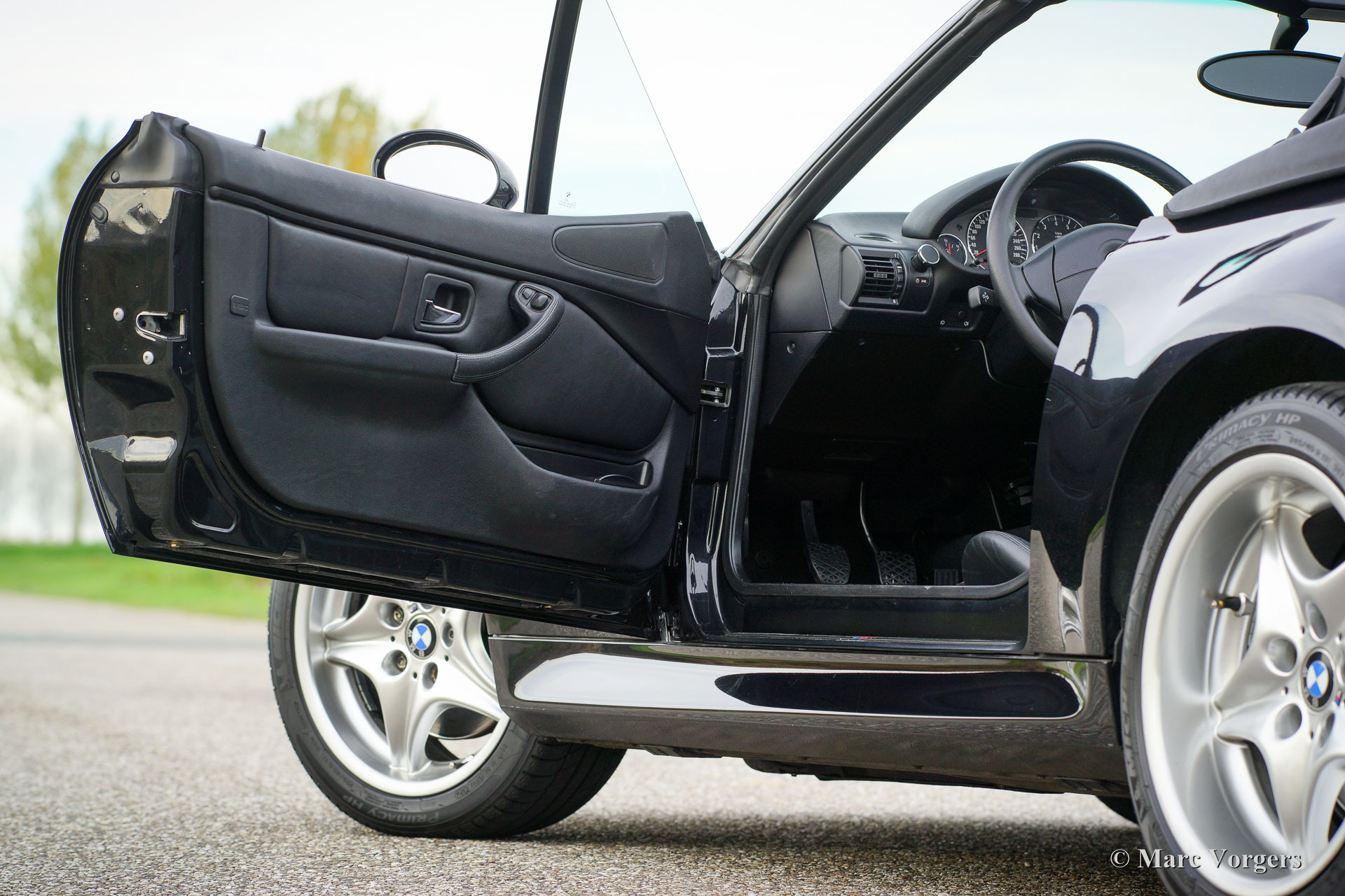 BMW Z3M Roadster, Jahr 1999. Farbe 'Cosmos' schwarz metallic mit einem schwarzen Leder-Interieur und einem schwarzen Verdeck. Diese fantastische BMW Z3M Roadster ist in einem hervorragenden Top-Zustand! Das Auto wurde vor kurzem komplett überprüft und gewartet von einem offiziellen BMW Vertreter, die Rechnung liegt vor. Neuerdings wurde auch ein ganz neues Verdeck montiert. Die BMW Z3M verfügt über eine prächtige, reizende und leistungsstarke Sechszylinder-Motor, der 321 PS liefert. Dieses Kraftwerk katapultiert den Z3M auf 100 km/h in nur 5,4 Sekunden. Die BMW Z3M Roadster ist ein wunderbares Sportwagen, die alle Eigenschaften und Nervenkitzel eines klassischen Roadsters in ein modernes Design vereint.