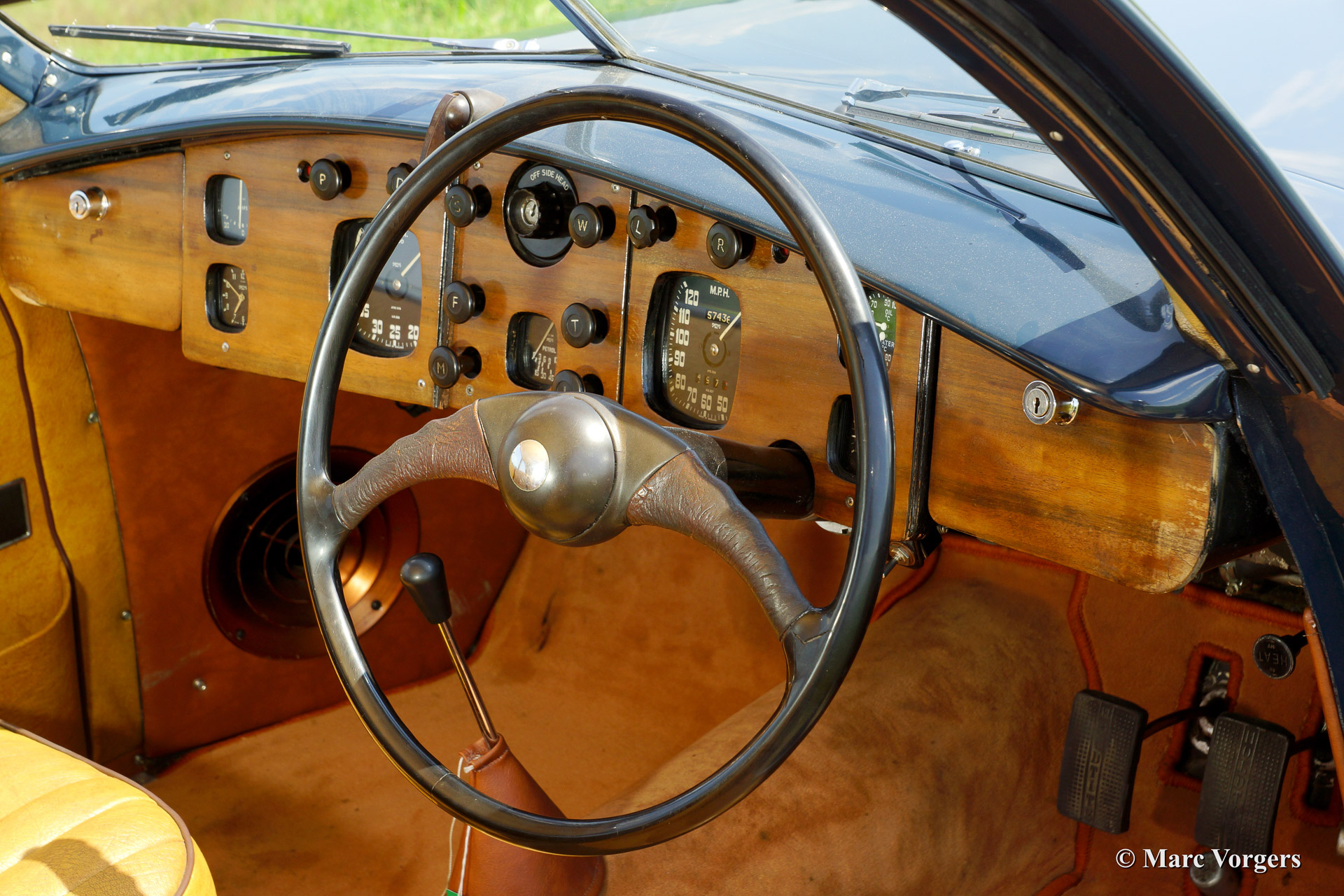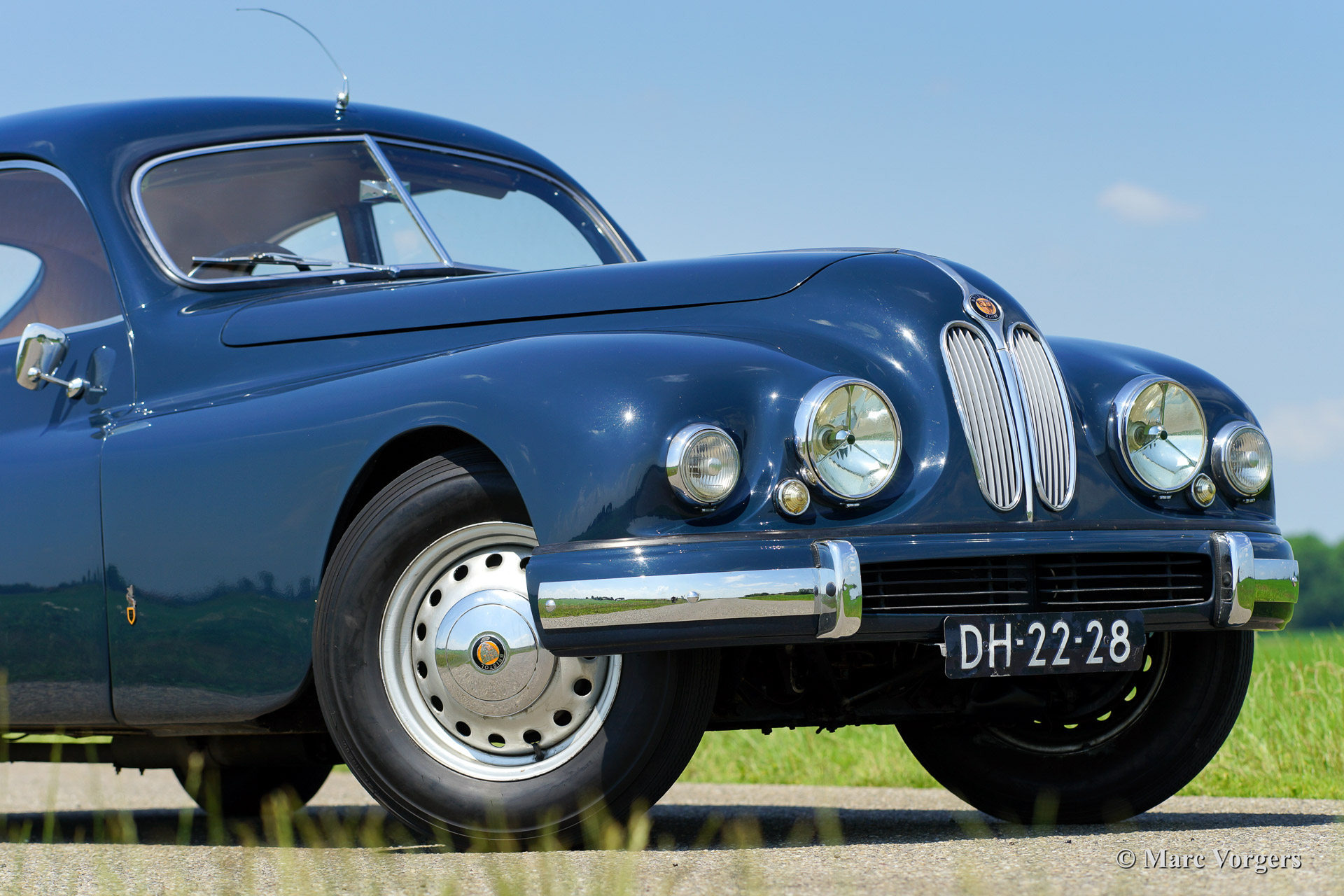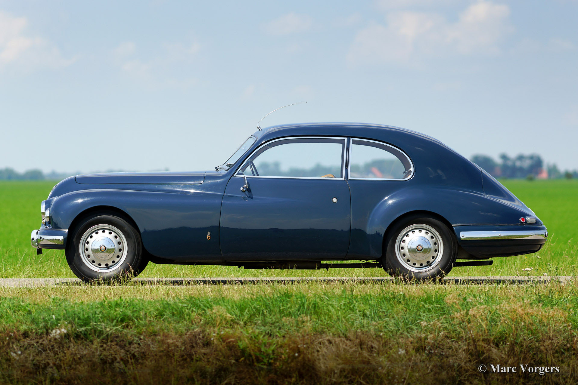 Bristol 401, Jahr 1953. Farbe Blau mit beige Lederausstattung. Dieses fabelhafte Bristol 401 mit Aluminium Karosserie wurde im Jahr 1992 in den Niederlanden eingeführt. Vor ein paar Jahren wurde die Karosserie restauriert und wurde die originale BMW Motor überholt. Die Inneneinrichtung ist ganz original und sehr gut, neue Teppiche wurden das innere noch besser machen. Rechnungen der ausgeführte arbeiten liegen vor. Es wurden nur 611 Bristol 401 Modelle hergestellt. Dieses seltene Auto ist in einem sehr guten Zustand und das Auto fährt hervorragend. Bristol war eine Flugzeug Hersteller die auch sehr teurere und hochwertigen Autos bauten für Kenner und Genießer. In den höchsten britischen Kreisen wurden die Bristol Automobile ganz hoch geschätzt. Dieser Bristol 401 ist ein sehr gutes und schönes Exemplar mit einem Hauch von Patina.