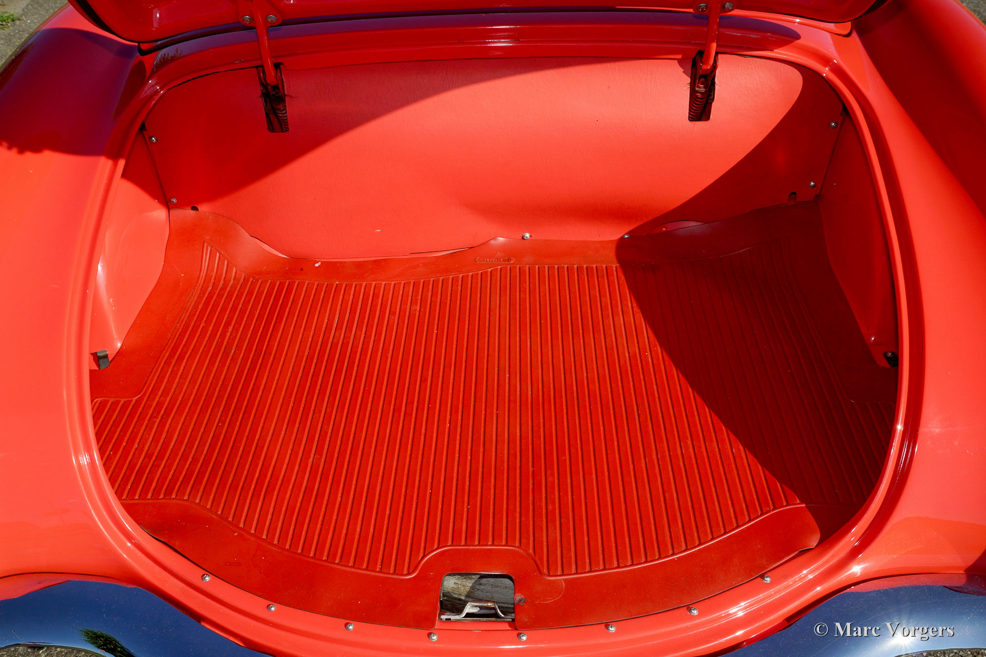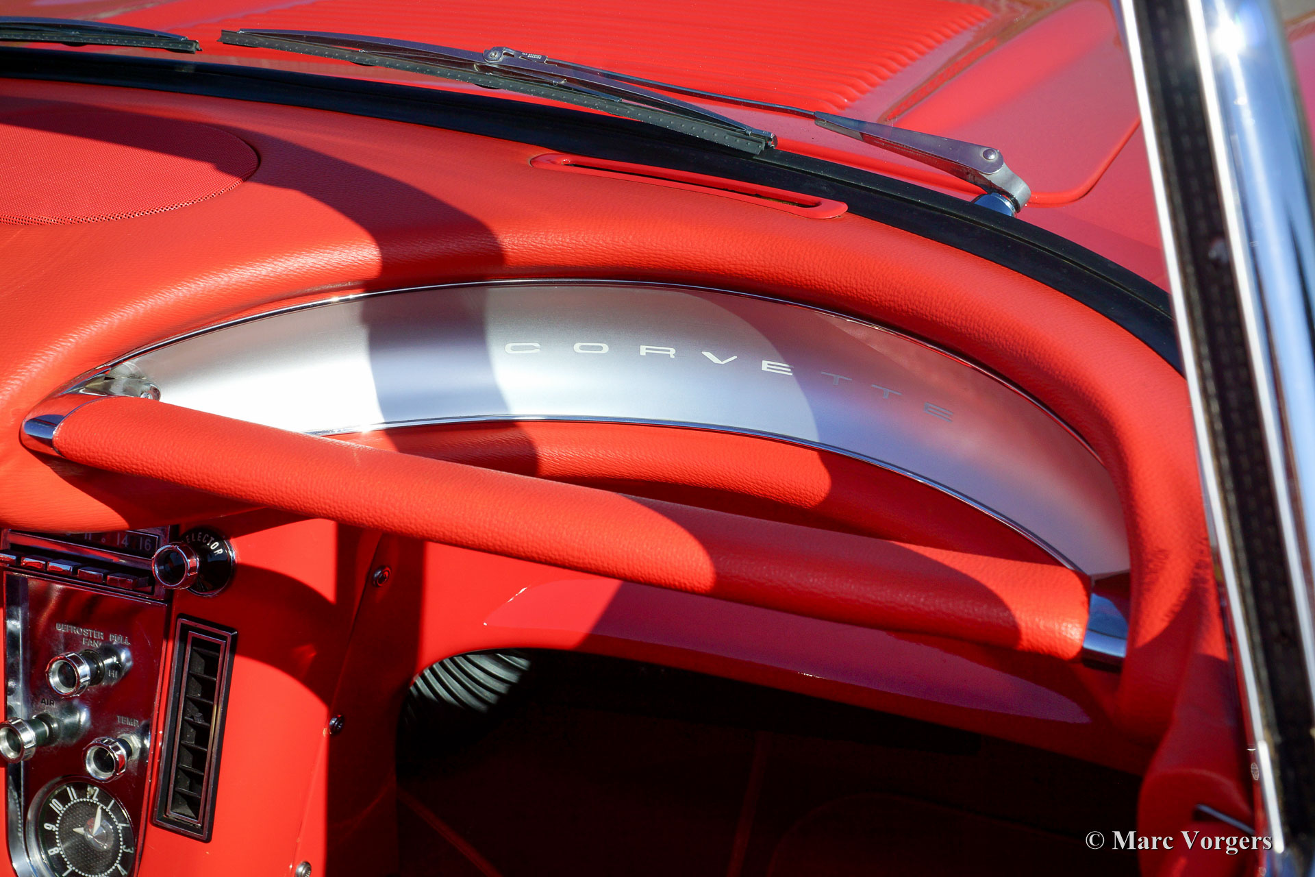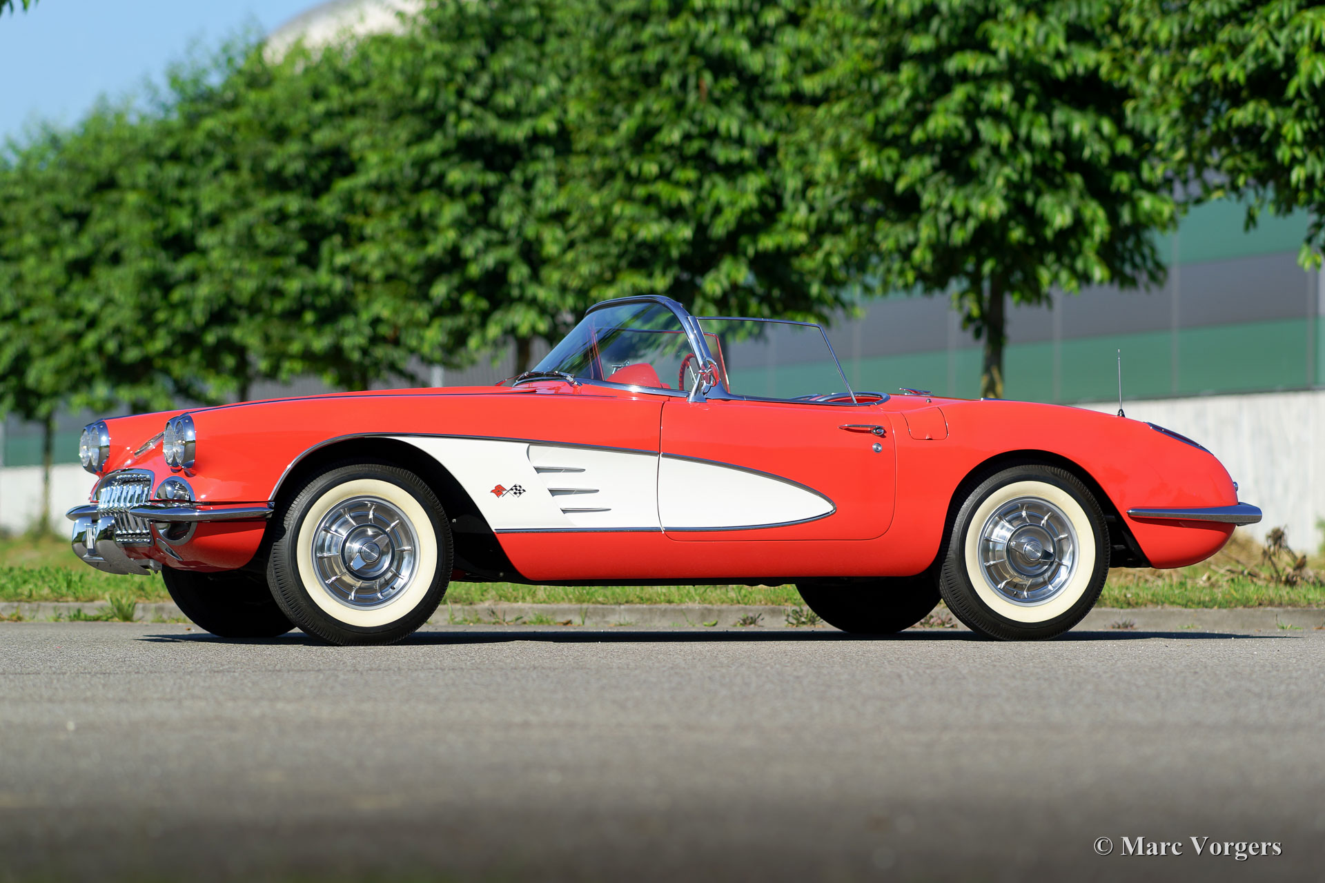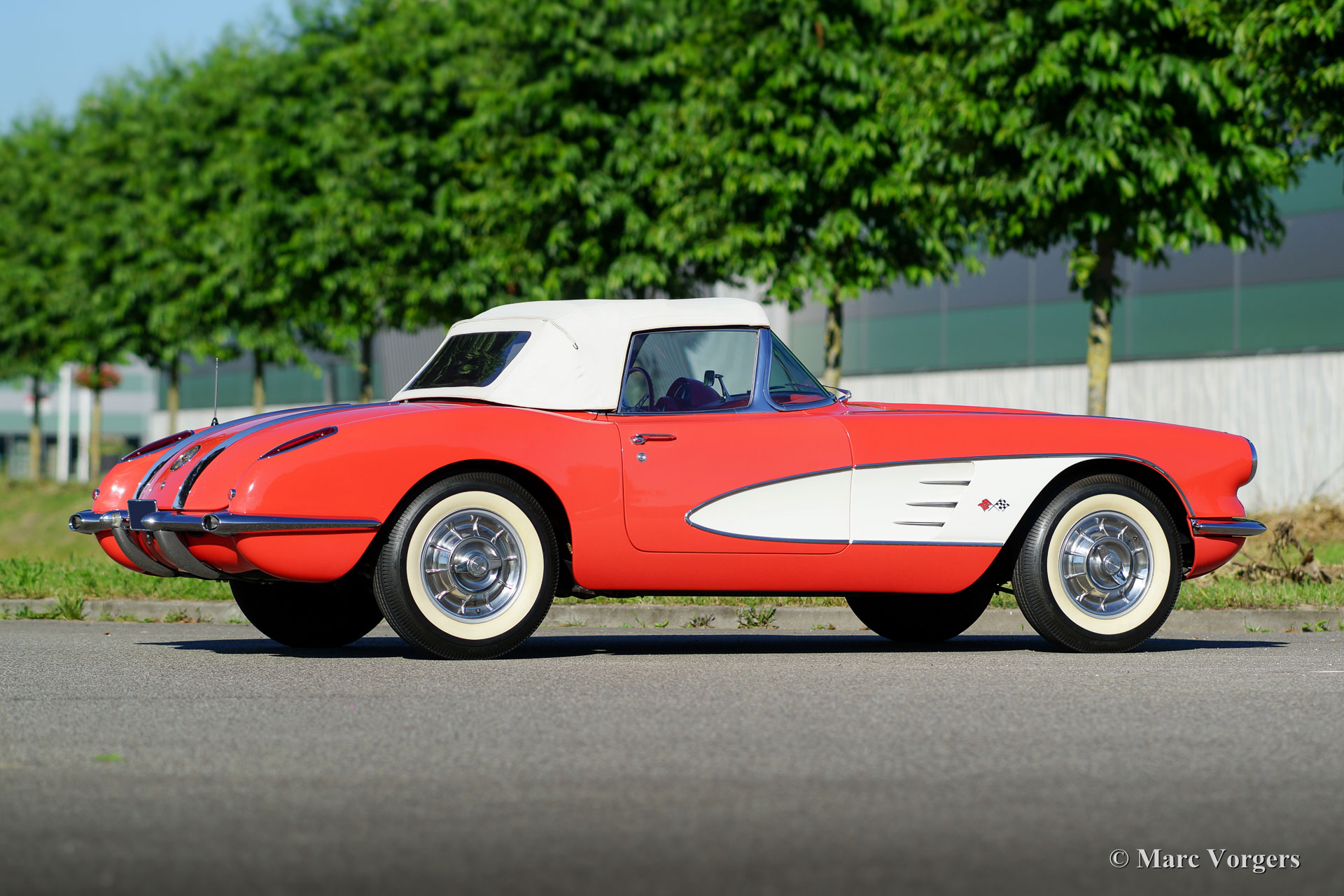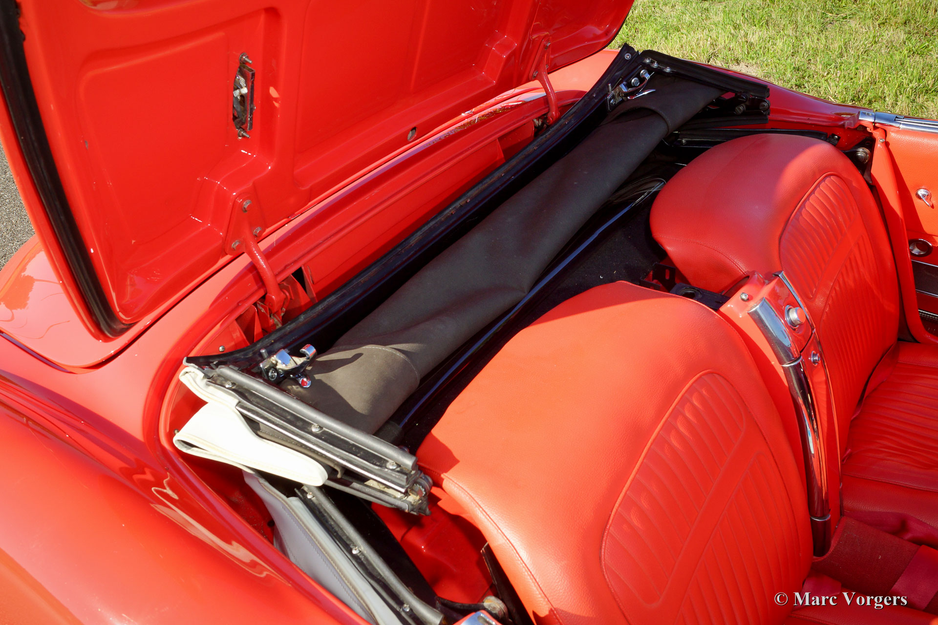 Chevrolet Corvette C1, Jahr 1958. VIN: J58S1064XX. Farbe ‘pumpkin red‘ mit einem roten Kunstleder Interieur und ein weißes Verdeck. Diese wunderschöne Corvette wurde neu verkauft in den USA. Da wurde das Auto in den späten 1990er Jahre umfangreich und perfekt nach Top-Zustand restauriert. Eine sehr umfangreiche Fotoreportage der Restauration und Überholung der Komponente ist vorhanden. Ebenfalls erhältlich ist eine massive Datei-Ordner mit Rechnungen und Geschichte. Diese Corvette ist in einem hervorragenden Top-Zustand; concours. Das 1958-Modell ist den meist begehrten Klassischen Corvette mit den vier Scheinwerfern, das schön geschwungene Heck und dem Tachometer, die bis 8000 Umdrehungen pro Minute abliest. Darüber hinaus ist diese mächtige Maschine ausgestattet mit das wünschenswerte vier-Gang-Schaltgetriebe und Klimaanlage! Die 1950er Jahre Chevrolet Corvette ist der einzige amerikanische Sportwagen mit europäischen Qualitäten; das Auto ist relativ leicht und kompakt mit seinem GRP-Kunststoff Karosserie und herrlichen Styling. Diese Tugenden sind kombiniert mit einer guten Straßenlage, ein sportlicher Komfort und einem herrlichen 250 PS starken V8-Motor! Dies ist ein US-ICON der 1950ern in einem Top-Zustand!