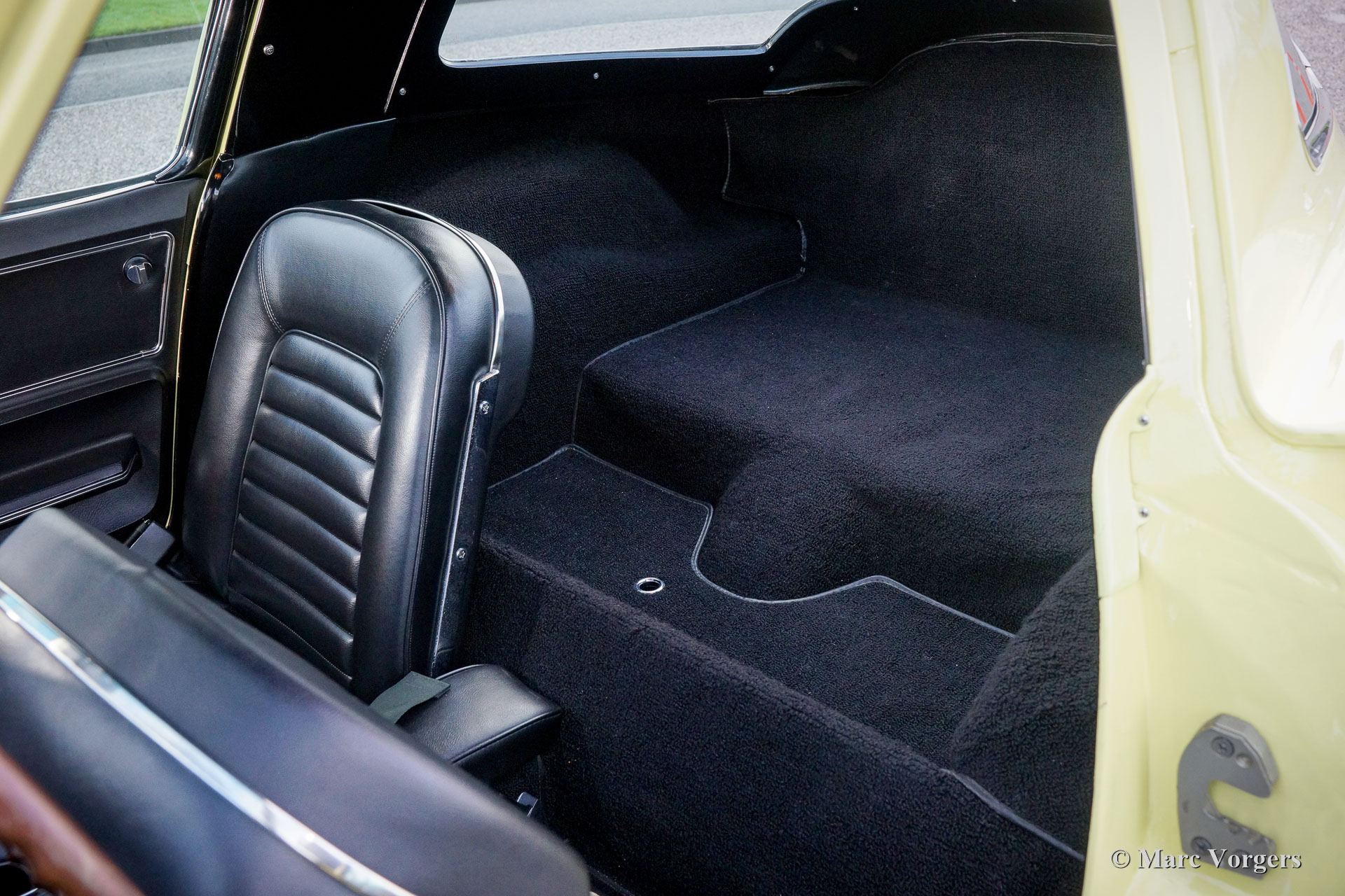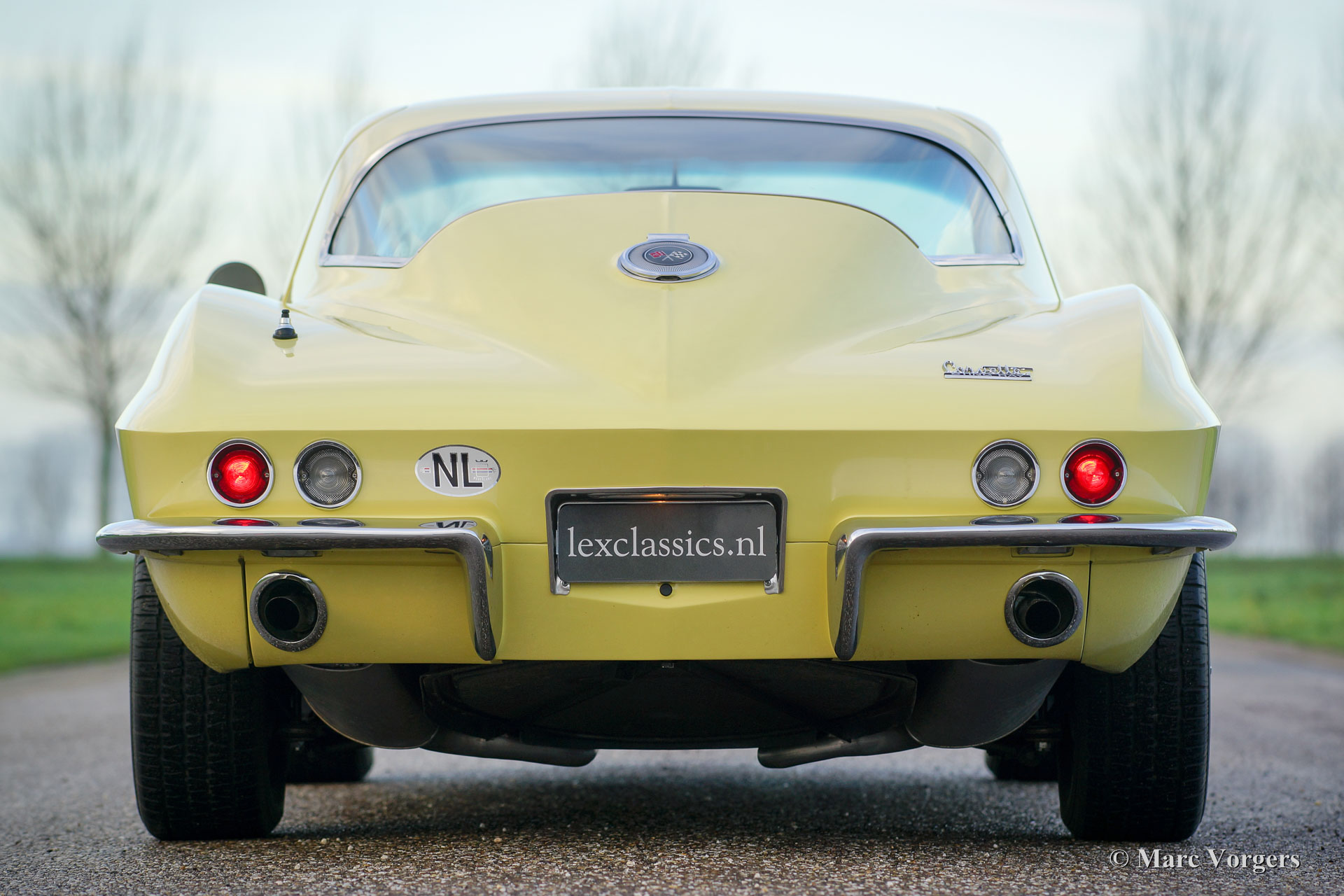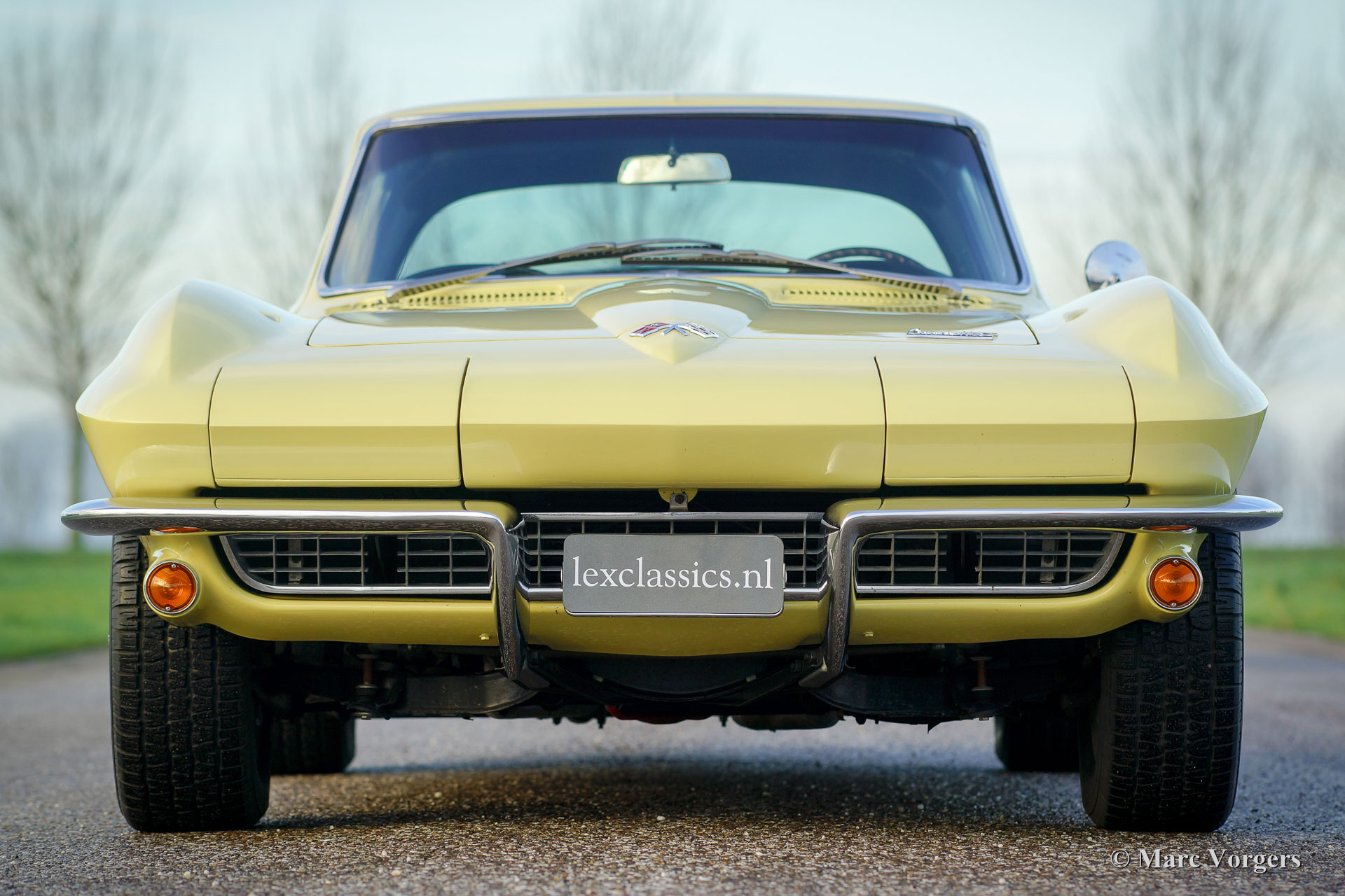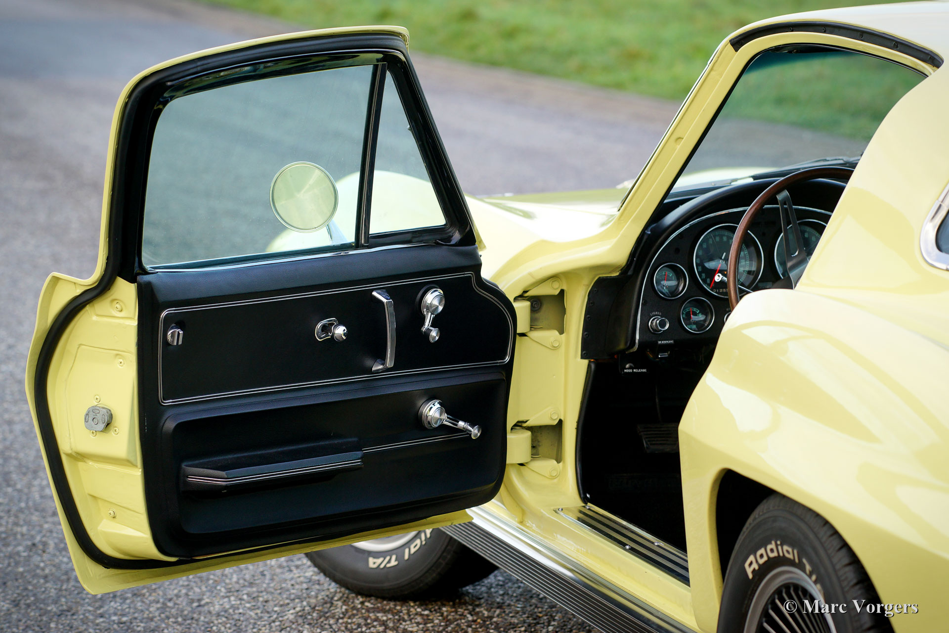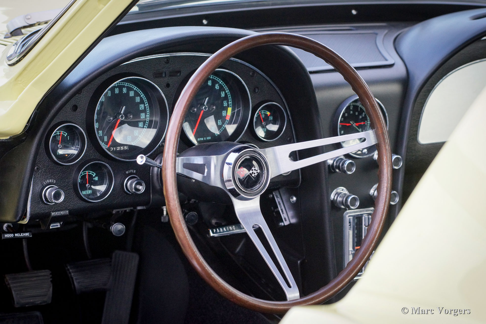 Chevrolet Corvette C2, year 1966. Colour pale yellow with a black interior. This impressive Chevrolet Corvette is in superb top-condition; Concours! In 1966 9.958 examples of this model were built. The car features a 350 bhp V8 engine and a manually operated 4-speed gearbox.