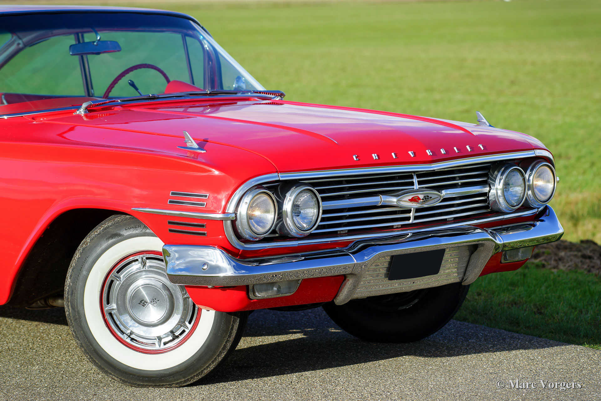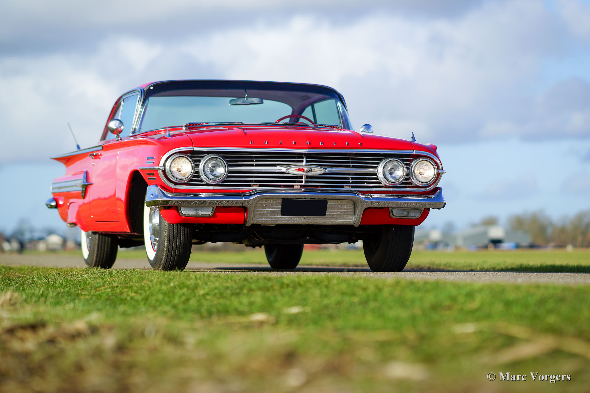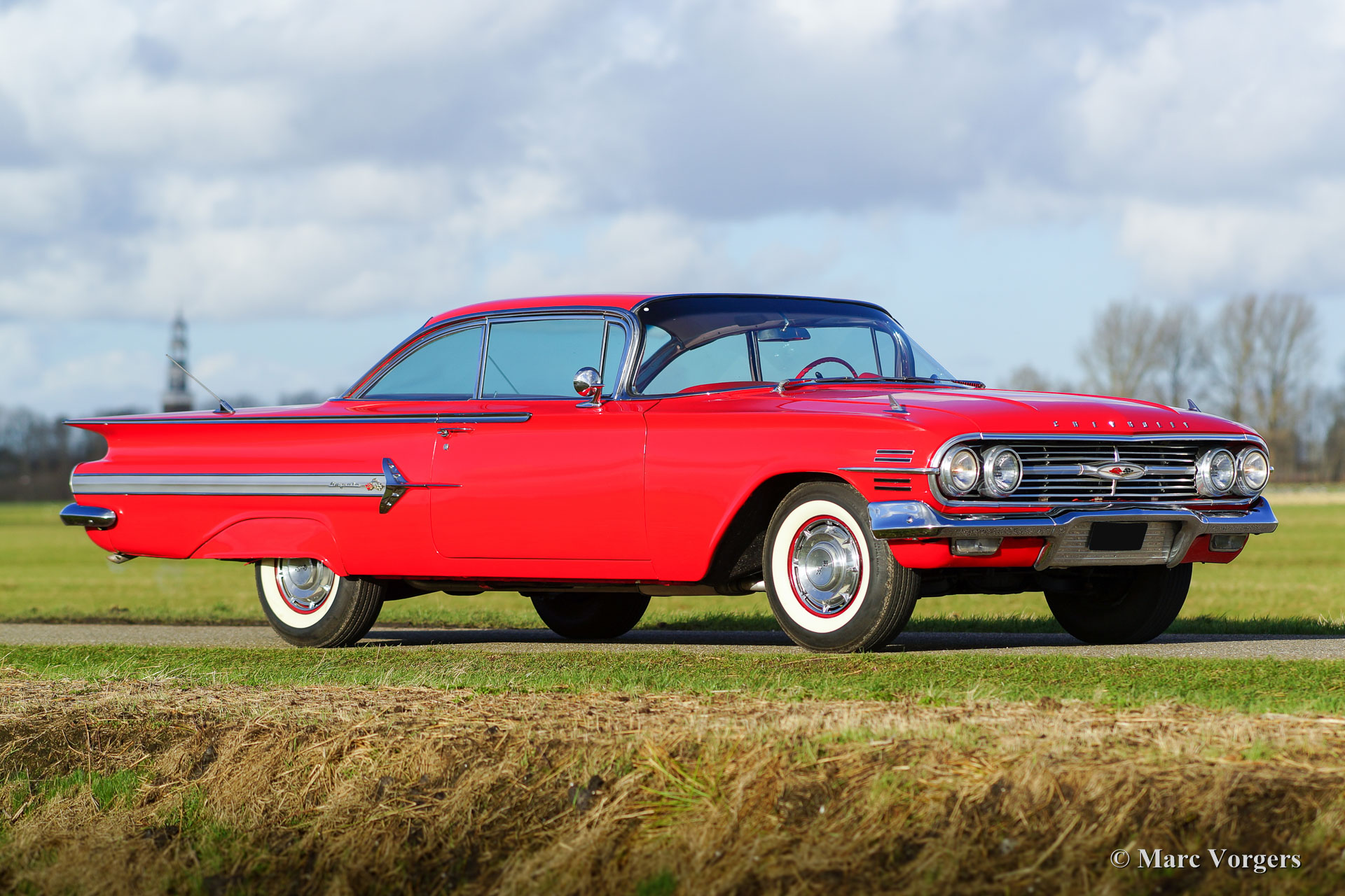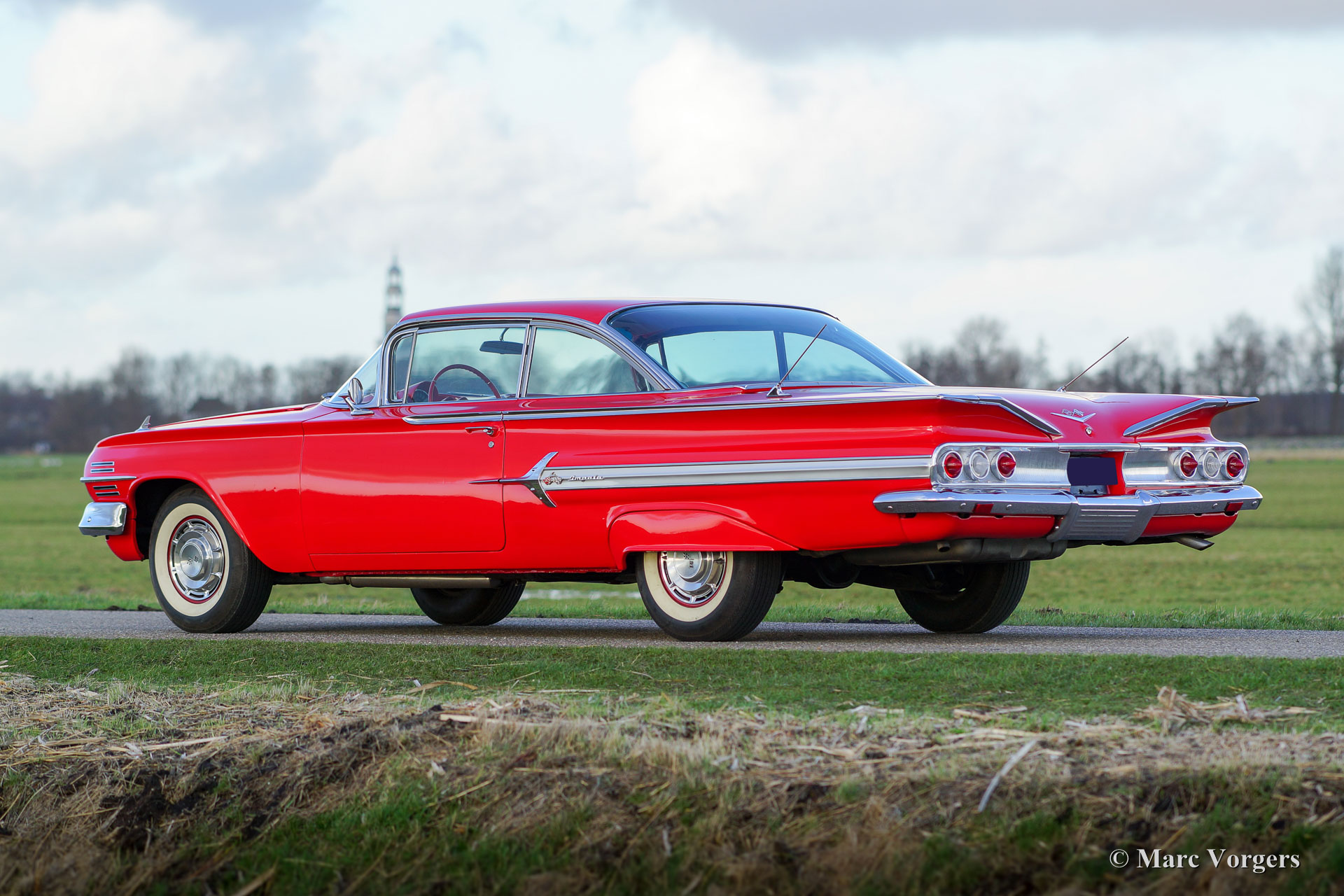 Chevrolet Impala Coupe, Jahr 1960. Farbe rot mit einem rot / weiß farbiges Kunstleder Innenraum. Dieser großartige amerikanische Klassiker aus der Rock & Roll-Zeit wurde in den USA neu verkauft. In den Jahren 1990 wurde das Automobil in die Niederlande importiert. Da wurde das Auto neu lackiert und wurde der Wagen mechanisch und technisch auf den neuesten Stand gebracht. Dieser wunderbare Chevrolet Impala zeigt alle Originaldetails. Das Auto ist in einem sehr guten und super Originalen Zustand! Amerikanische Auto-Liebhaber können nicht aufhören, sich alle Details an zu sehen. Das Auto fährt wie alle großen US-Autos dieser Zeit; Bequem mit einem Kapitalen ‘B‘, ein echter Cruiser mit einem mächtigen V8 Soundtrack. Route 66 hier kommen wir!