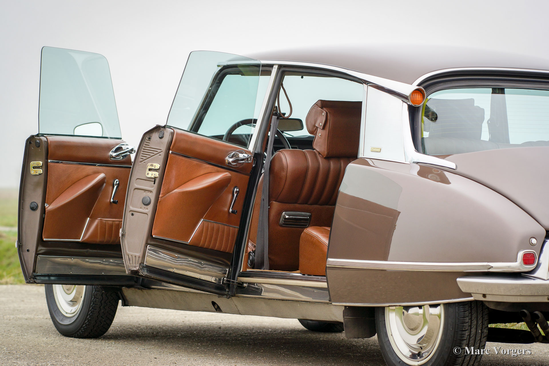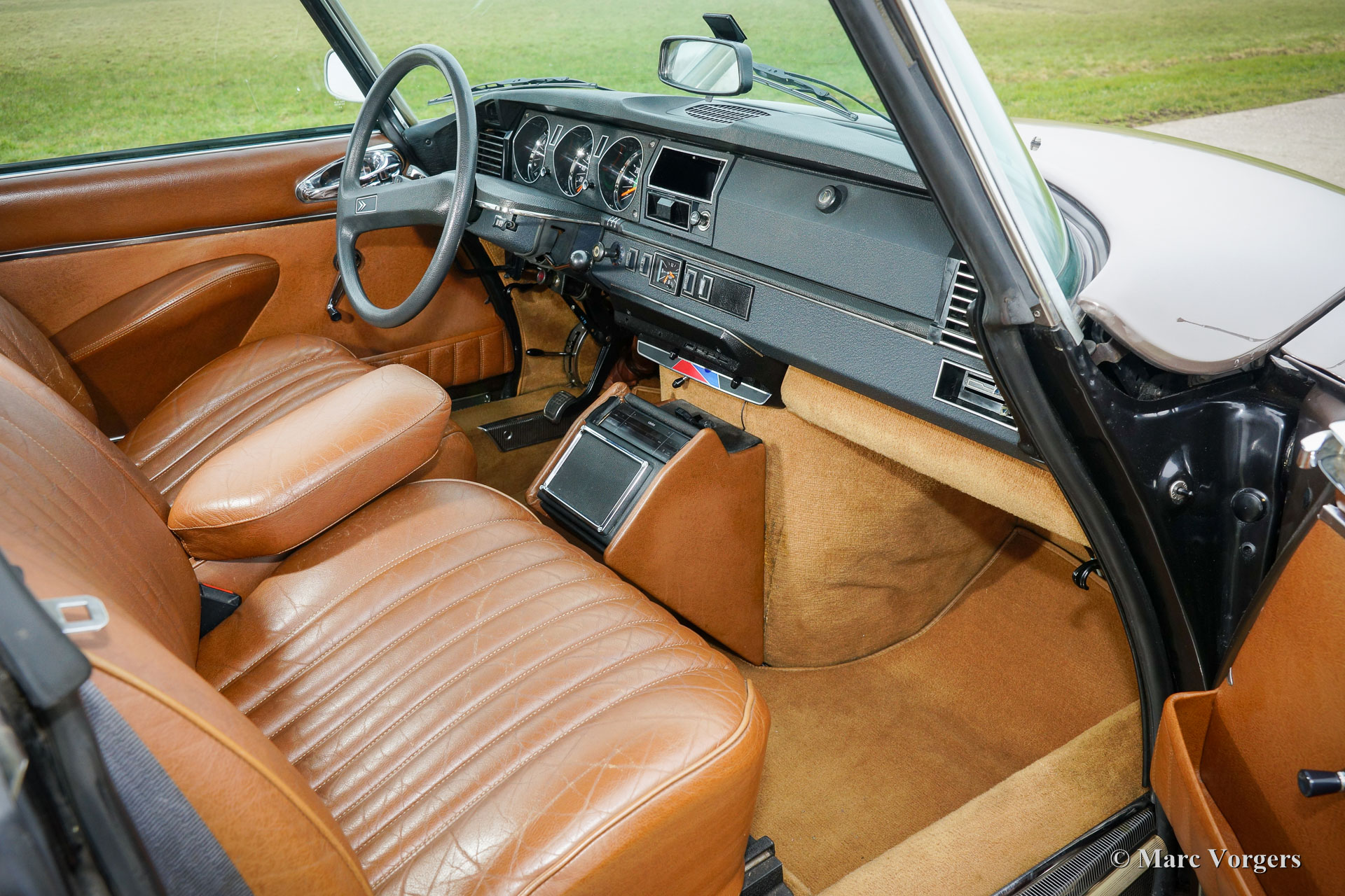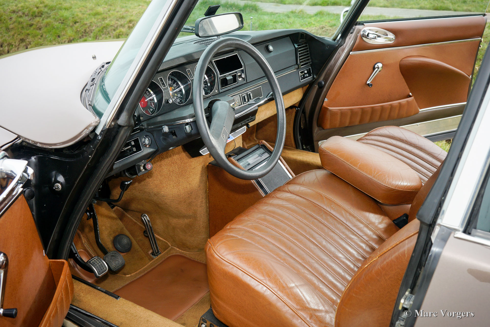 Citroën DS23 M Pallas, Jahr 1973. Farbe Brun Scarabé mit einer braunen Volllederausstattung. Diese wunderschöne Citroën DS 23 Pallas ist in einem ausgezeichneten ursprünglichen Zustand! An die wunderschone Karosserie wurde nie geschweißt. Der Körper wurde in der Vergangenheit nur mal neu lackiert in der ursprünglichen Farbe. Von neu hat das Auto 116.000 Kilometer gefahren. Das Auto fährt absolut perfekt! Dieses feine Automobil verfügt über einen herrlichen 5-Gang-Schaltgetriebe und Michelin-Reifen. Das Auto ist komplett mit der Original-Bedienungsanleitung, Original Garantie Dokument und dem ursprünglichen Werkzeug-Set! Dies ist eine schöne und sehr luxuriöse DS Pallas in einem fantastischen Farbschema.