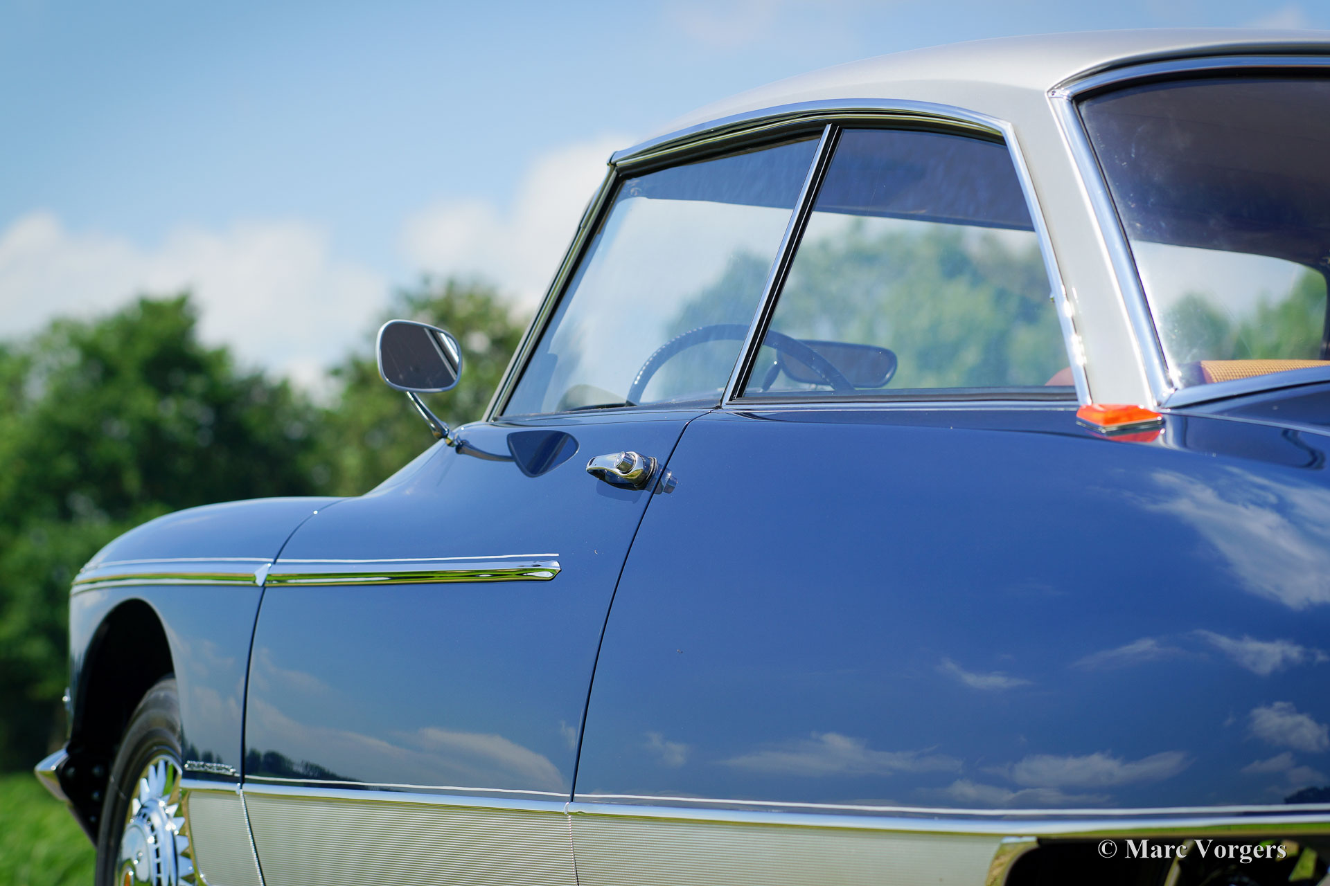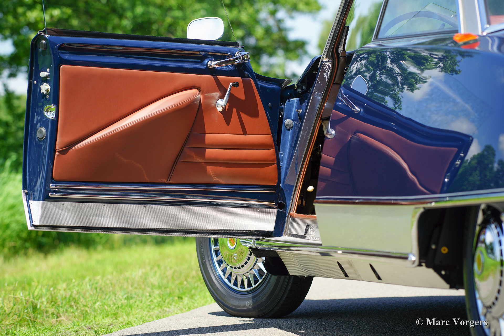 Citroën DS 19 Chapron Concorde, Jahr 1963. Farbe Blau metallic (Blau Sera) mit einem Silber / weiß metallic Dach (Argento Auteuil). Braun Lederausstattung mit Stoff streifen. Braun Teppich. Diese wunderschöne und Werks originelle Citroën DS19 Chapron Concorde wurde komplett restauriert von einem renommierten niederländischen Citroën Restaurateur.