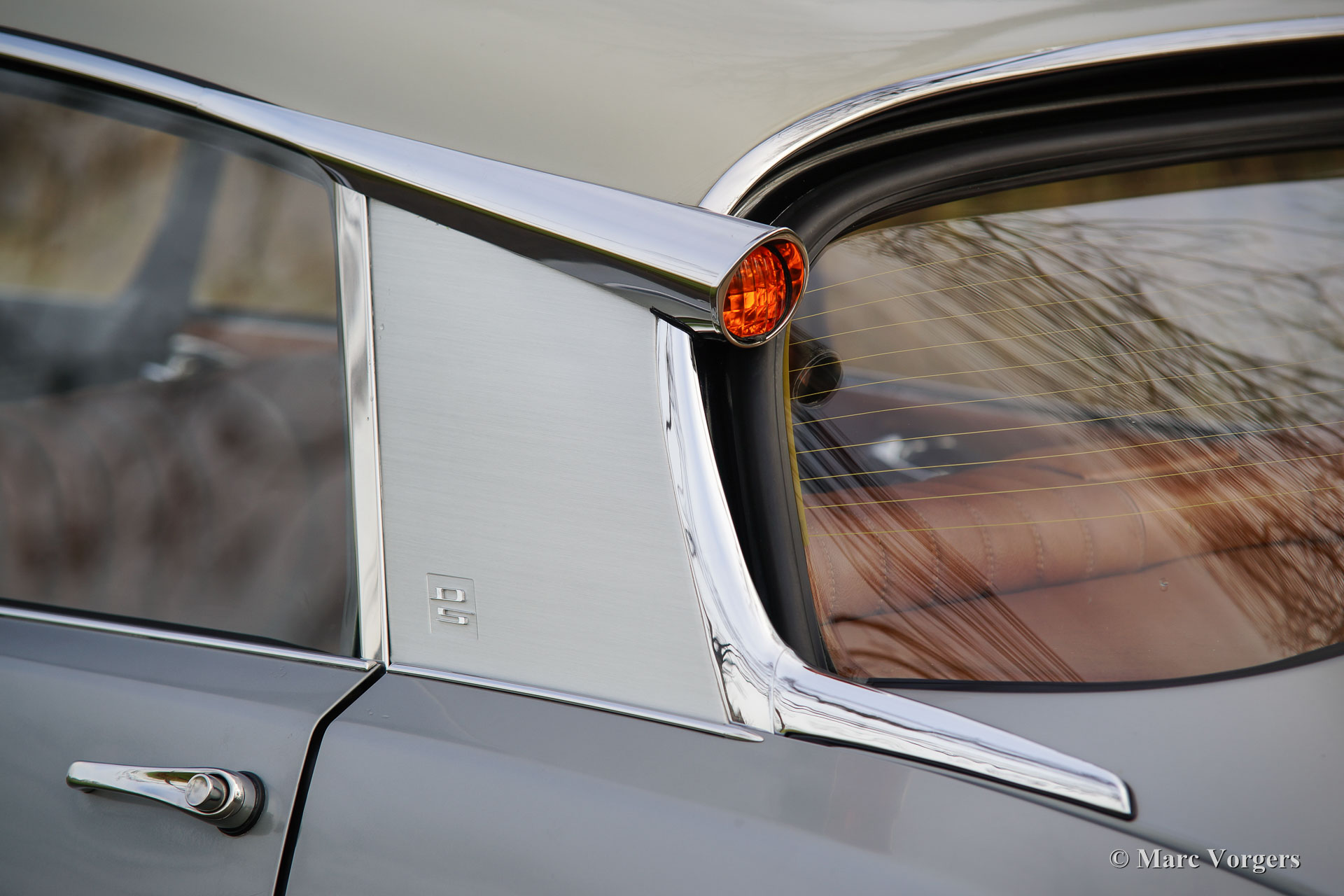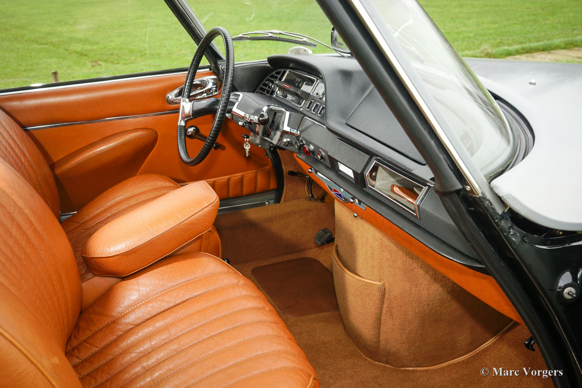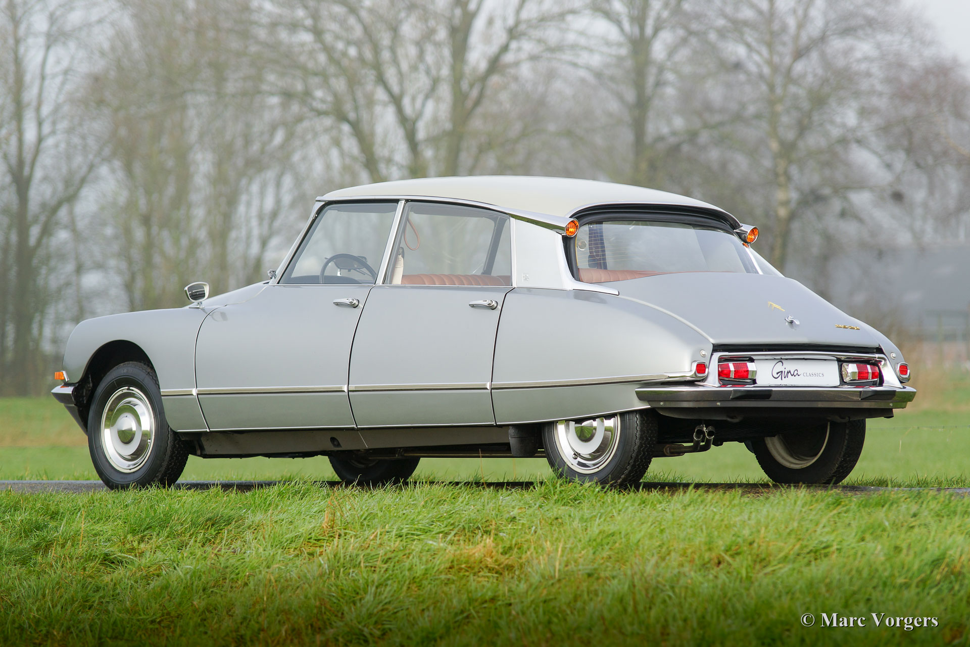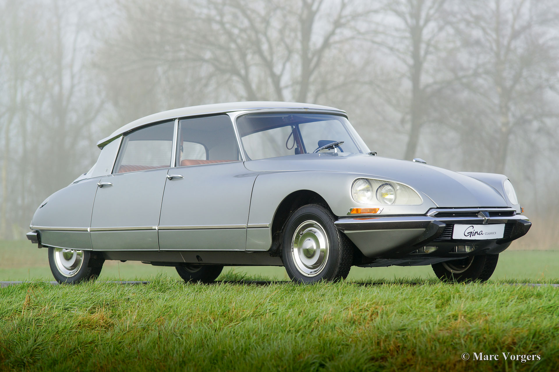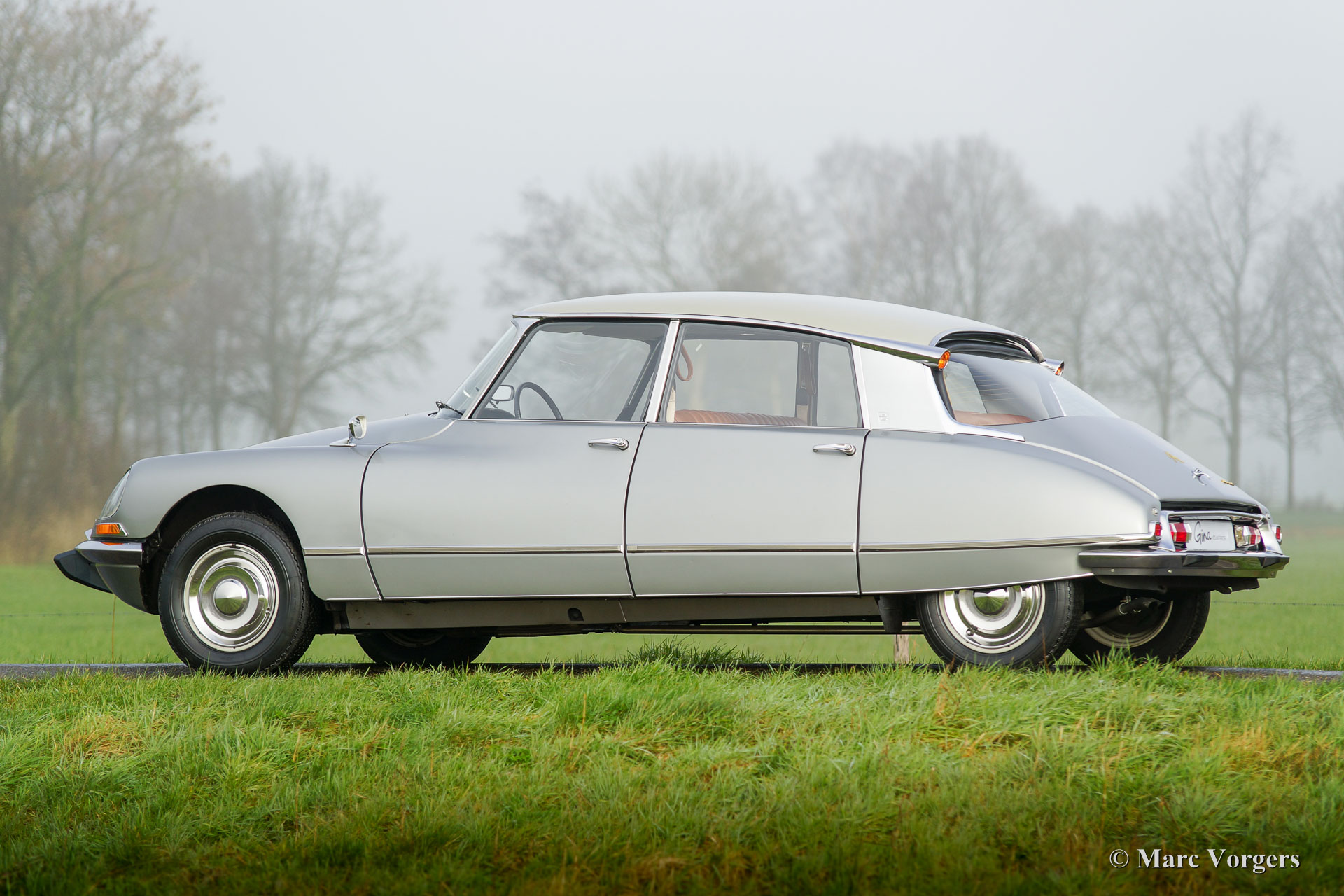 Citroën DS20 Pallas, Jahr 1969. Farbe Gris-Nacré (metallic) mit einem Cognacbraun Leder-Interieur und hellbraunen Teppich.
