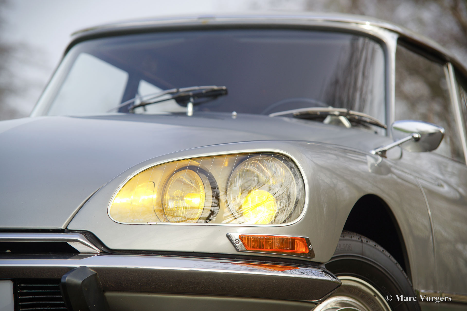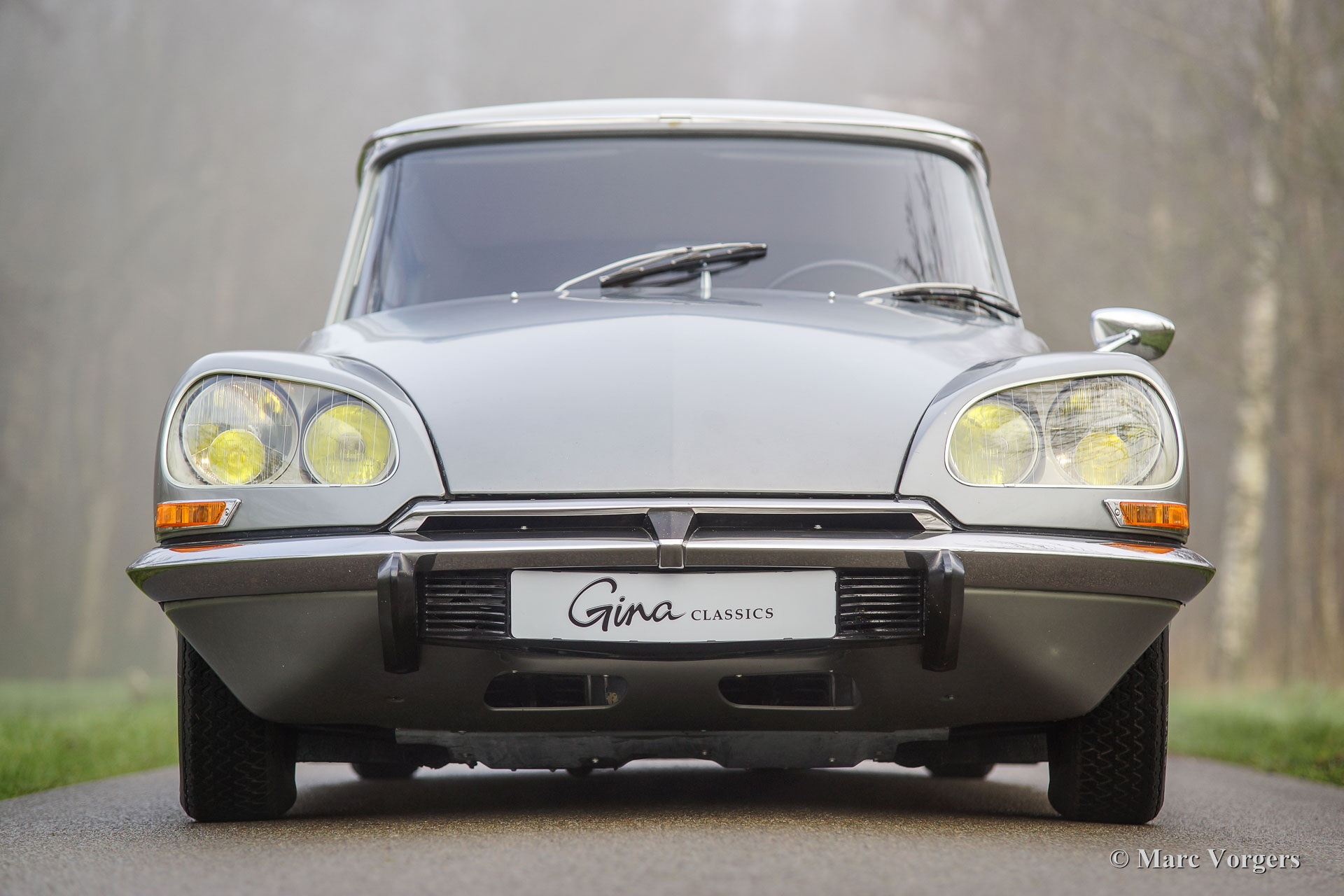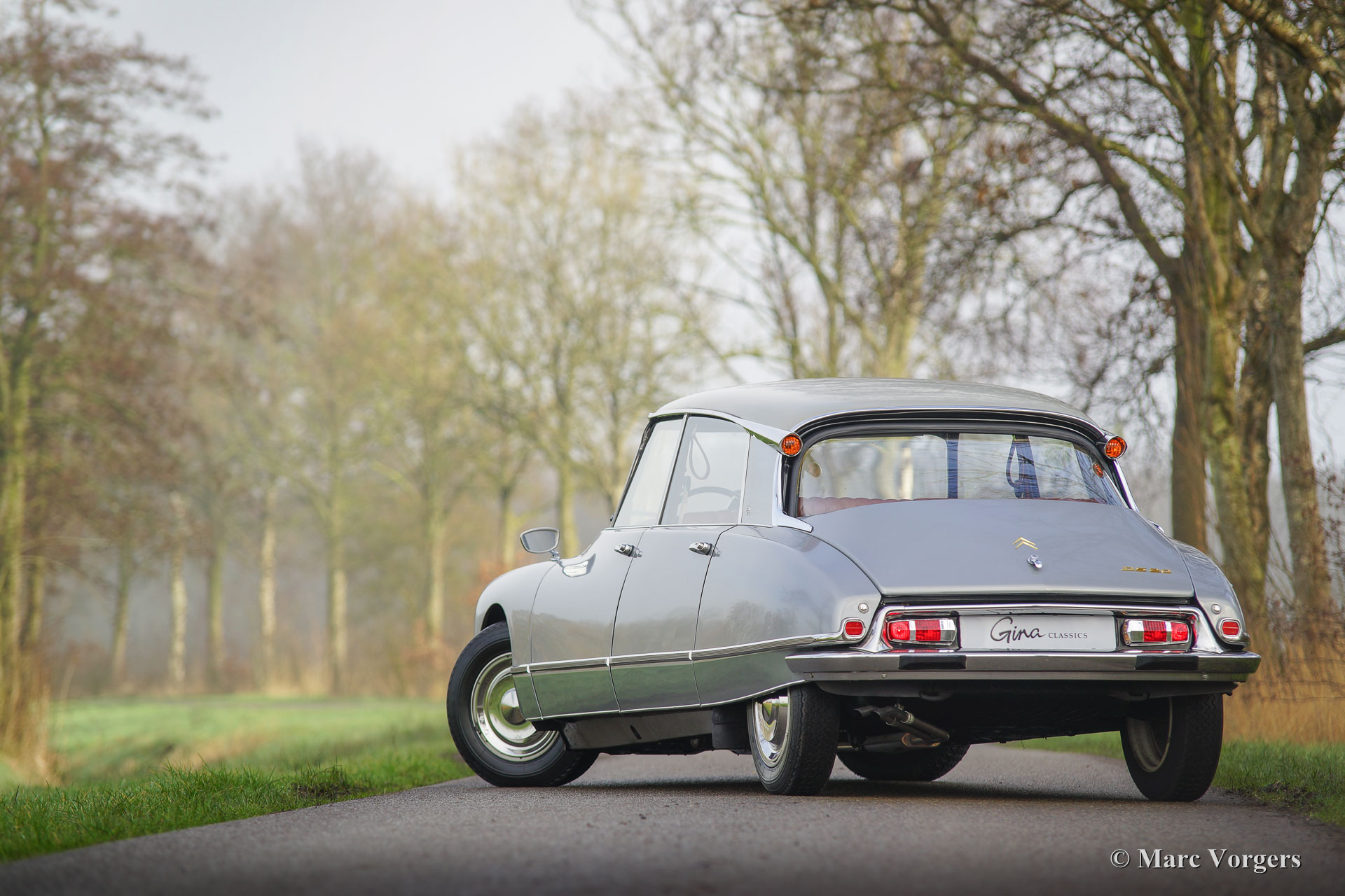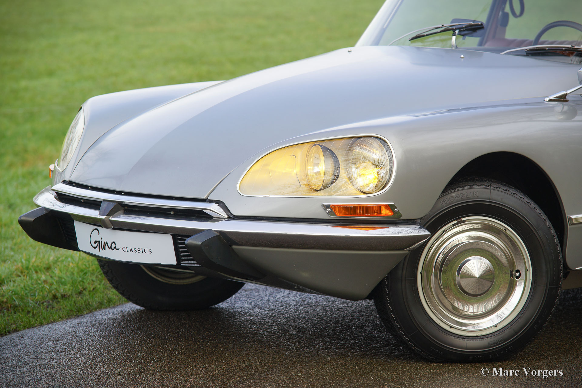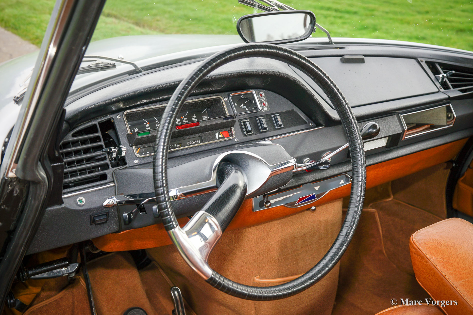 Citroën DS20 Pallas, Jahr 1969. Farbe Gris-Nacré (metallic) mit einem Cognacbraun Leder-Interieur und hellbraunen Teppich.