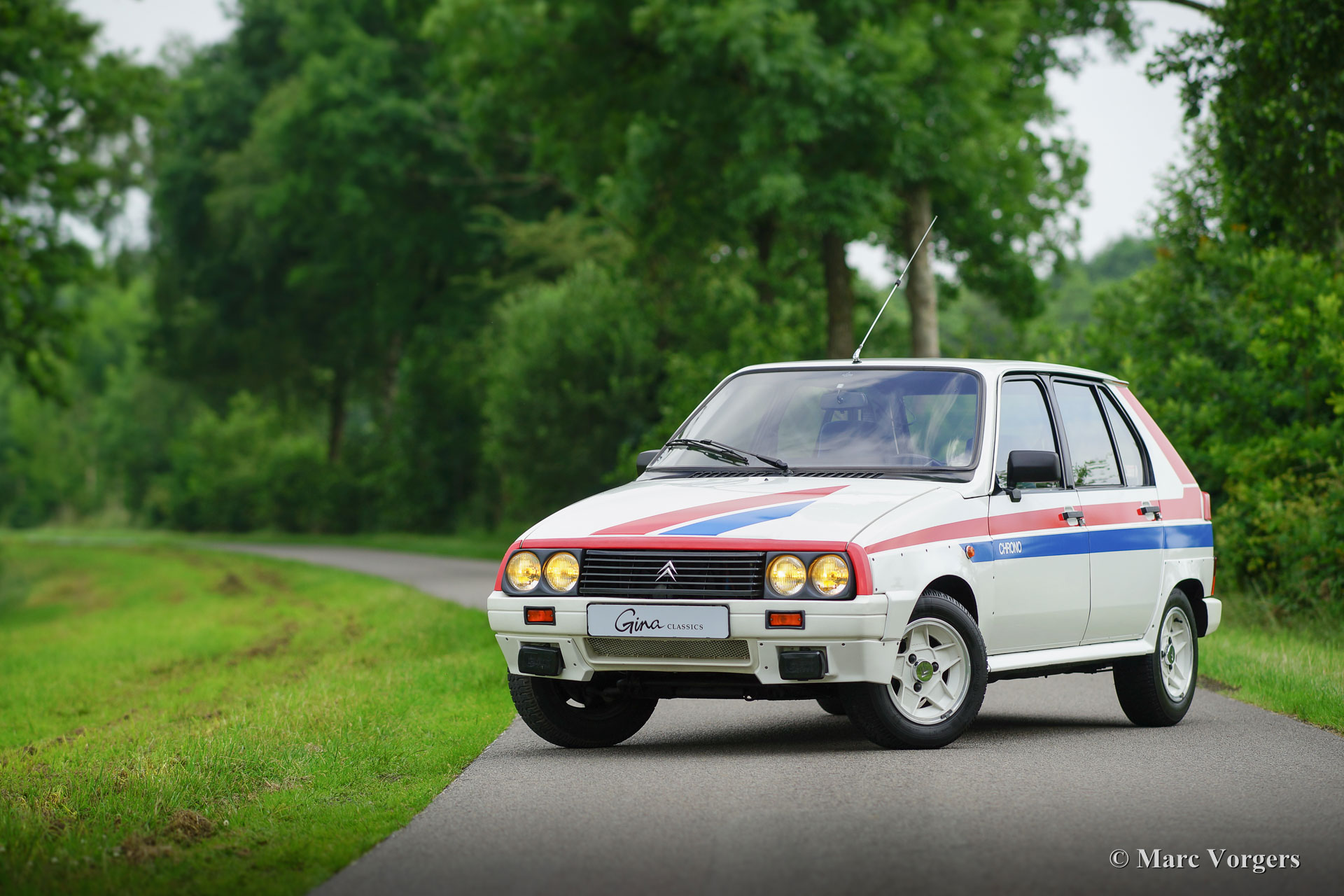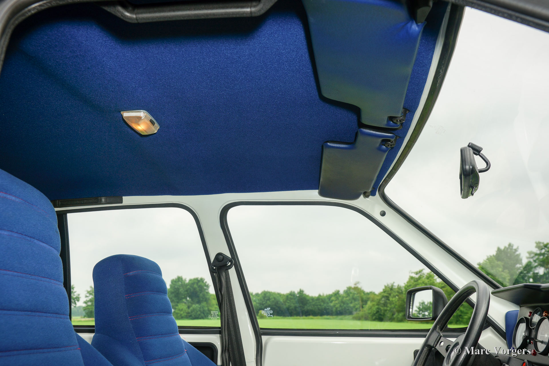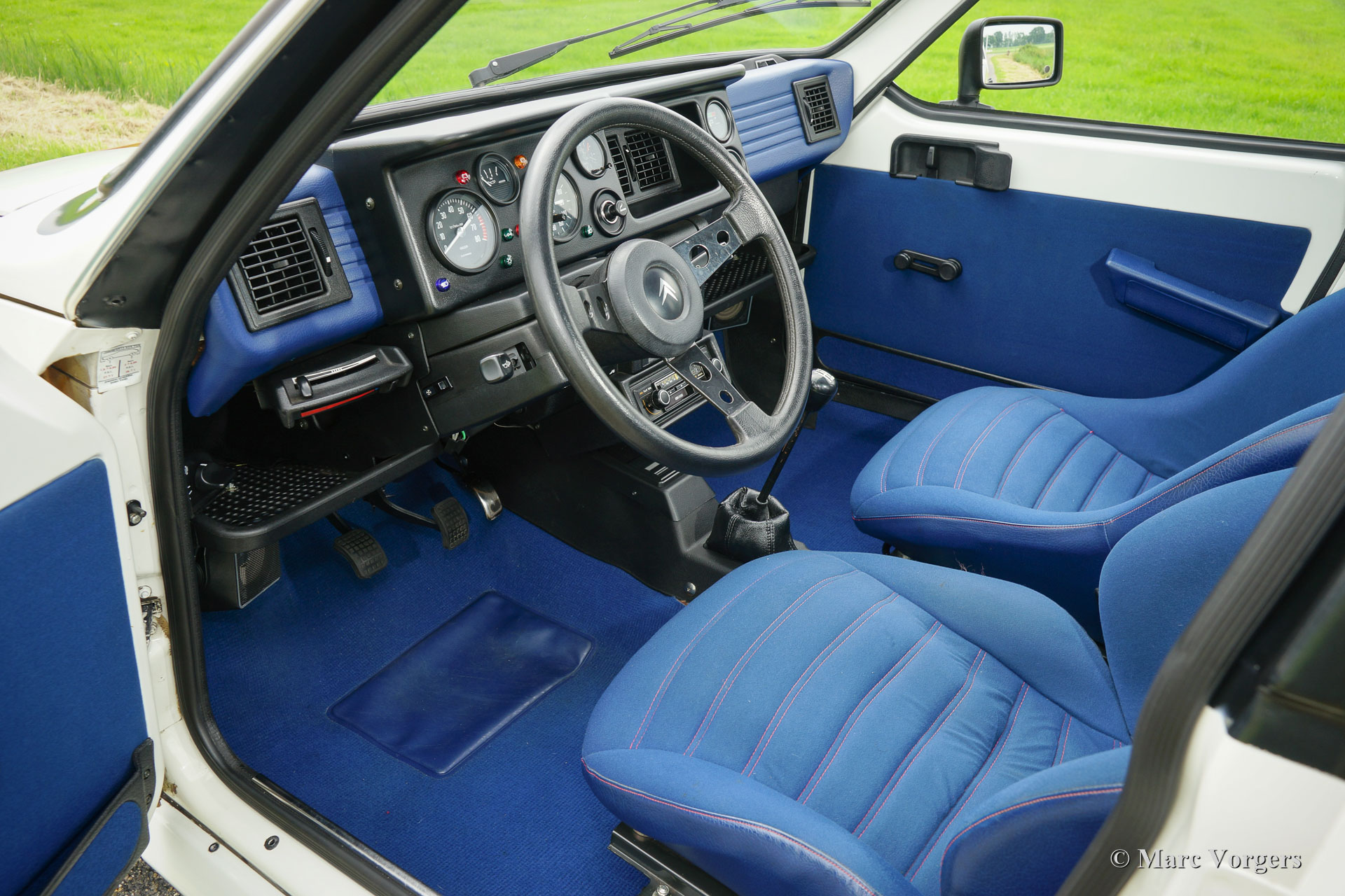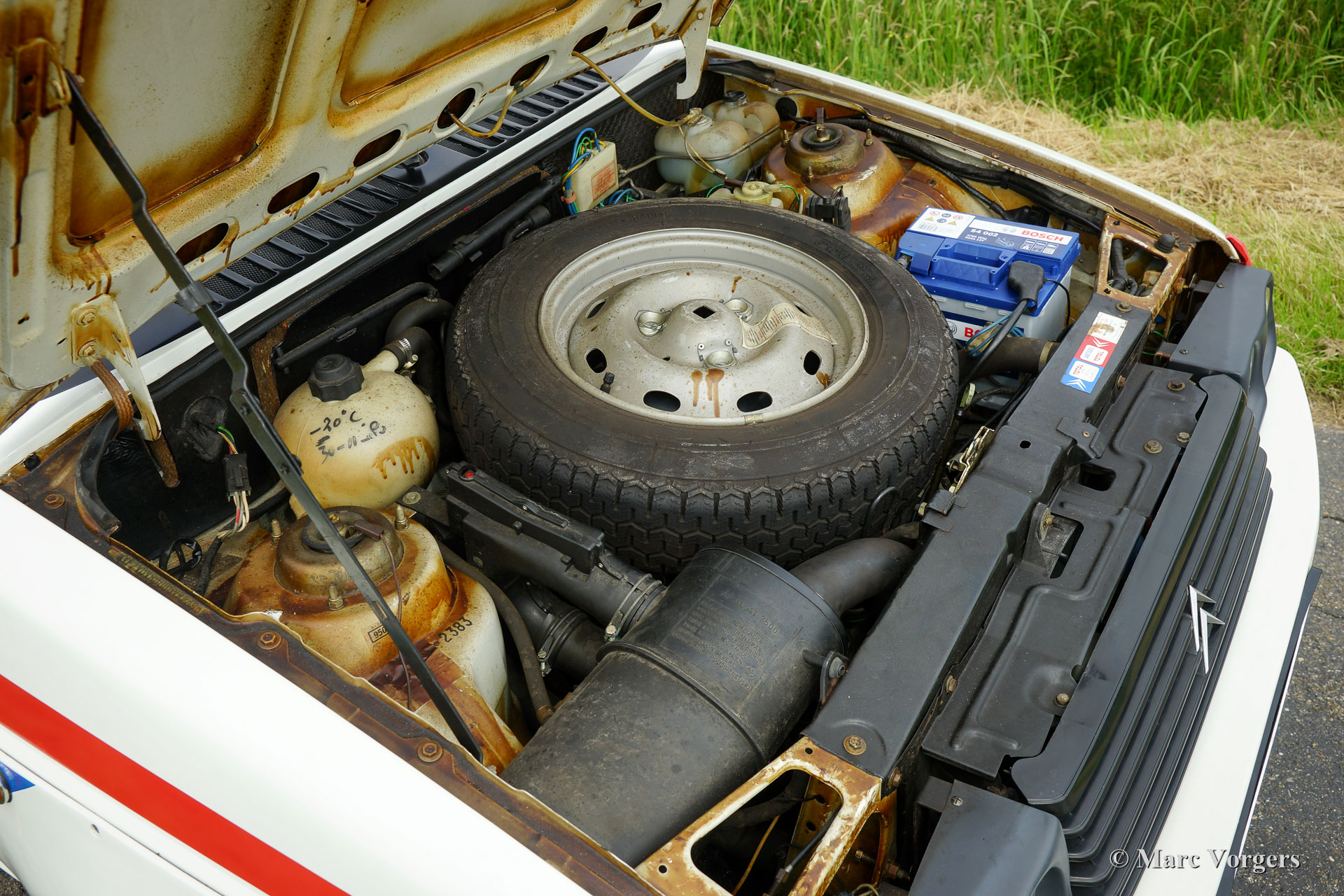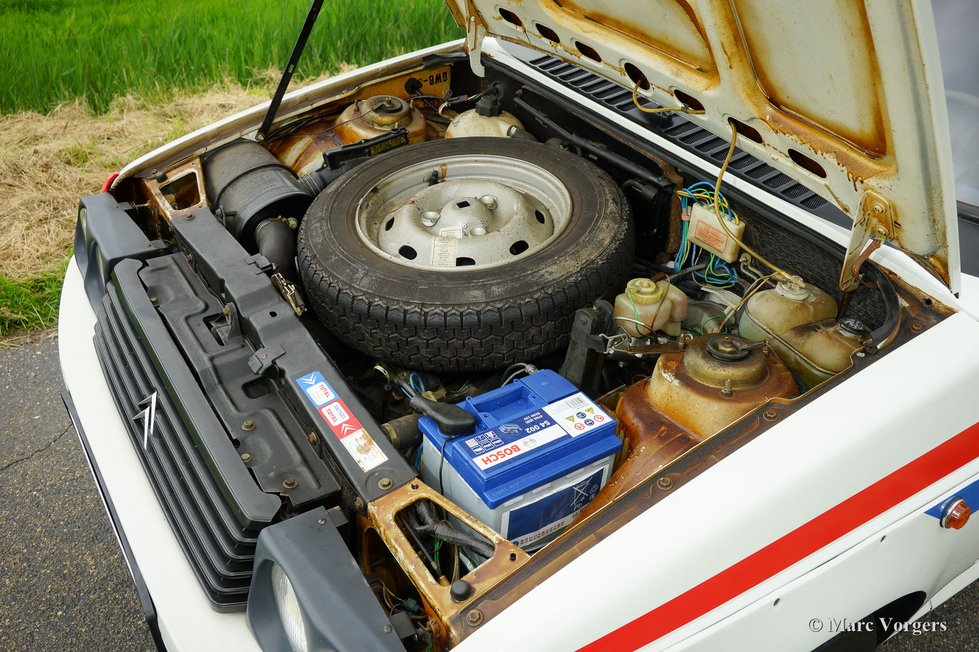 Citroën Visa Chrono, Jahr 1983. Farbe Weiß (Blanc Meije) mit einem schwarz / blauen Stoff Innenraum. Die Chrono wurde in Französische / Niederländische / und deutschen Farben geliefert. Weiß mit rot und blau ‘striping‘ für die niederländischen und Französischen Autos. Die Visa Chrono verfügt über ein einzigartiges Armaturenbrett mit schönen Jaeger Instrumente das nur im Chrono geliefert wurde. In den 1980ern Jahre war die Visa Chrono ein Wettbewerber des Renault R5 GT und den Peugeot 205 GTI. Mit einer Leistung von 80 PS. und einem Gewicht von nur 900 Kilogramm ist das Auto ein richtiger ‘hot hatch'.