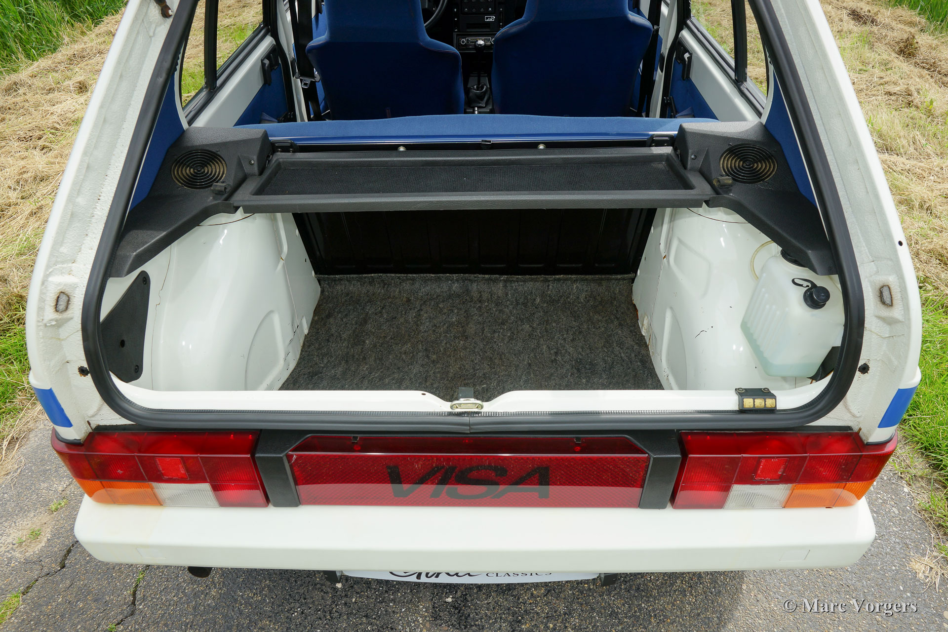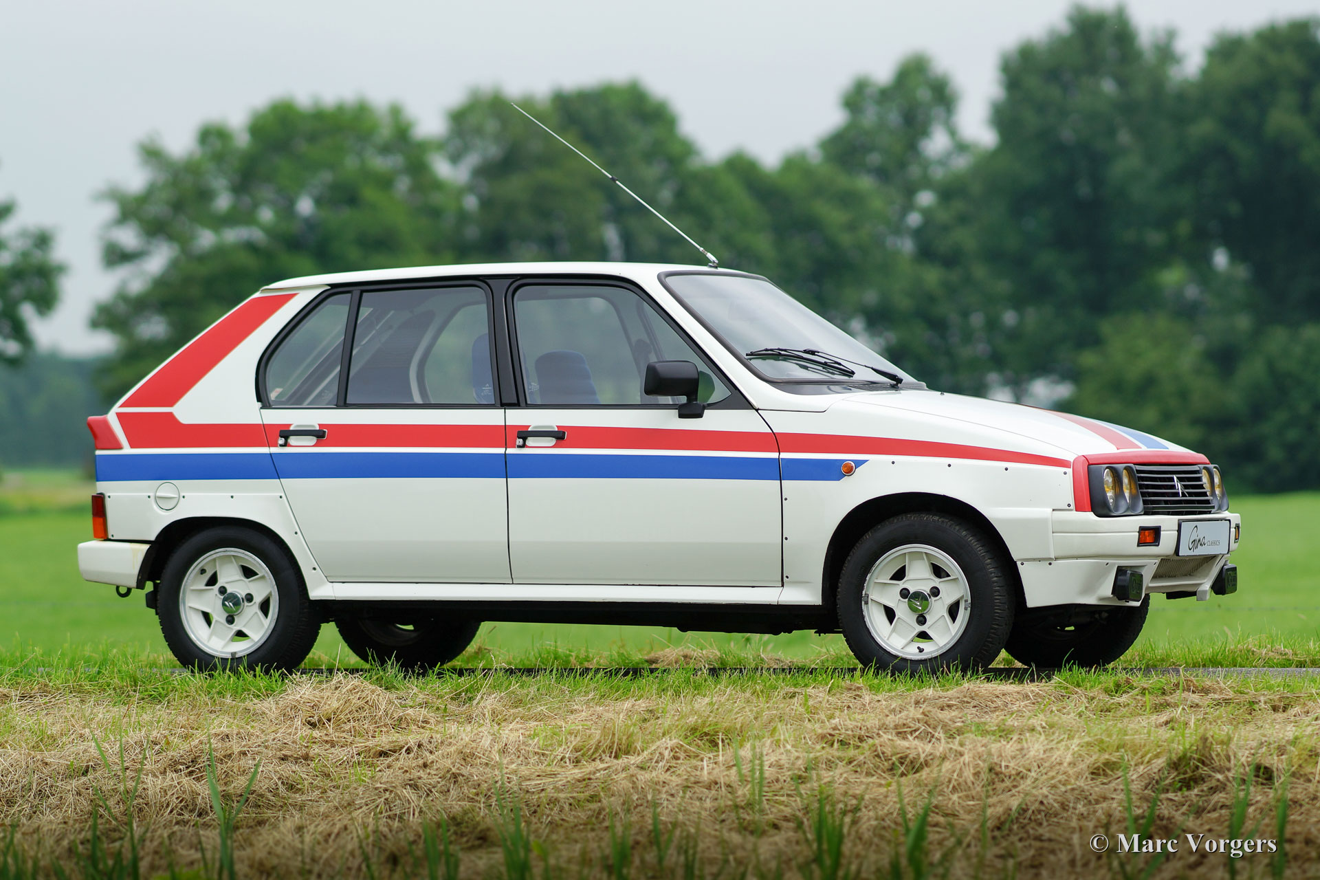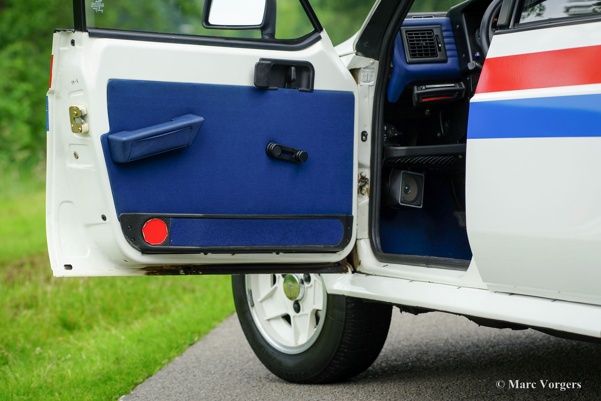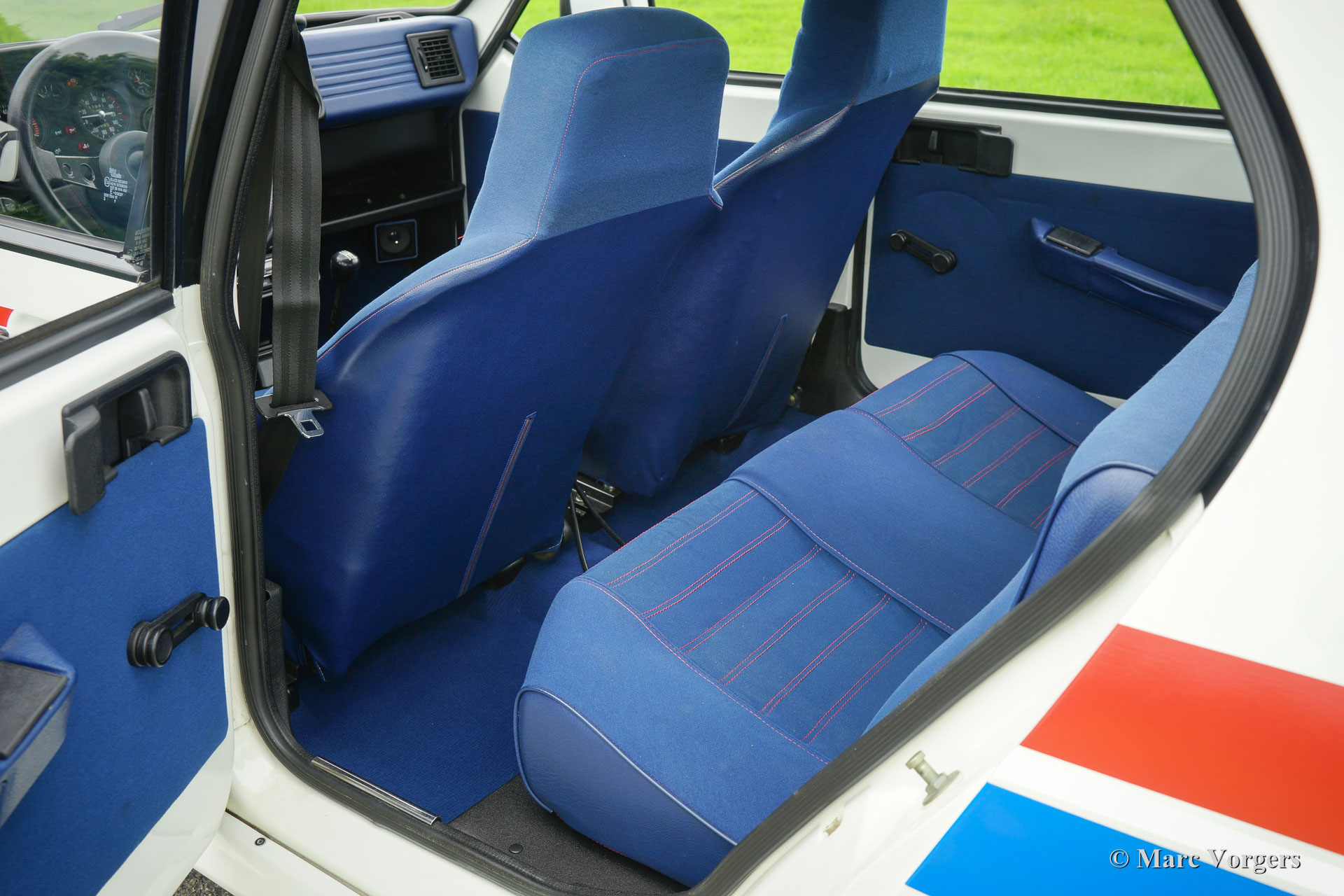 Citroën Visa Chrono, Jahr 1983. Farbe Weiß (Blanc Meije) mit einem schwarz / blauen Stoff Innenraum. Die Chrono wurde in Französische / Niederländische / und deutschen Farben geliefert. Weiß mit rot und blau ‘striping‘ für die niederländischen und Französischen Autos. Die Visa Chrono verfügt über ein einzigartiges Armaturenbrett mit schönen Jaeger Instrumente das nur im Chrono geliefert wurde. In den 1980ern Jahre war die Visa Chrono ein Wettbewerber des Renault R5 GT und den Peugeot 205 GTI. Mit einer Leistung von 80 PS. und einem Gewicht von nur 900 Kilogramm ist das Auto ein richtiger ‘hot hatch'.